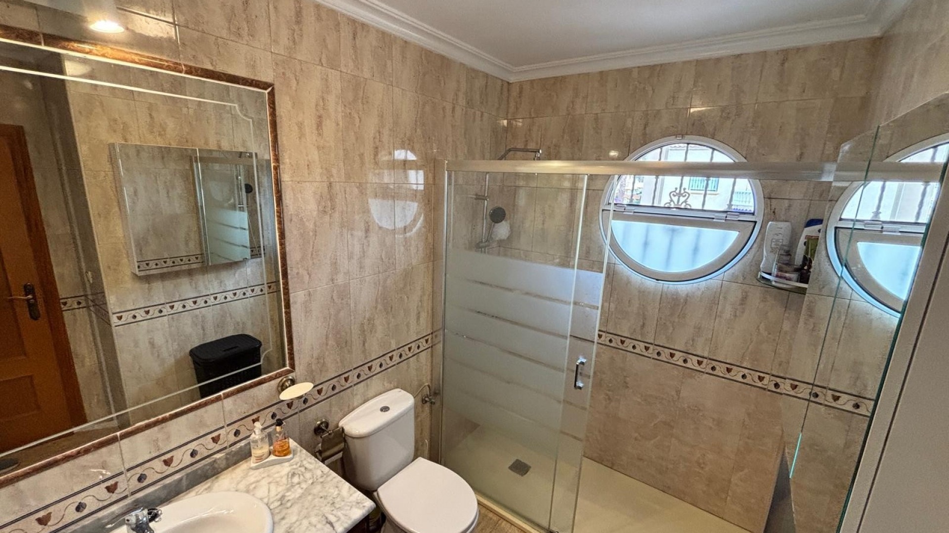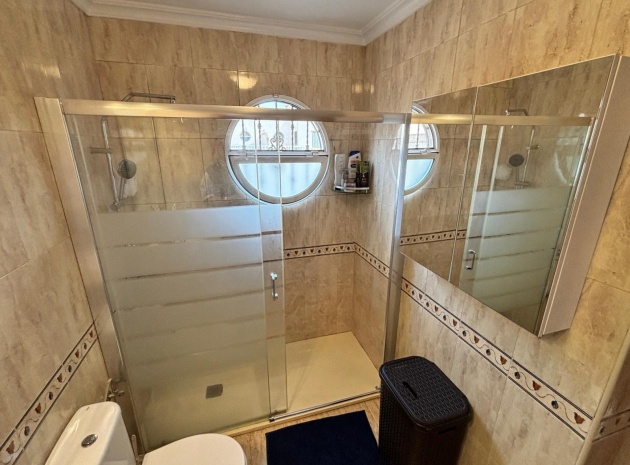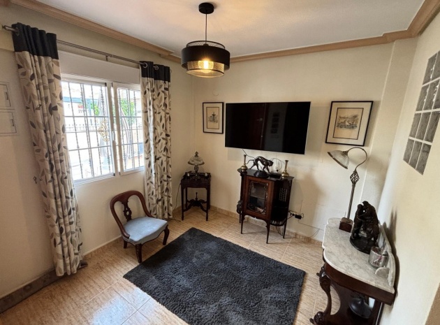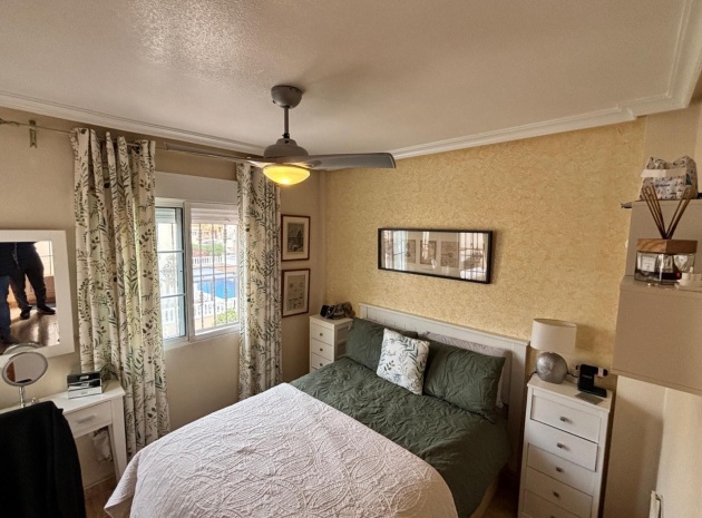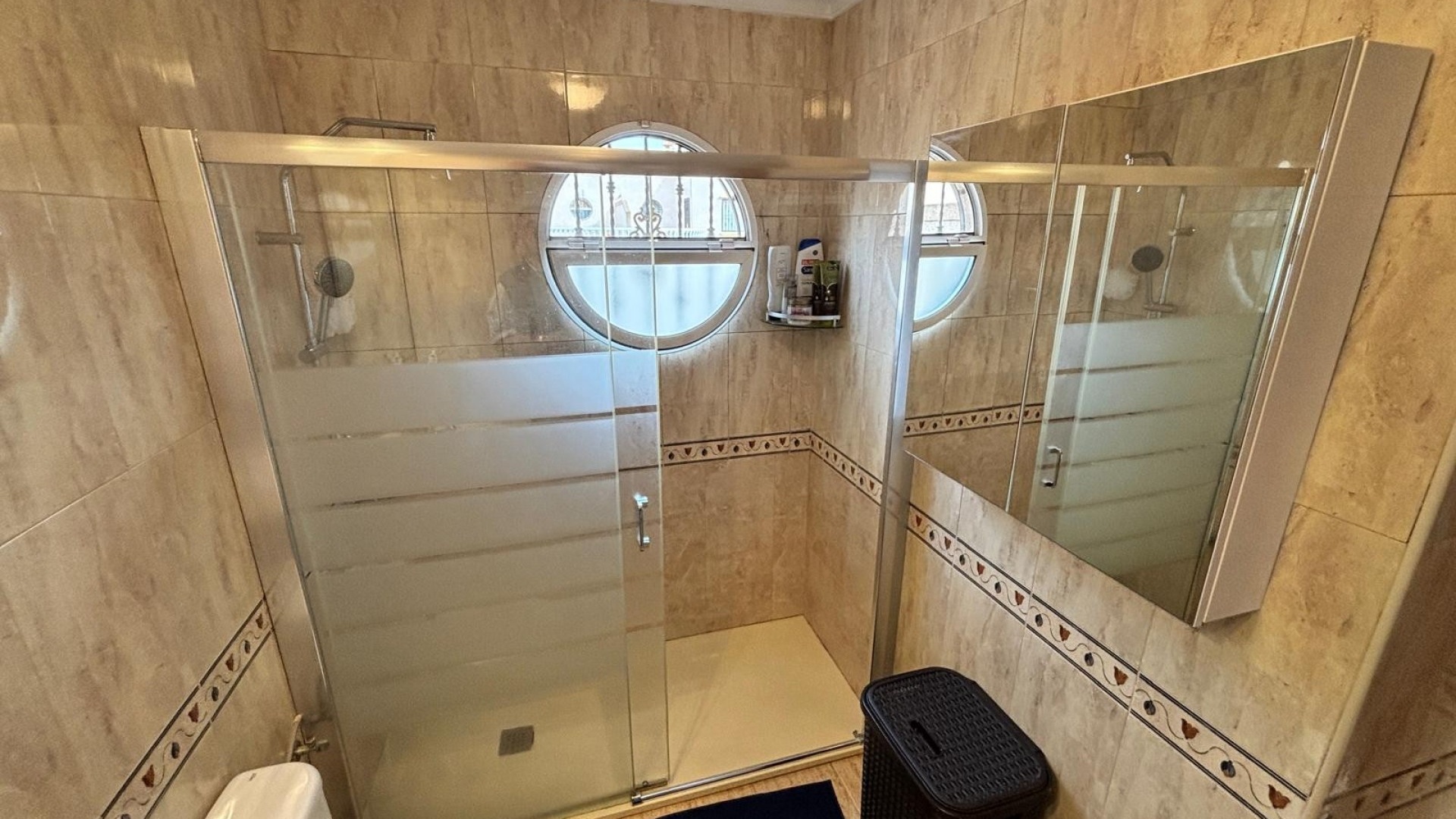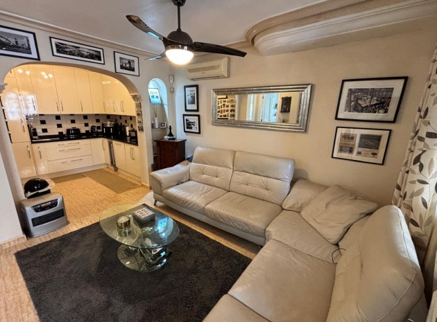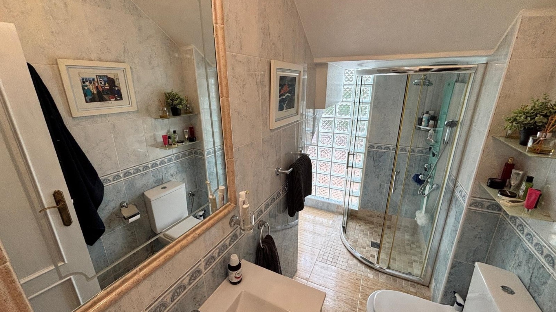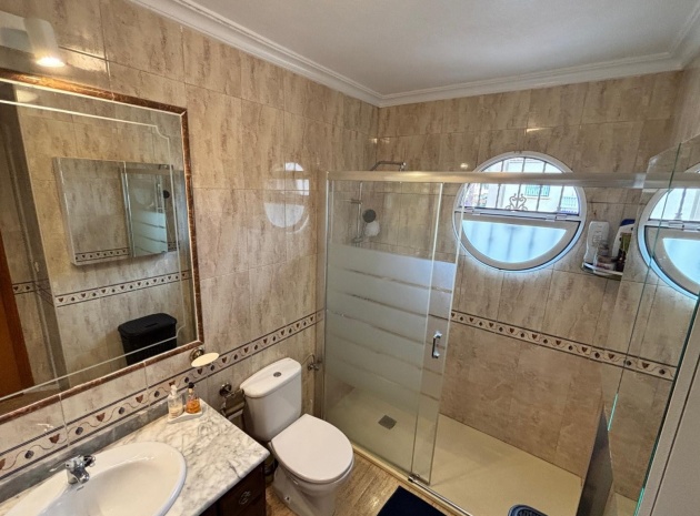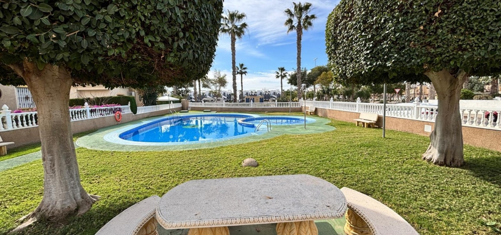 An exceptional quad townhouse. This is a very nicely presented 3 bedroom property set on a large plot of approx. 200m2 with a large tiled terrace for relaxing and sunbathing with various seating areas including a jacuzzi. You enter the house of approx. 100m2, onto a covered terrace leading into the open plan dining and lounge area bathed in natural sunlight with air conditioning and ceiling fans, with a spacious fully fitted modern kitchen. Also on the ground floor is a guest bedroom with fitted wardrobes currently being used as a dining area also with air conditioning and a ceiling fan, plus a large shower room with a utility area. An elegant staircase leads to 2 further double bedrooms each offering air conditioning, ceiling fans and fitted wardrobes, one also boasting a private terrace off, plus there is a large bathroom with walk-in shower. From the landing you will find access to a further staircase with storage facility, leading to the huge solarium, with a purpose built gazebo with sun awnings to three sides allowing for the area to be almost totally enclosed for the cooler evenings. This ´Zodiaco´ style townhouse is to be sold fully furnished to a high standard with many extras including aircon throughout, ceiling fans in all rooms, fitted wardrobes, white goods and storage space, private off road parking and ample street parking, plus access to the large communal pool and sunbathing terrace located just a stroll away.