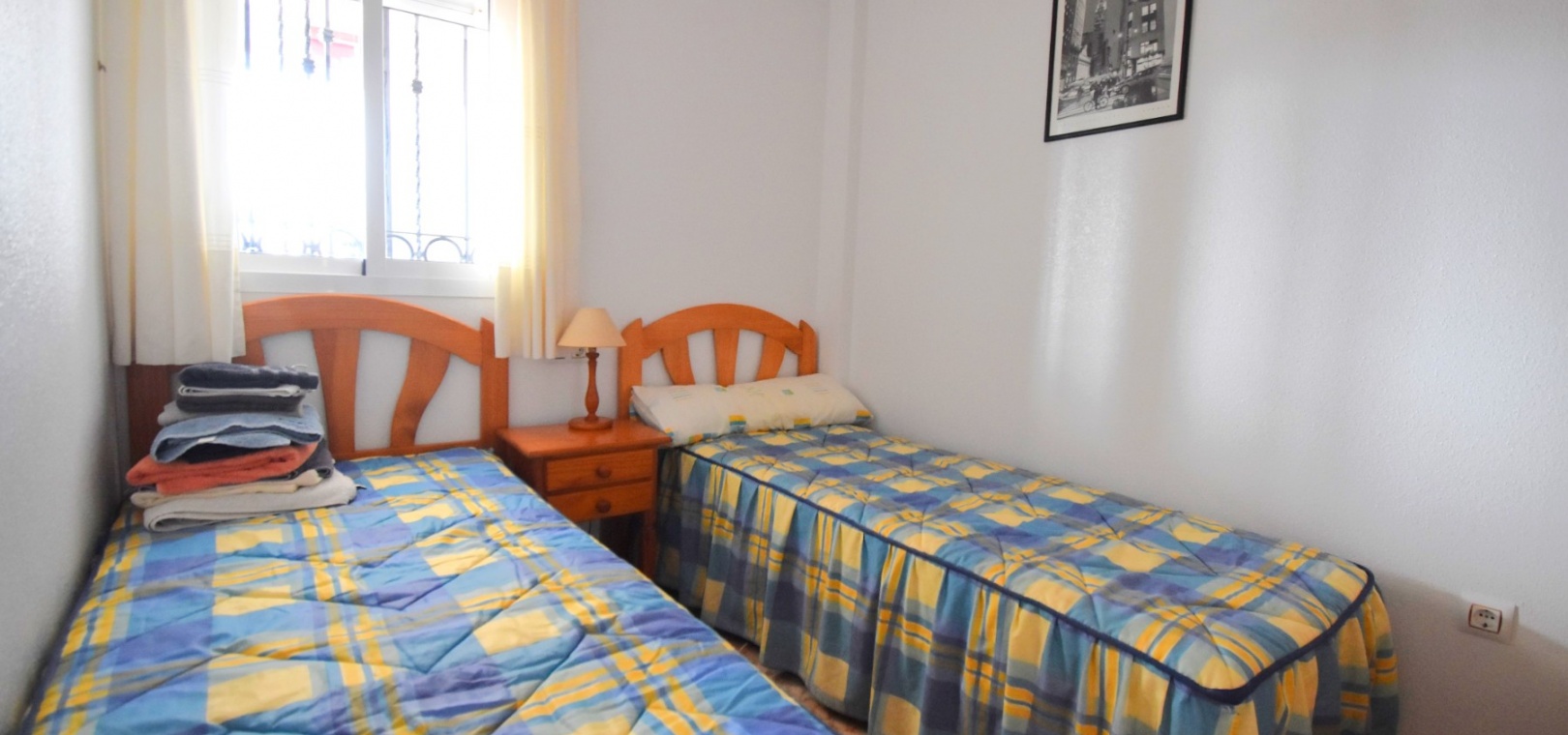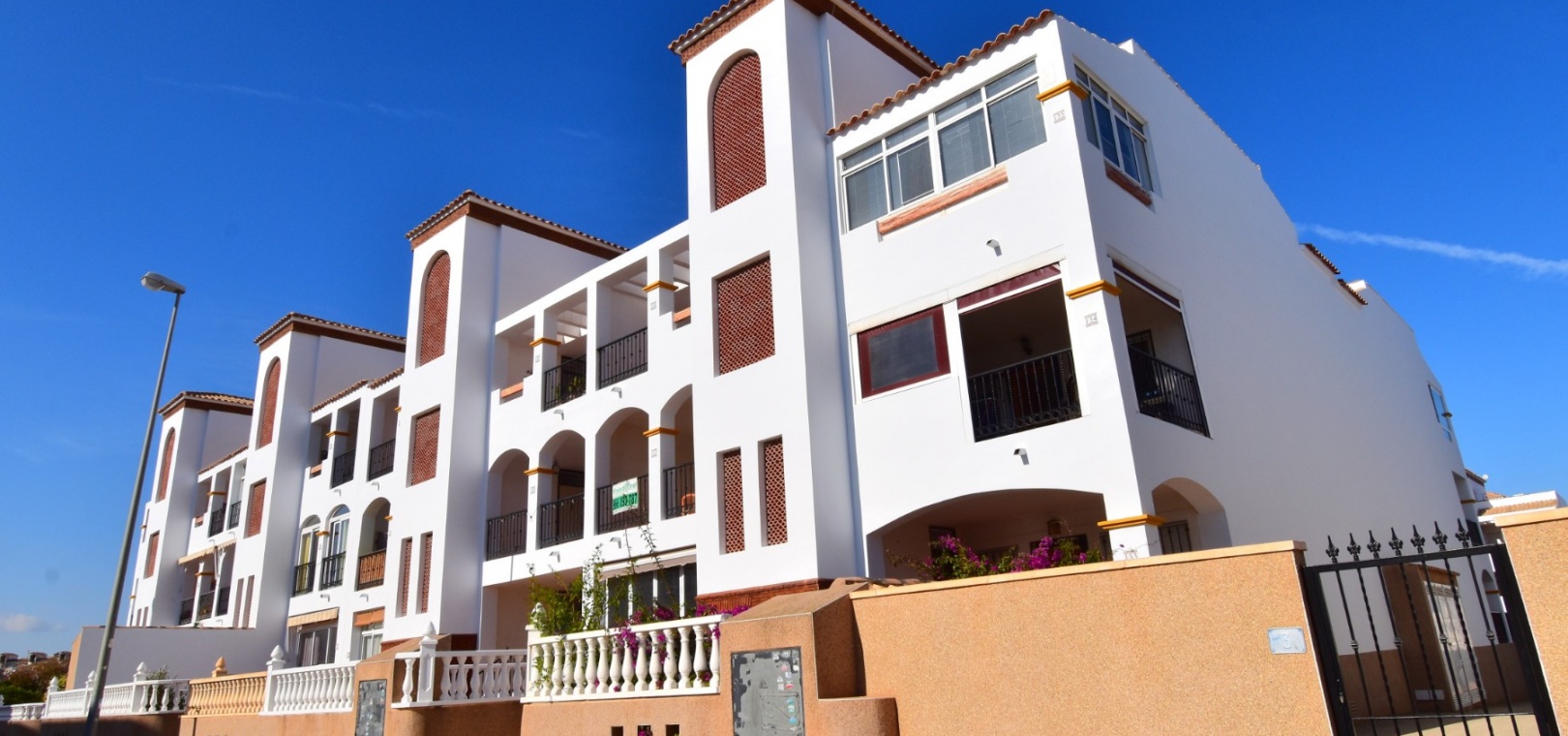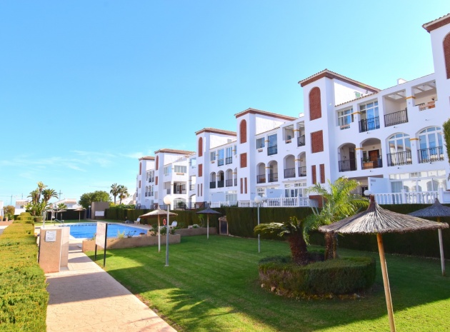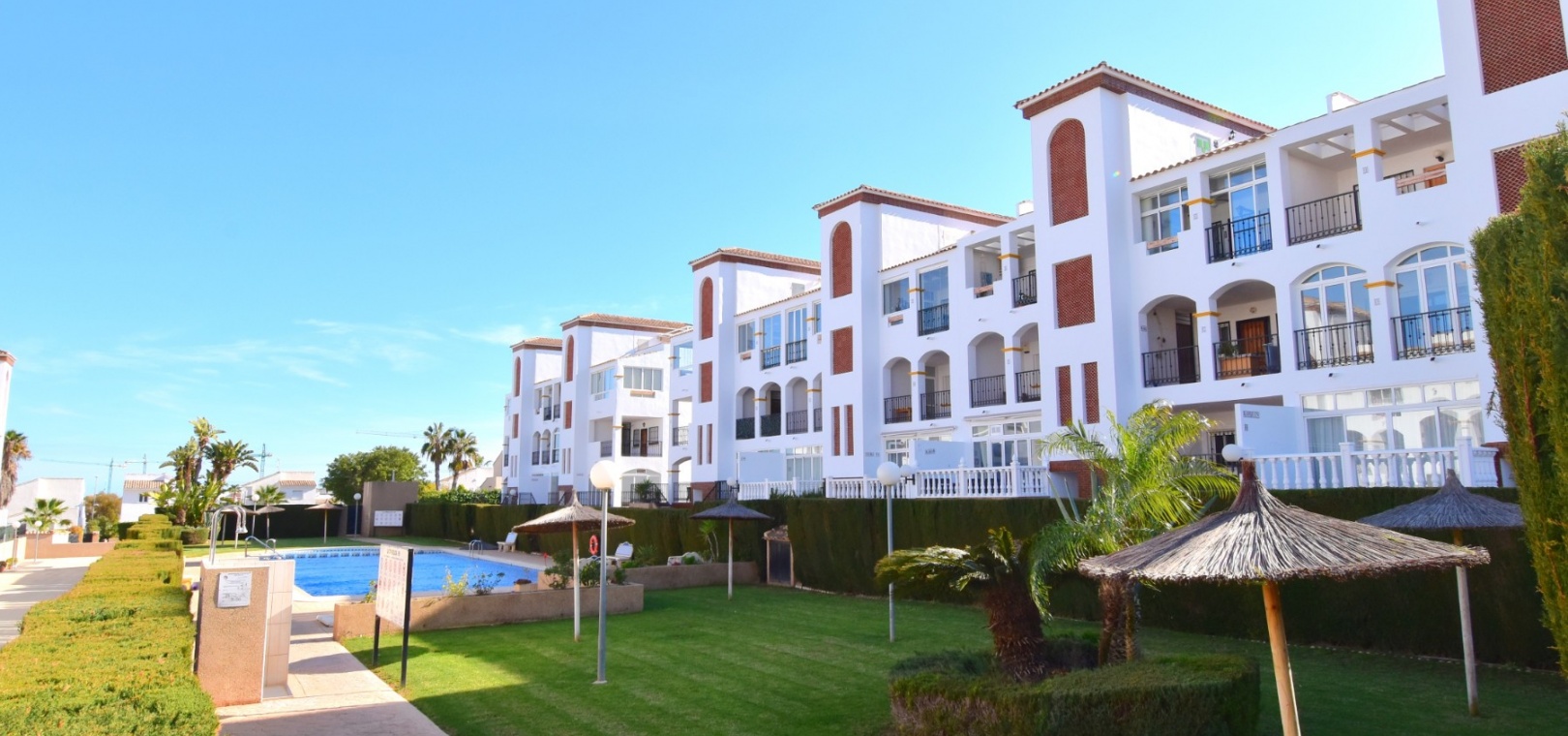 This South Facing, Two Bedroom, First Floor Apartment in Punta Prima, is located within walking distance of a variety of café bars, eating places, and a supermarket, just 10 to 15 minute walk away. The beautiful beach and the renowned La Zenia Boulevard shopping centre are only a short 5 to 7-minute drive, with all other essential amenities close by. The apartment of some 78m2 benefits from a useful covered entrance terrace leading into a bright lounge/dining room. There is a separate fitted kitchen with a door to a utility area, providing extra convenience. Both double bedrooms feature fitted wardrobes and ceiling fans, while the family bathroom is well-appointed. Residents can enjoy a lovely communal pool with a grassed sunbathing area, and the property also includes an underground parking space. Situated in the sought-after area of Costa Blanca South, this ideal lock up and leave apartment offers comfort, convenience, and a fantastic coastal lifestyle.