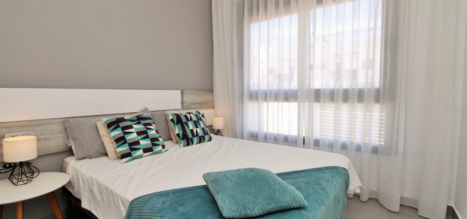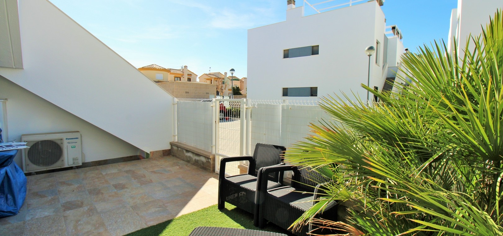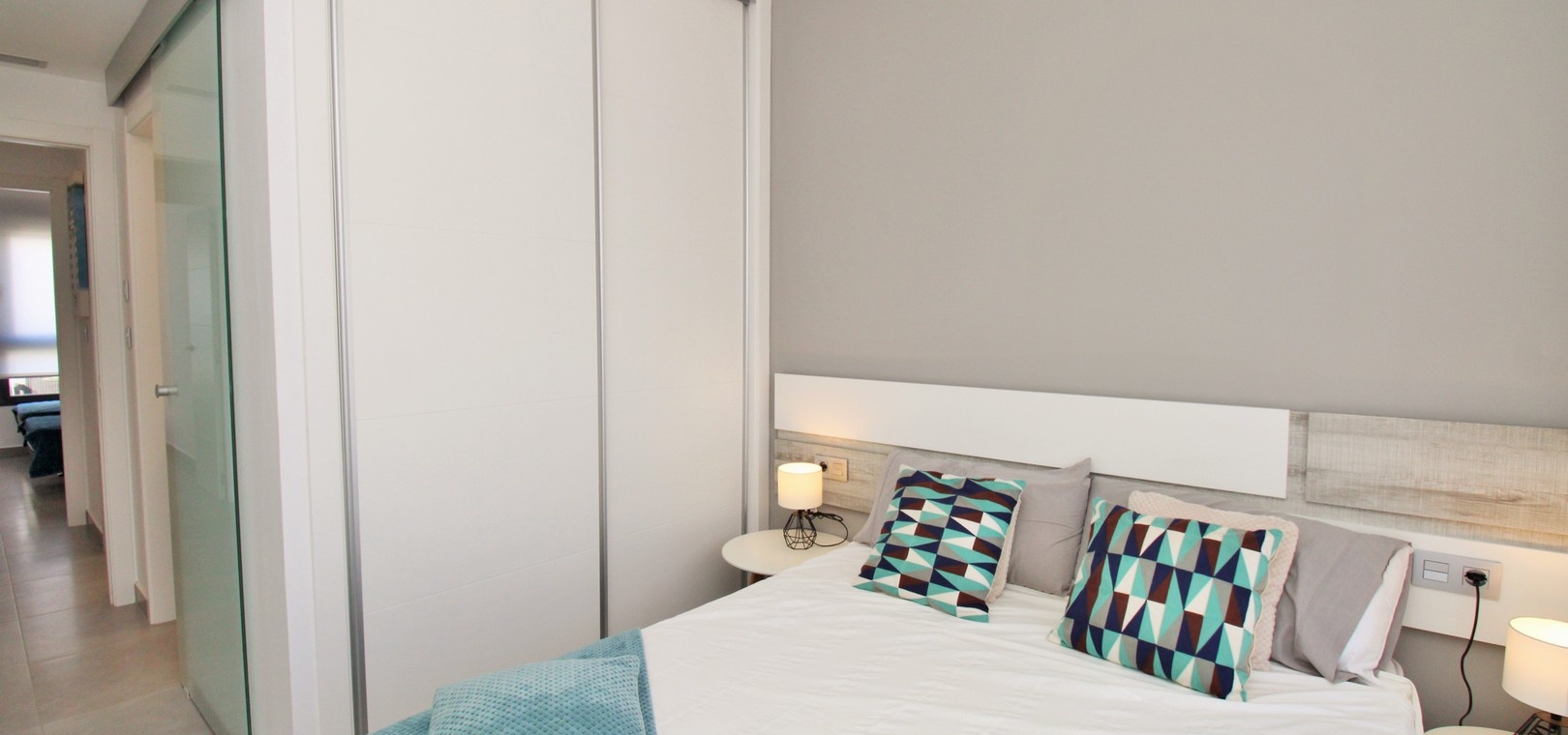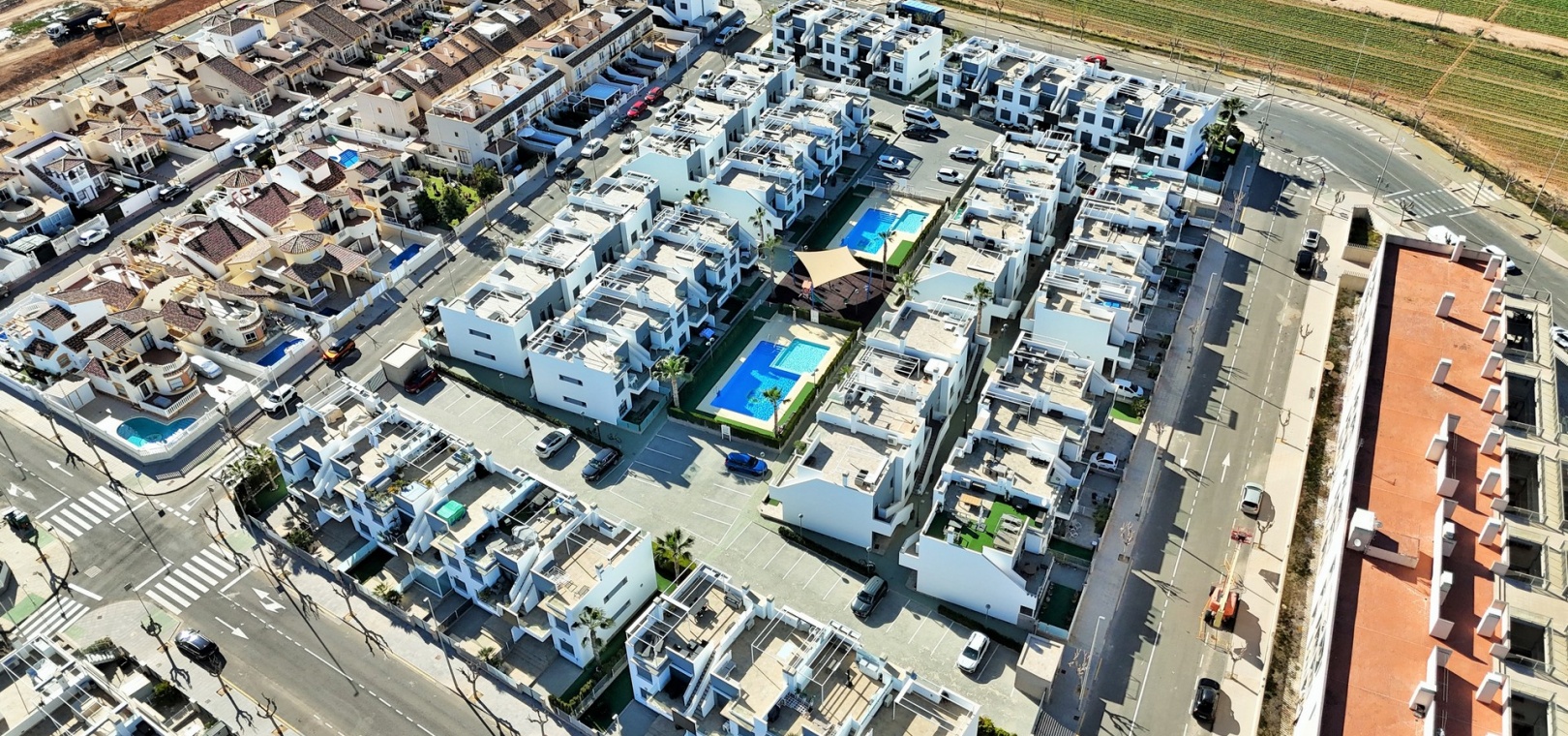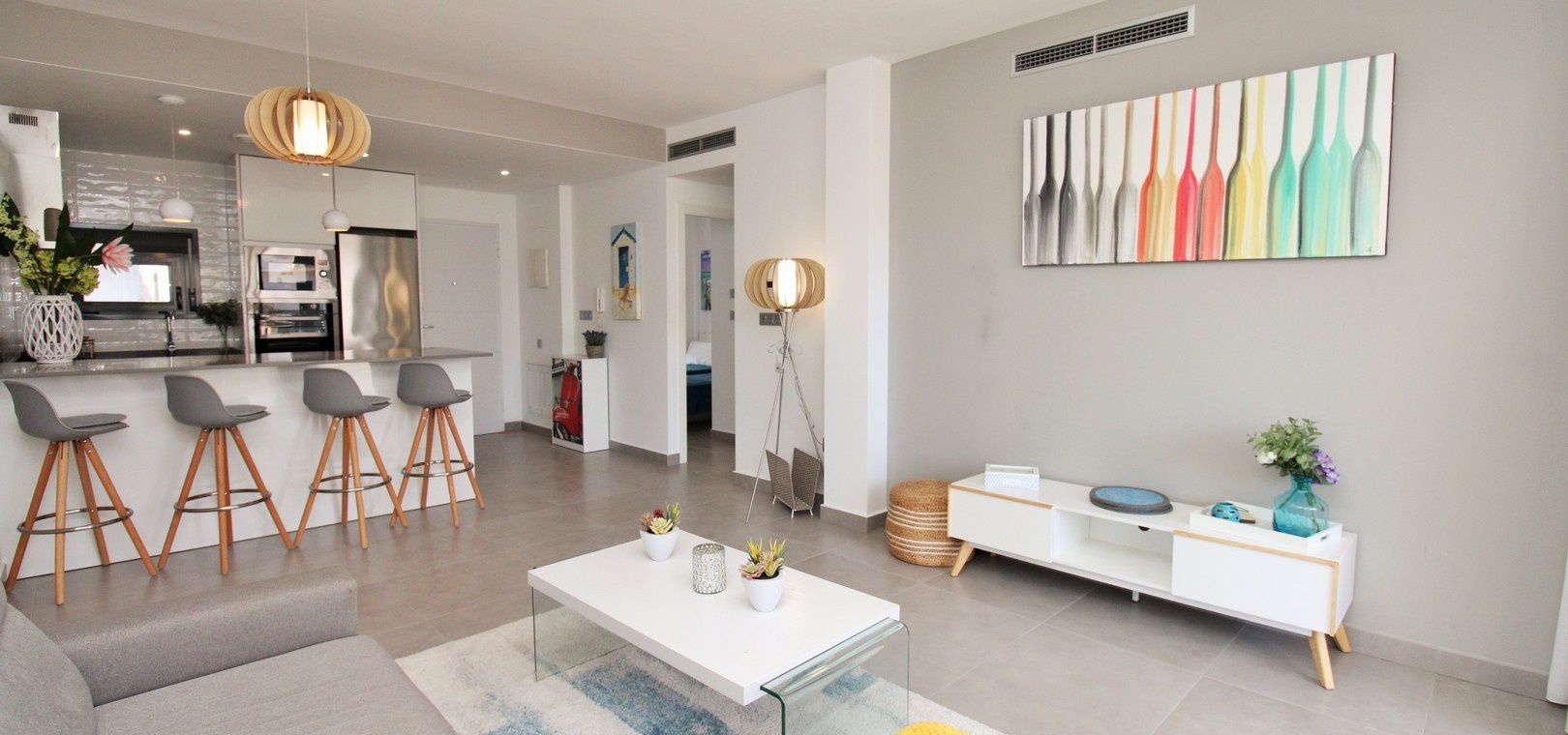 Beautifully presented modern two-bedroom, two-bathroom ground-floor apartment situated in a the highly sought-after gated community of Lamar Resort II in Pilar de la Horadada. Just a few metres from the property, you’ll find two stunning communal pool areas, offering the perfect spot to unwind and soak up the sun. The apartment benefits from two private terraces—one east-facing and one west-facing—so you can enjoy the sunshine throughout the day or find shade when needed. Whether you’re sunbathing, dining al fresco, or simply relaxing with a drink and watching the world go by, these outdoor spaces provide a wonderful extension of your living area.Inside, the spacious and stylish living area is bright and inviting, with large glass doors leading onto the main terrace. The open-plan kitchen is fully fitted with modern appliances, combining practicality with sleek design. Off the living room, you’ll find two well-proportioned bedrooms, both with fitted wardrobes. The master bedroom features an en-suite bathroom with walk-in shower, while a separate bathroom serves the rest of the apartment.Set within a secure, well-maintained complex, the property also includes a large private storage room, perfect for keeping bikes, suitcases, or other belongings. Sold fully furnished with ducted air-conditioning throughout, this is a true turnkey solution—ideal for anyone looking for a stylish, ready-to-move-into modern home.The town centre of Pilar de la Horadada is just a 10-15 minute walk away, offering a fantastic selection of restaurants, bars, shops, and amenities. A large supermarket is also conveniently close by. For beach lovers, the Mediterranean coastline is within easy reach—just a short drive or a 20-30 minute walk. Both Murcia and Alicante airports are easily accessible, with Murcia around 30 minutes away and Alicante approximately an hour’s drive.