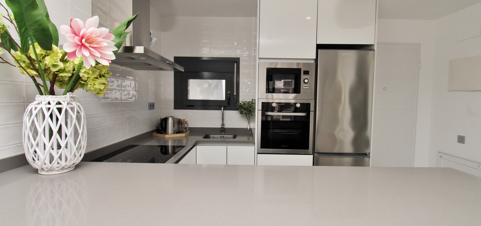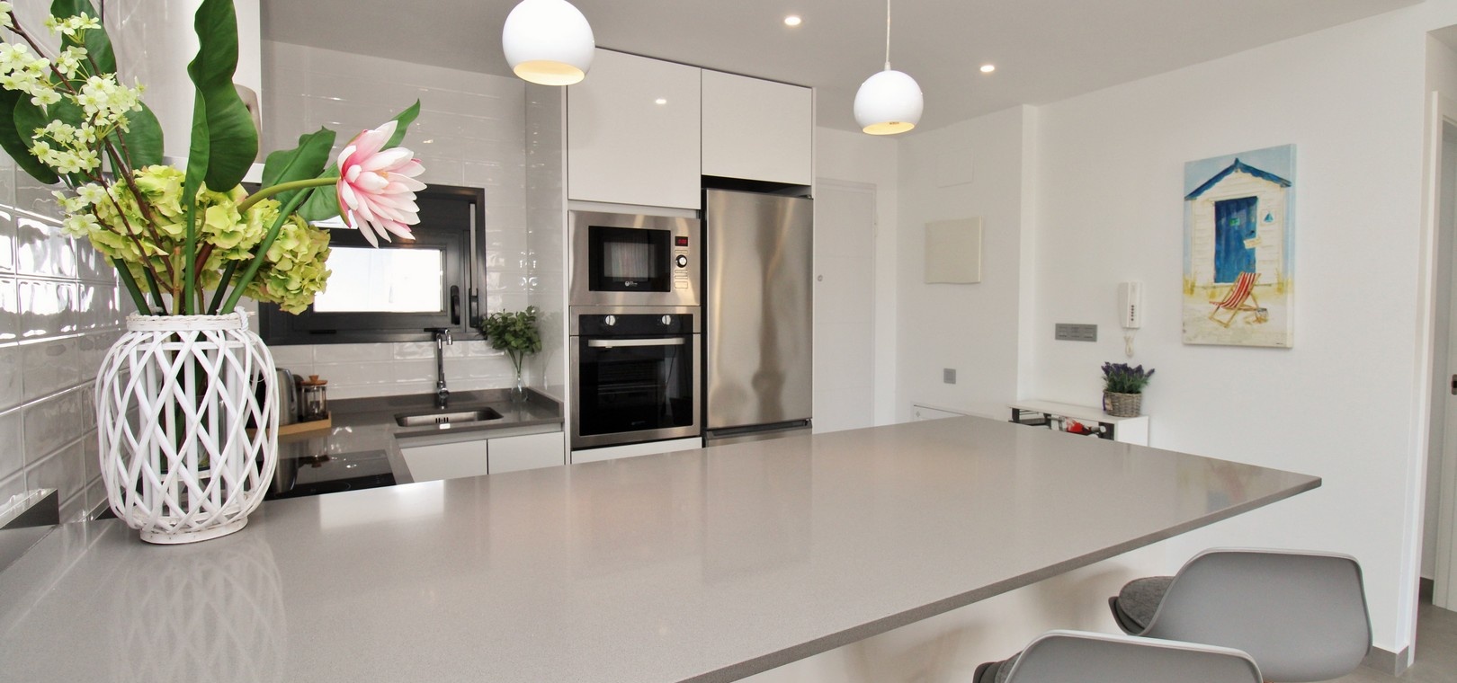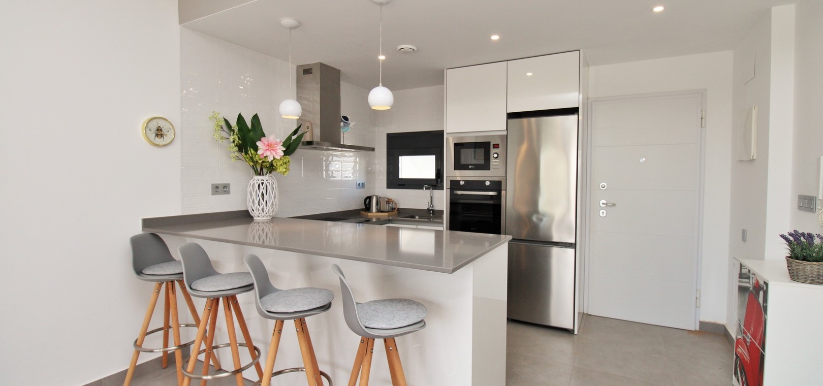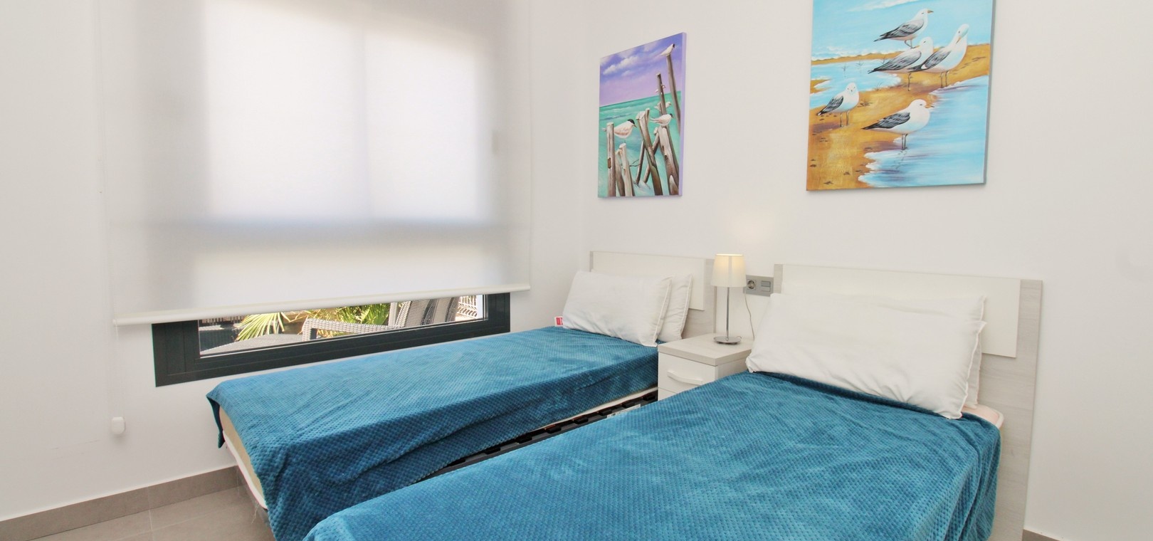 Beautifully presented modern two-bedroom, two-bathroom ground-floor apartment situated in a the highly sought-after gated community of Lamar Resort II in Pilar de la Horadada. Just a few metres from the property, you’ll find two stunning communal pool areas, offering the perfect spot to unwind and soak up the sun. The apartment benefits from two private terraces—one east-facing and one west-facing—so you can enjoy the sunshine throughout the day or find shade when needed. Whether you’re sunbathing, dining al fresco, or simply relaxing with a drink and watching the world go by, these outdoor spaces provide a wonderful extension of your living area.Inside, the spacious and stylish living area is bright and inviting, with large glass doors leading onto the main terrace. The open-plan kitchen is fully fitted with modern appliances, combining practicality with sleek design. Off the living room, you’ll find two well-proportioned bedrooms, both with fitted wardrobes. The master bedroom features an en-suite bathroom with walk-in shower, while a separate bathroom serves the rest of the apartment.Set within a secure, well-maintained complex, the property also includes a large private storage room, perfect for keeping bikes, suitcases, or other belongings. Sold fully furnished with ducted air-conditioning throughout, this is a true turnkey solution—ideal for anyone looking for a stylish, ready-to-move-into modern home.The town centre of Pilar de la Horadada is just a 10-15 minute walk away, offering a fantastic selection of restaurants, bars, shops, and amenities. A large supermarket is also conveniently close by. For beach lovers, the Mediterranean coastline is within easy reach—just a short drive or a 20-30 minute walk. Both Murcia and Alicante airports are easily accessible, with Murcia around 30 minutes away and Alicante approximately an hour’s drive.