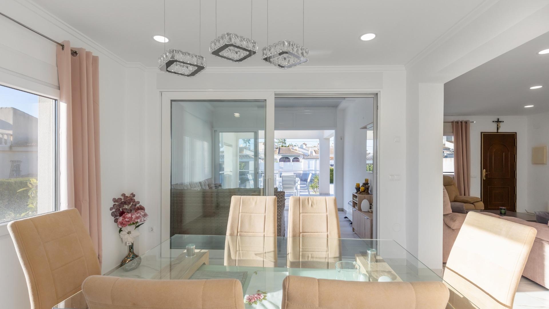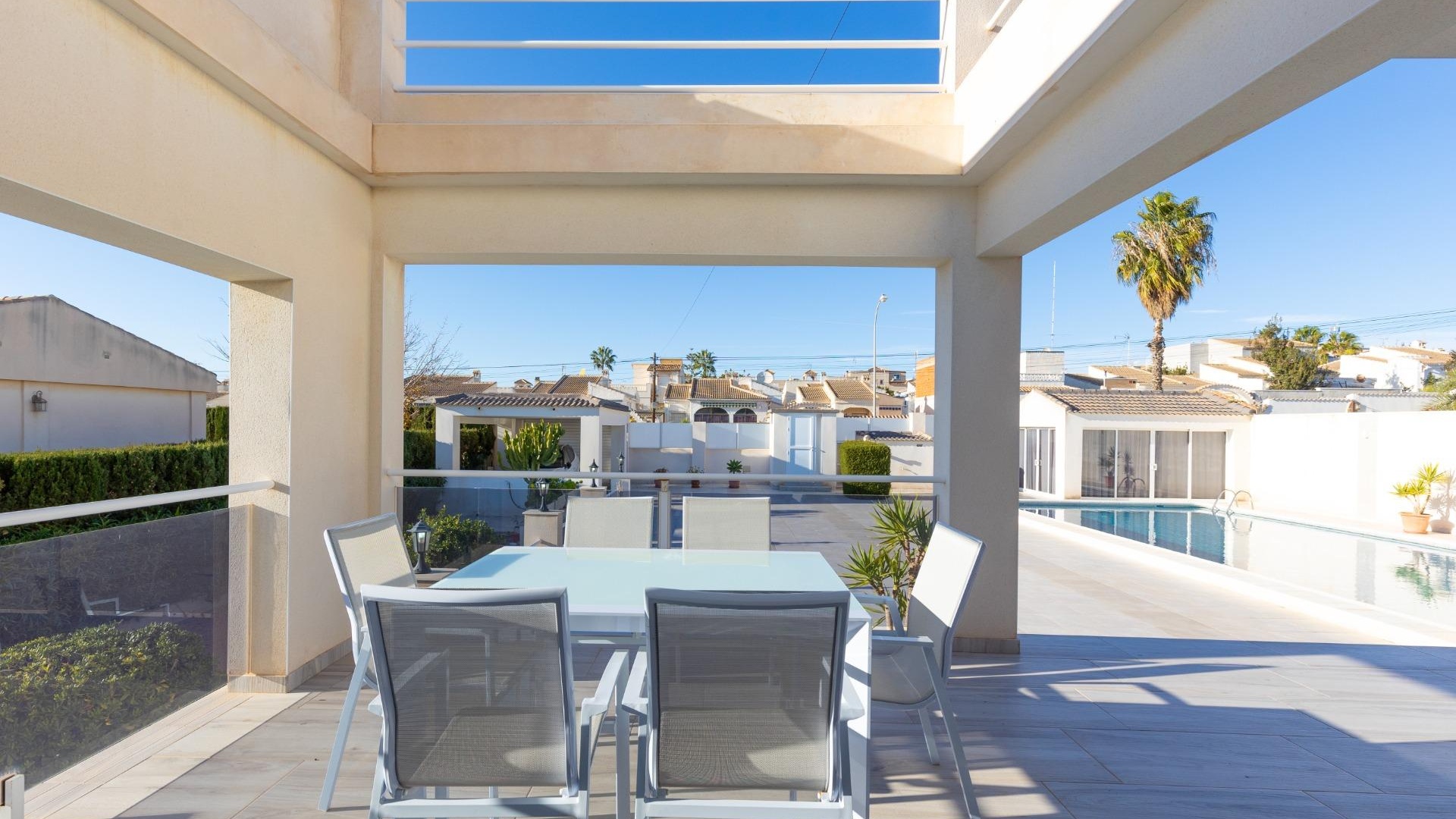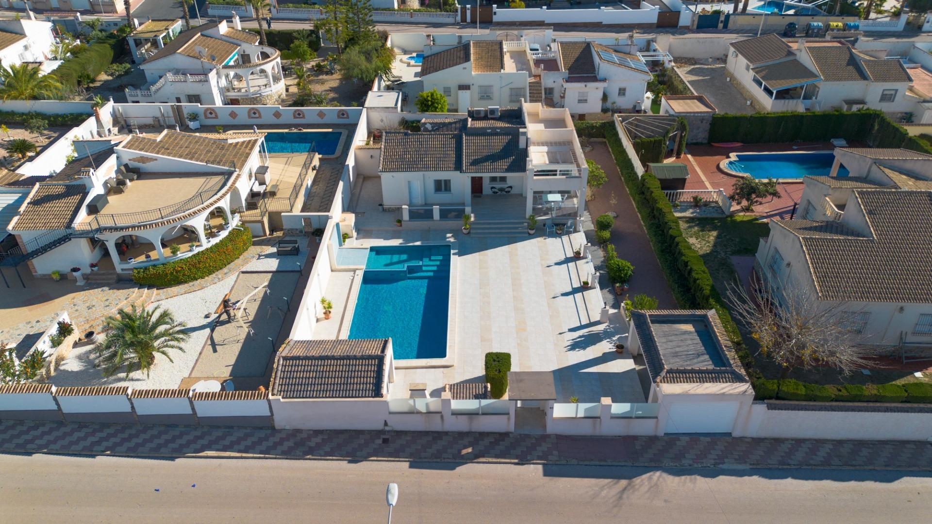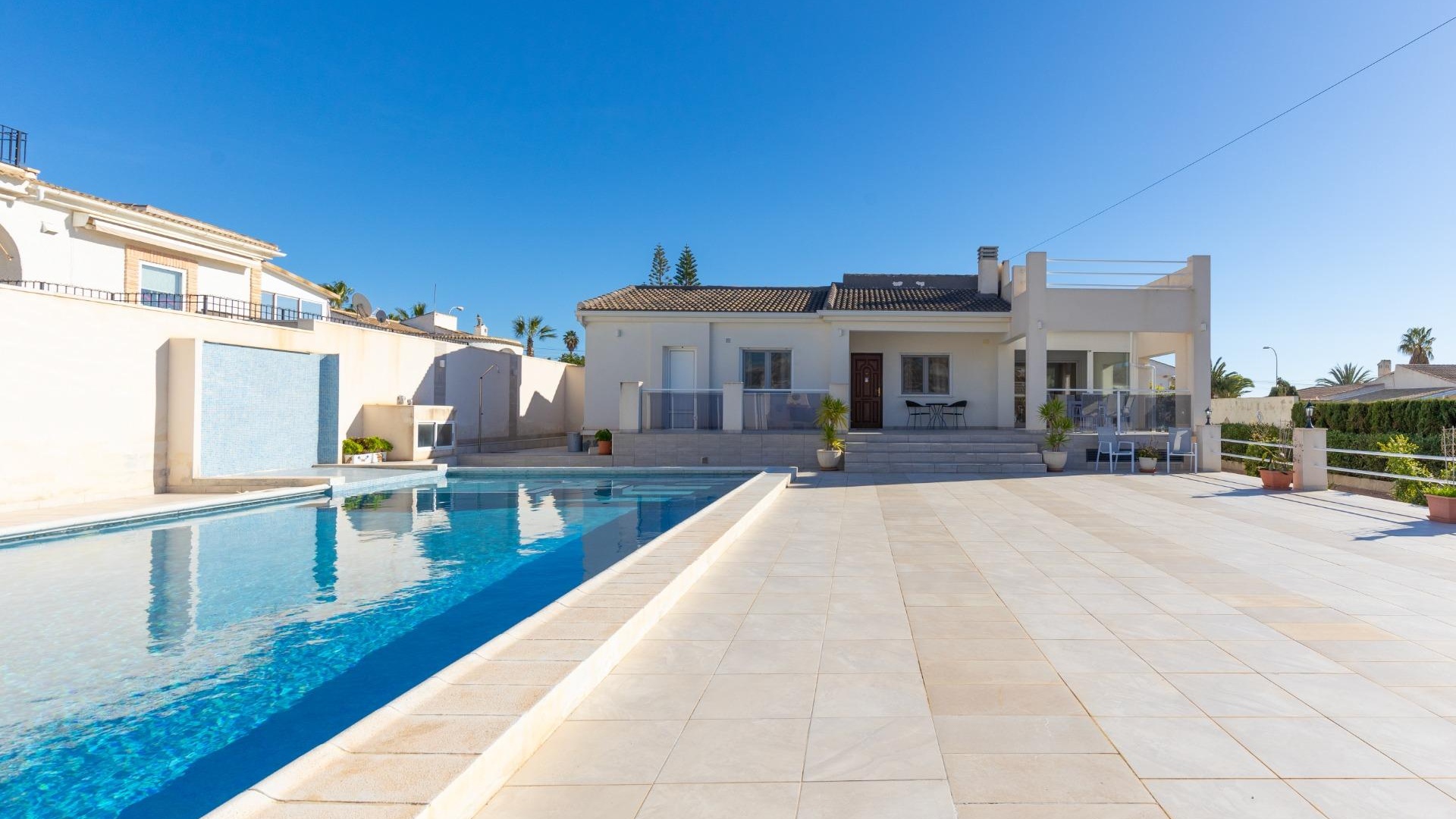 We present this dream villa that has everything you have always dreamed of for your home on the Costa Blanca.~~This fantastic property consists of a plot of a total of 825 m2 that are distributed in several areas and rooms to enjoy the privileged climate of Torrevieja and the luxury and exquisiteness that this house offers.~~With a constructed area of 252 m2 with 3 bedrooms and 2 bathrooms, a living room and a dining room furnished with an integrated kitchen, fully equipped and with the best qualities and finishes.~All rooms are exterior, very bright and spacious.~In addition to the garage at the entrance to park your vehicle inside the plot, it has a basement that can be used as a private gym, garage or games room.~~Apart from the two interior rooms of the house, the property offers an outdoor terrace to take advantage of the sunny days of Torrevieja.~And without a doubt the jewel in the crown is the large plot where you can sunbathe, enjoy a good barbecue with friends and family, be amazed by the magical sunsets of the Costa Blanca and cool off in its large private pool at any time of day.~~Throughout the plot you will find many places to do any activity and we could continue describing and imagining the house of your dreams... but this time it is real. Why don't you stop reading these lines and visit the house now?~~Congratulations! You have found your home, contact us right now!