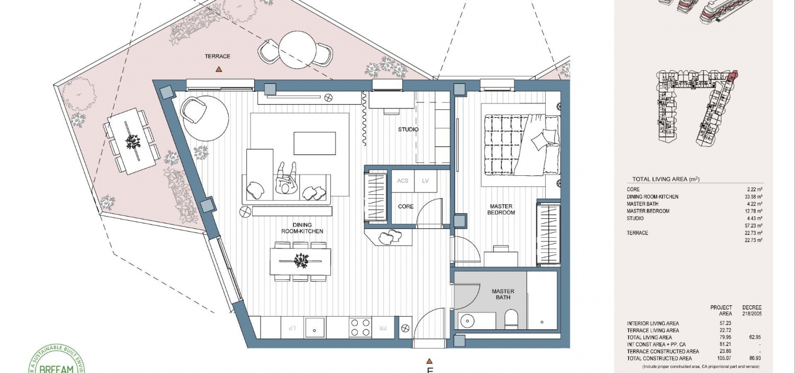 The development stands out for its sophisticated and modern architecture, with spacious terraces that maximise natural light and skyline views. Every detail has been designed to provide an environment of wellbeing, relaxation and socialising.