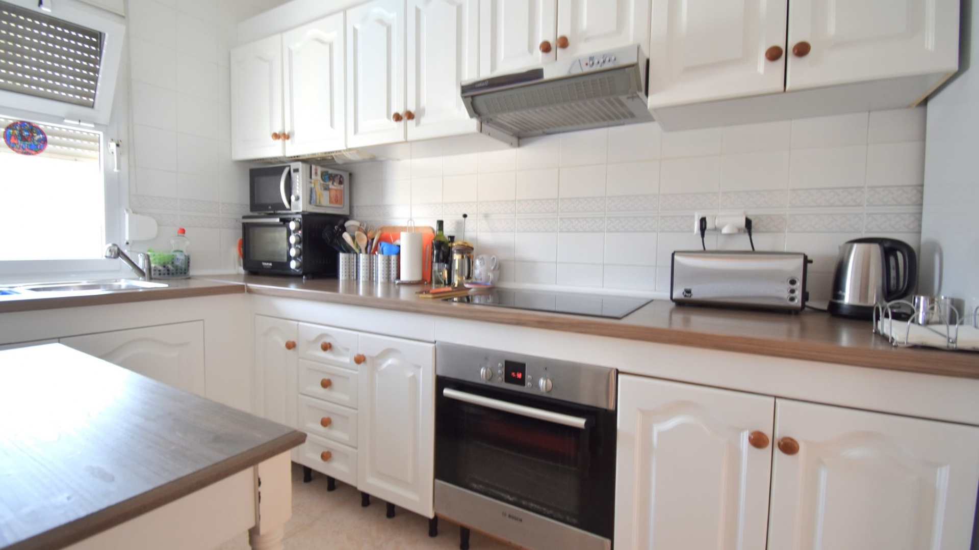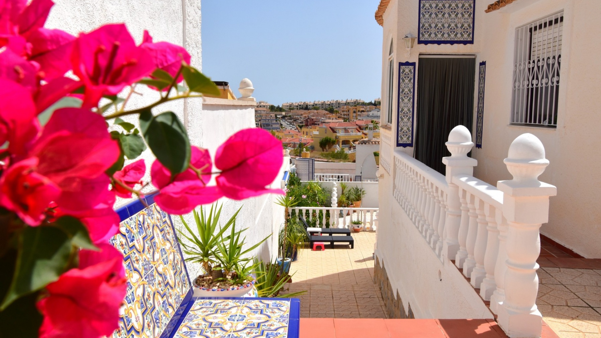 This South Facing Two Bedroom Detached Villa in Urb El Presidente is located in the heart of Villamartin, close to La Fuente Commercial Centre, on the ever so popular Orihuela Costa, situated in the picturesque Costa Blanca South. This charming property boasts two spacious bedrooms and one bathroom on the main floor, complemented by a separate kitchen, a cozy living room, and a utility room. Enjoy the serene views of the pool from both the enclosed and open terraces. The lower level under build of roughly an extra 80m2, features an additional two bedrooms, one bathroom, another fully equipped kitchen, and a comfortable living room, making it perfect for guests or extended family stays (Disclaimer: The lower level is not classed as habitable space, only storage). The villa includes a private pool, off-road parking, and a beautifully landscaped two-tier garden, complete with a BBQ area and an external bar for entertaining. Air conditioning in the main living area and ceiling fans throughout ensure comfort year-round. With ample outside dining and entertaining space, this villa is ideal for enjoying the sunny Spanish climate. Conveniently located, it’s just a 10-minute walk to the nearest amenities and facilities, a short drive to several renowned golf courses, and less than 10 minutes to the stunning beaches of Orihuela Costa!
