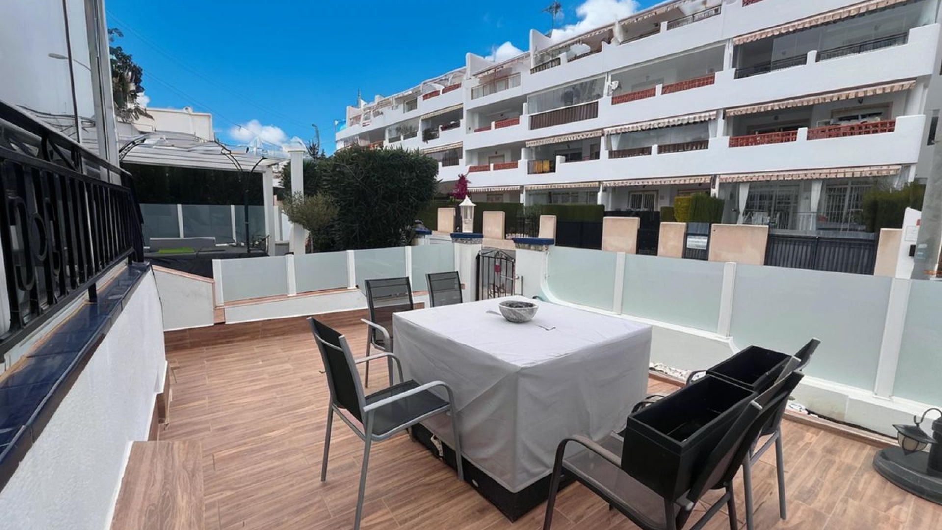 This stunning 3-bedroom, 2-bathroom townhouse in Rioja IV, Villamartin, ideally located just a short stroll from the vibrant La Fuente commercial centre, where you’ll find a fantastic selection of restaurants, bars, shops, and a supermarket, this home offers both convenience and charm.Lovingly maintained by its current owners, this sought-after property has been tastefully updated, featuring a modernized kitchen and a beautifully renovated bathroom.Stepping inside, the ground floor welcomes you with a bright and spacious lounge-dining area, seamlessly connected to an open-plan kitchen with a handy utility space. Two well-sized bedrooms with fitted wardrobes provide comfort and practicality, while the renovated family bathroom adds a touch of contemporary elegance.