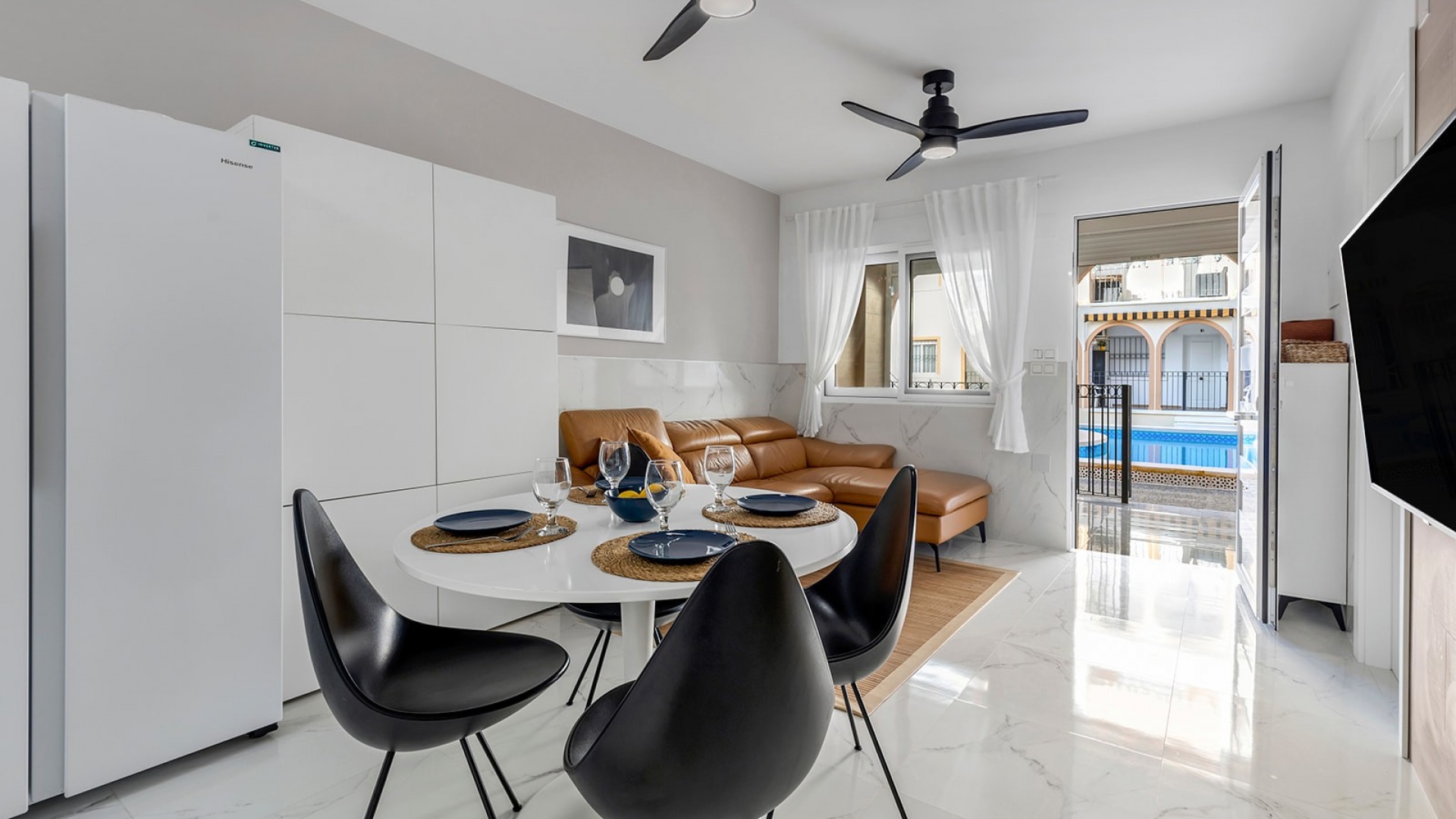 This charming 2-bedroom, 1-bathroom apartment has been fully renovated and offers 56 m² of comfort in an ideal location. Just minutes from Torrevieja’s beaches, supermarkets, public transport, leisure centers, medical facilities, and golf courses. Additionally, it is less than an hour away from major airports, making it the perfect choice to enjoy the Mediterranean lifestyle. With a community pool, it’s ideal for both living and investment. Don’t miss out!