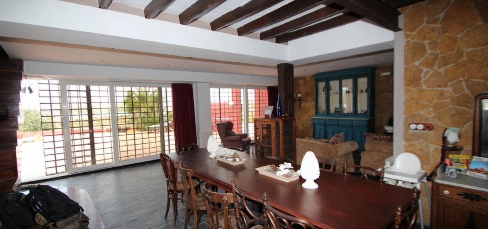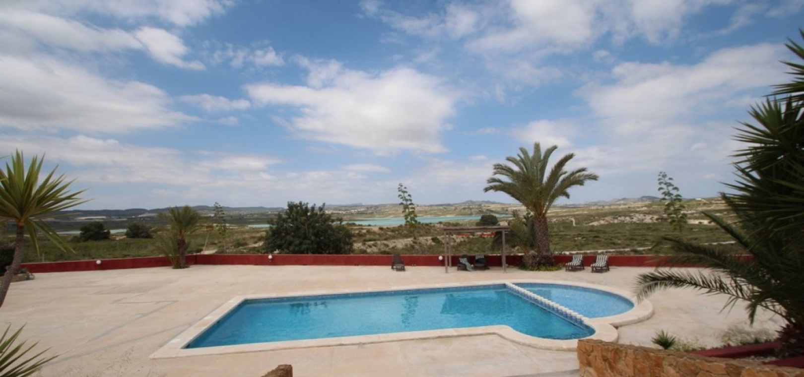Opportunity to live in a unique place and with the possibility of having your own business.~ In front of the La Pedrera reservoir, we offer you an impressive independent Chalet on a plot of 13,700 meters and with a house of 320 meters with stunning views of the reservoir.~ This impressive house is distributed on two floors with two living rooms with fireplace, one of them very large of 85 m2, kitchen with its island, 4 bedrooms, 3 bathrooms, 1 toilet, solarium and a large porch overlooking the orange trees, large terrace with barbecue and pool of 15 x 7 m, facing the lake.~ There is possibility to expand the house on the top floor.~ The interior design has been made by Philip Pelleter, internationally recognized that appears in the book Interior Design Review.~ The house is sold fully furnished with antique furniture doors of India ....~