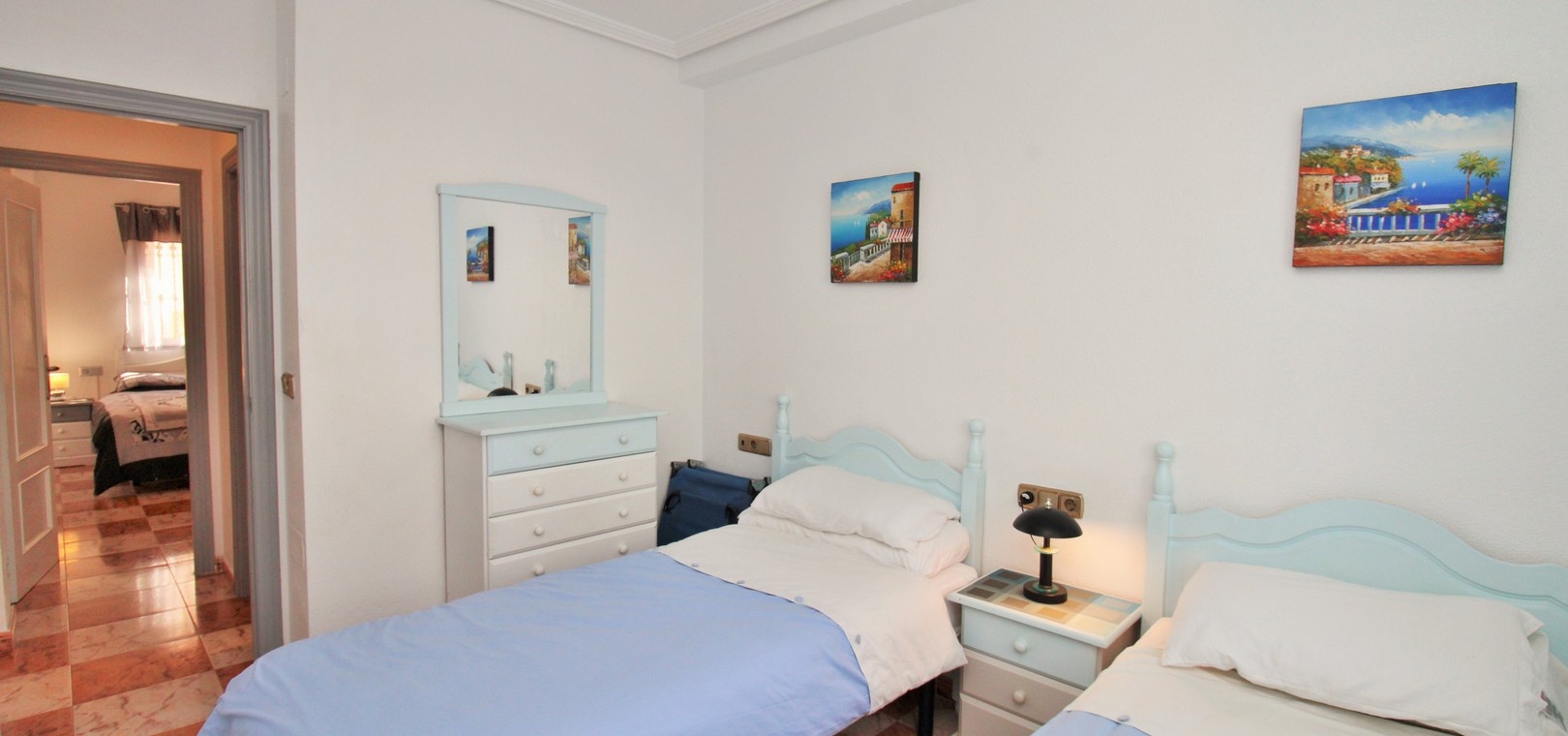 This well presented two-bedroom ground-floor apartment is situated in the San Jose IV community in La Zenia. Ideally positioned within walking distance of La Zenia’s popular Zenia Boulevard, a variety of restaurants, shops, and amenities, as well as the bustling Cabo Roig strip renowned for its vibrant nightlife. Residents also enjoy access to a beautifully maintained communal pool.The apartment features a front and rear garden area with gated driveway, plus a raised terrace area, perfect for al-fresco dining. Inside you will find a bright and airy lounge-dining area with open kitchen to the rear, which offers access to the rear garden with gated driveway. To the side of the lounge is a small hallway, from which you can access the 2 bedrooms, and a renovated bathroom with walk-in shower. The property is sold furnished with white goods.Perfectly situated between La Zenia and Cabo Roig. Viewings are highly recommended to fully appreciate this fantastic home.