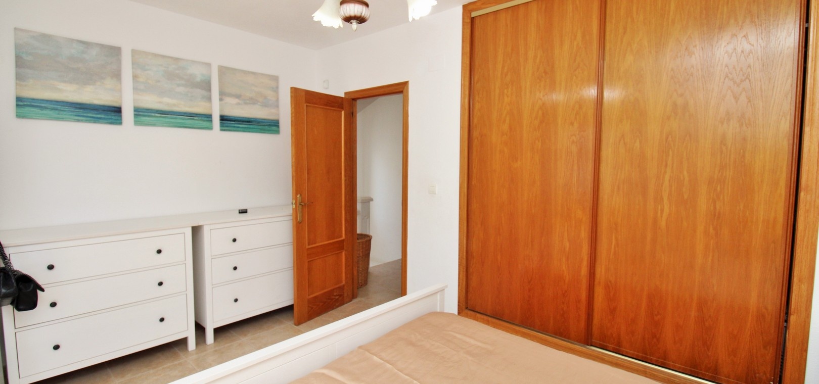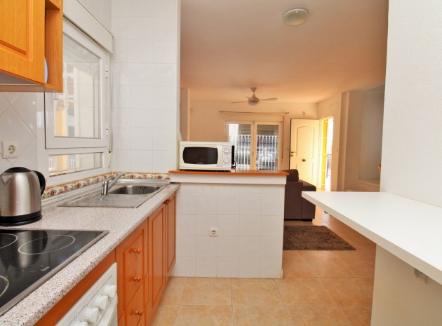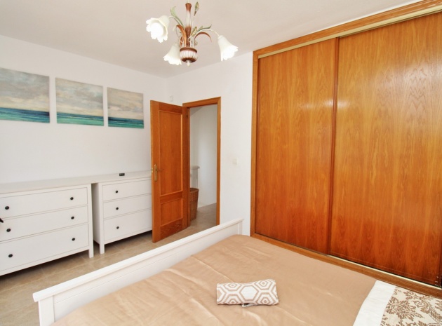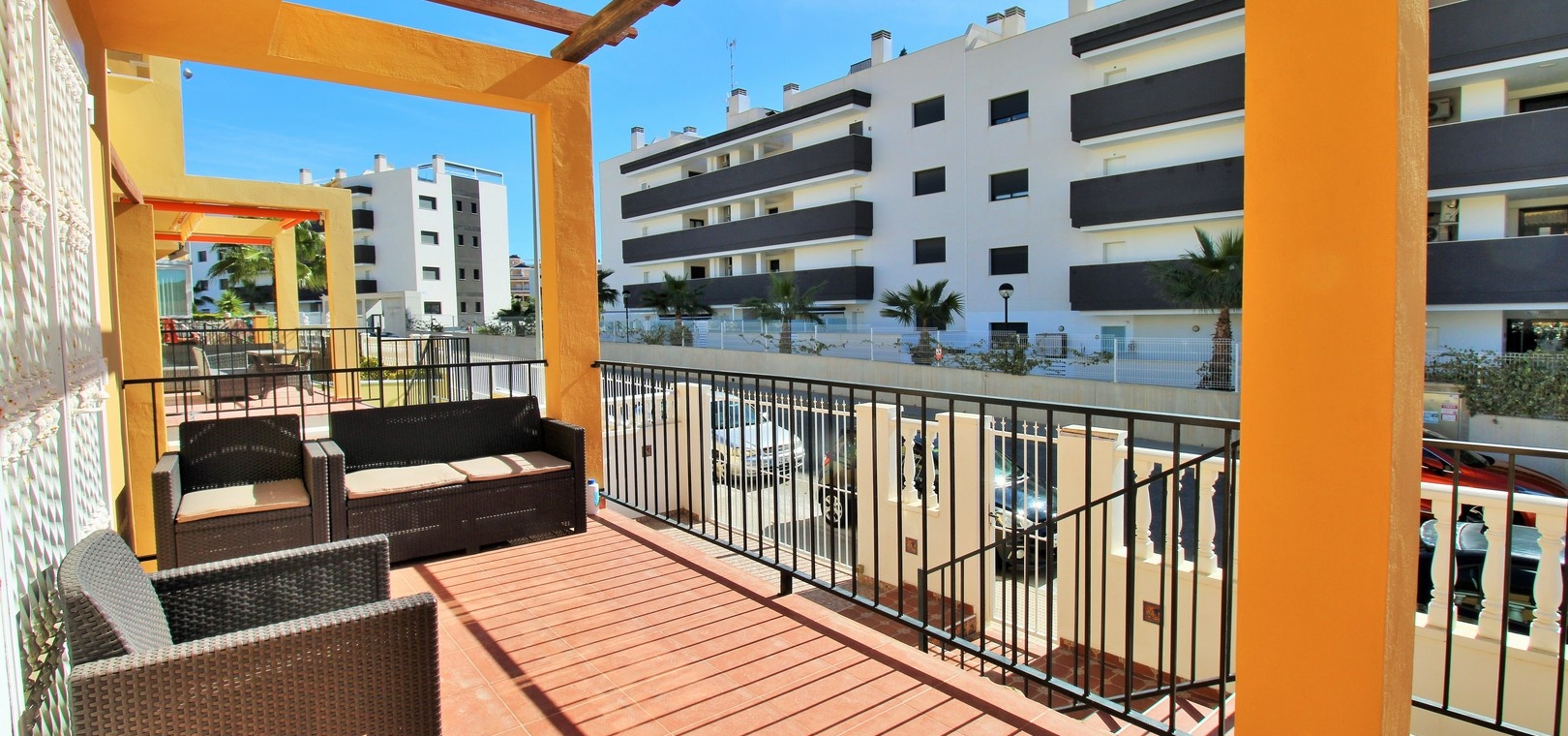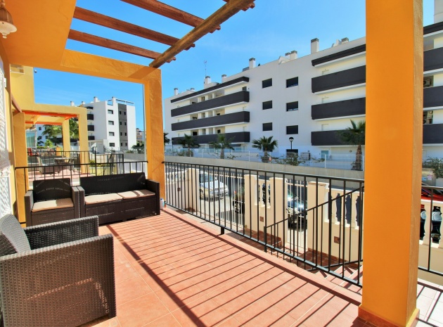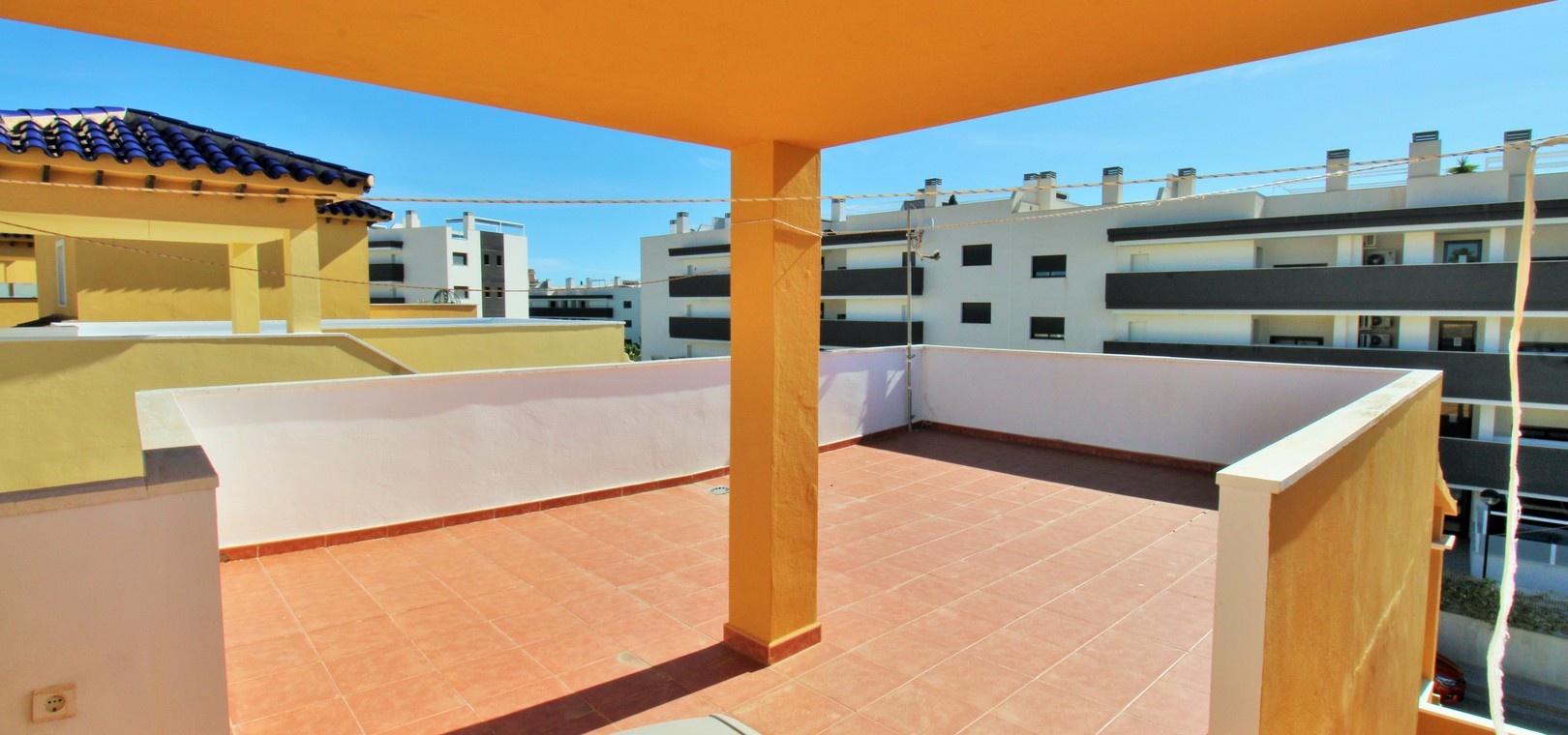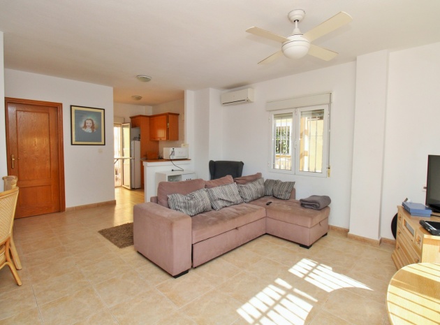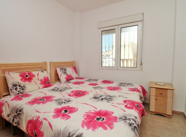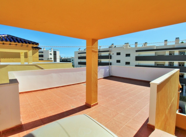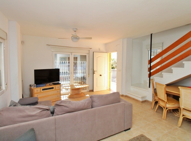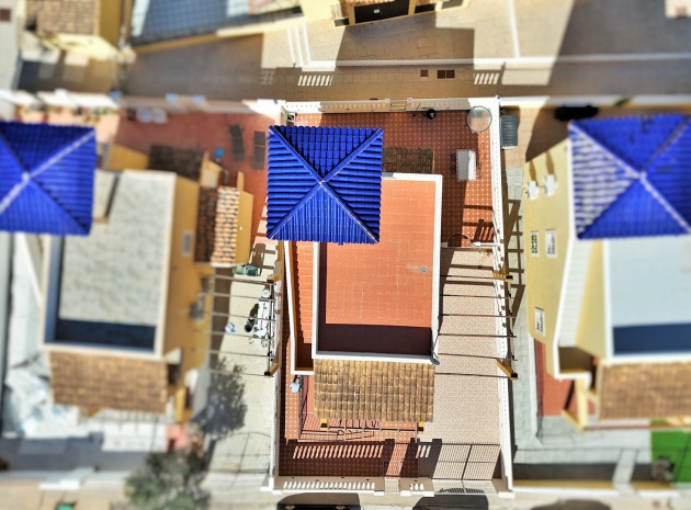 This charming South-facing, three-bedroom detached villa is nestled in the sought-after community of Lomas del Golf, Villamartin. Just a 10-minute walk from the renowned Villamartin Plaza and golf course, the property enjoys all-day sunshine and direct access to a beautifully maintained communal pool.The ground floor features a bright and airy lounge-dining area with an open-plan kitchen, a double bedroom with fitted wardrobes, and a shower room. Upstairs, you’ll find two additional bedrooms, both with fitted wardrobes, and a family bathroom. The master bedroom opens onto a covered balcony, with stairs leading up to a spacious roof solarium offering lovely views of the pool and surrounding area.Designed for outdoor living, the villa boasts a tiled garden, off-road parking, and a raised terrace. The kitchen provides direct access to the garden and communal pool, while a convenient storage/utility area is tucked beneath the terrace. The property is sold fully furnished, including white goods and air-conditioning, making it move-in ready.Whether you're looking for a full-time residence or a holiday retreat, this well-maintained villa is an excellent choice. Ideally located just a short stroll from vibrant bars, restaurants, shops, and a supermarket, it’s also a quick drive to Zenia Boulevard shopping centre, the blue flag beaches of Orihuela Costa, and prestigious golf courses like Las Ramblas, Campoamor, and Las Colinas.