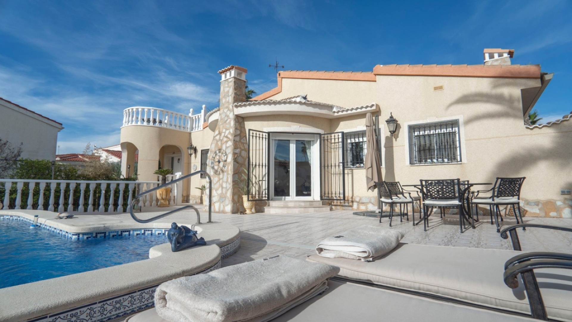 A 3 bed 2 bath detached villa with a private swimming pool located in La Marquesa Golf side, Ciudad Quesada, Costa Blanca South.