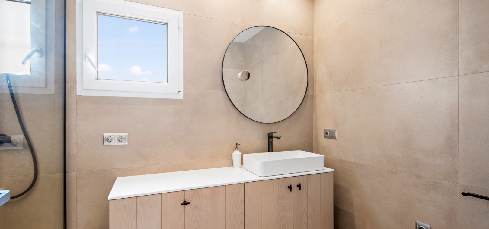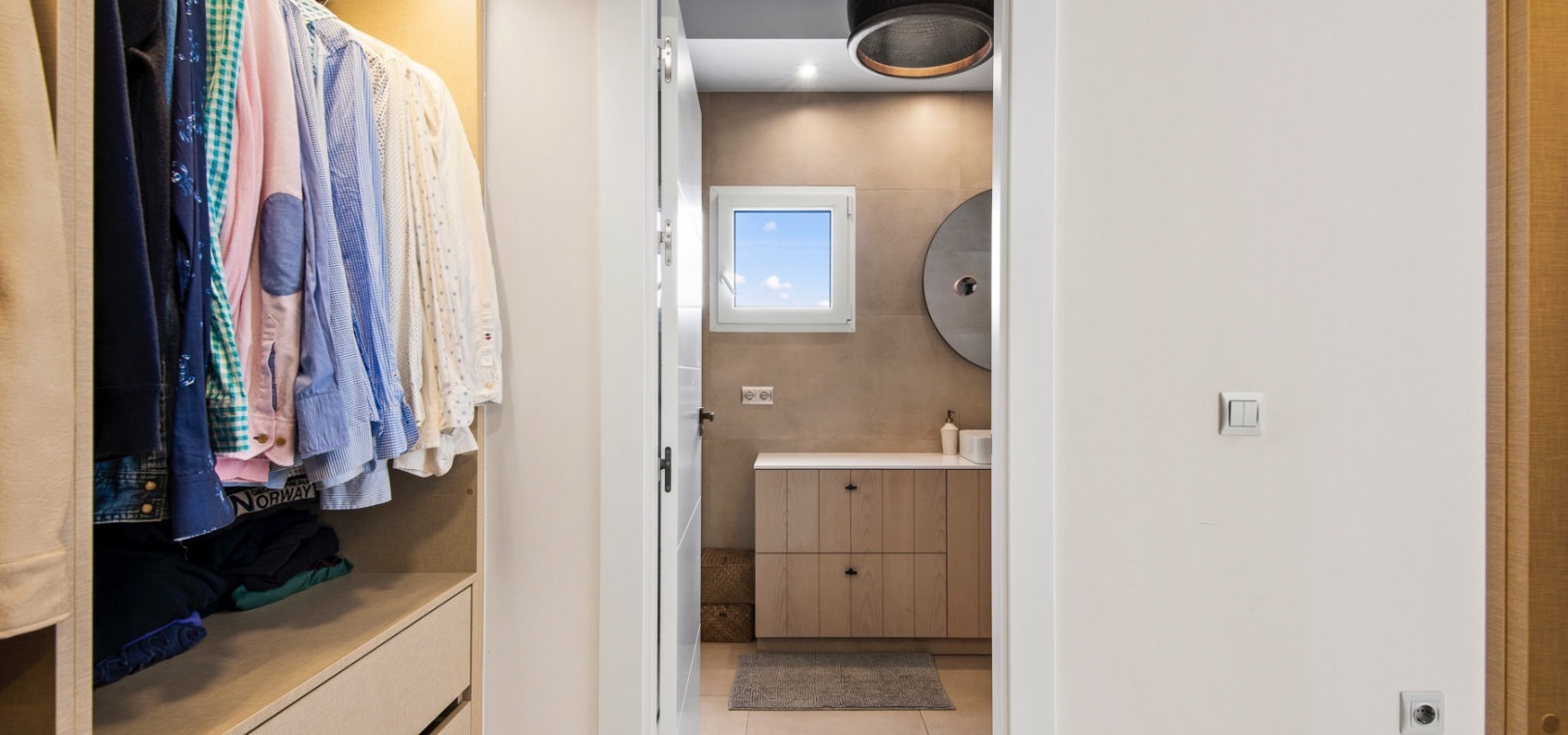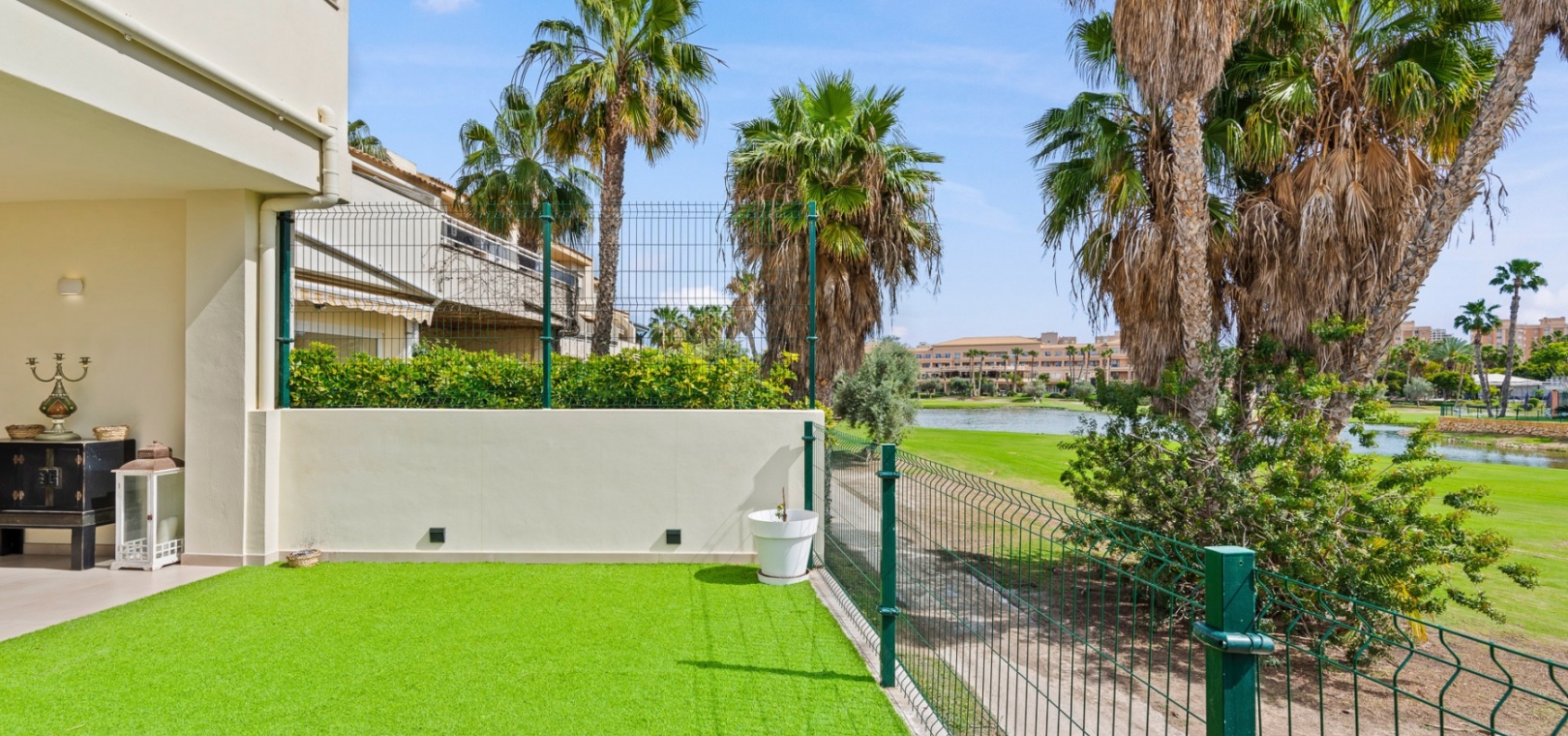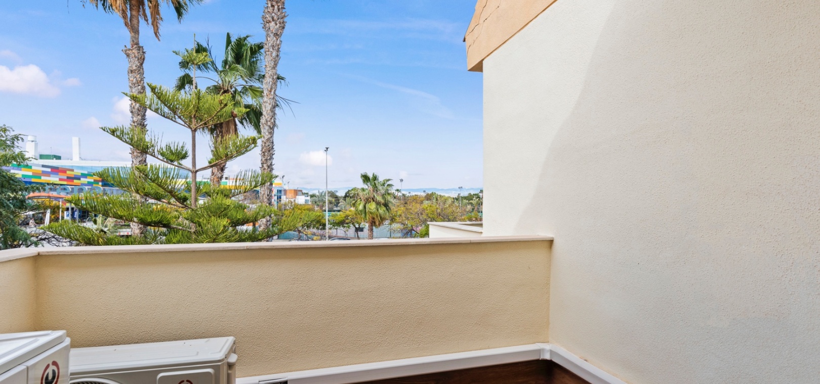Upstairs, the home offers three well-sized bedrooms, including a primary suite with a private terrace, a spacious walk-in closet, and an en-suite bathroom. Built-in wardrobes provide additional storage, and the solarium offers a perfect space to relax while enjoying green zone views.