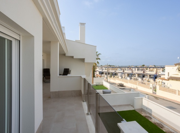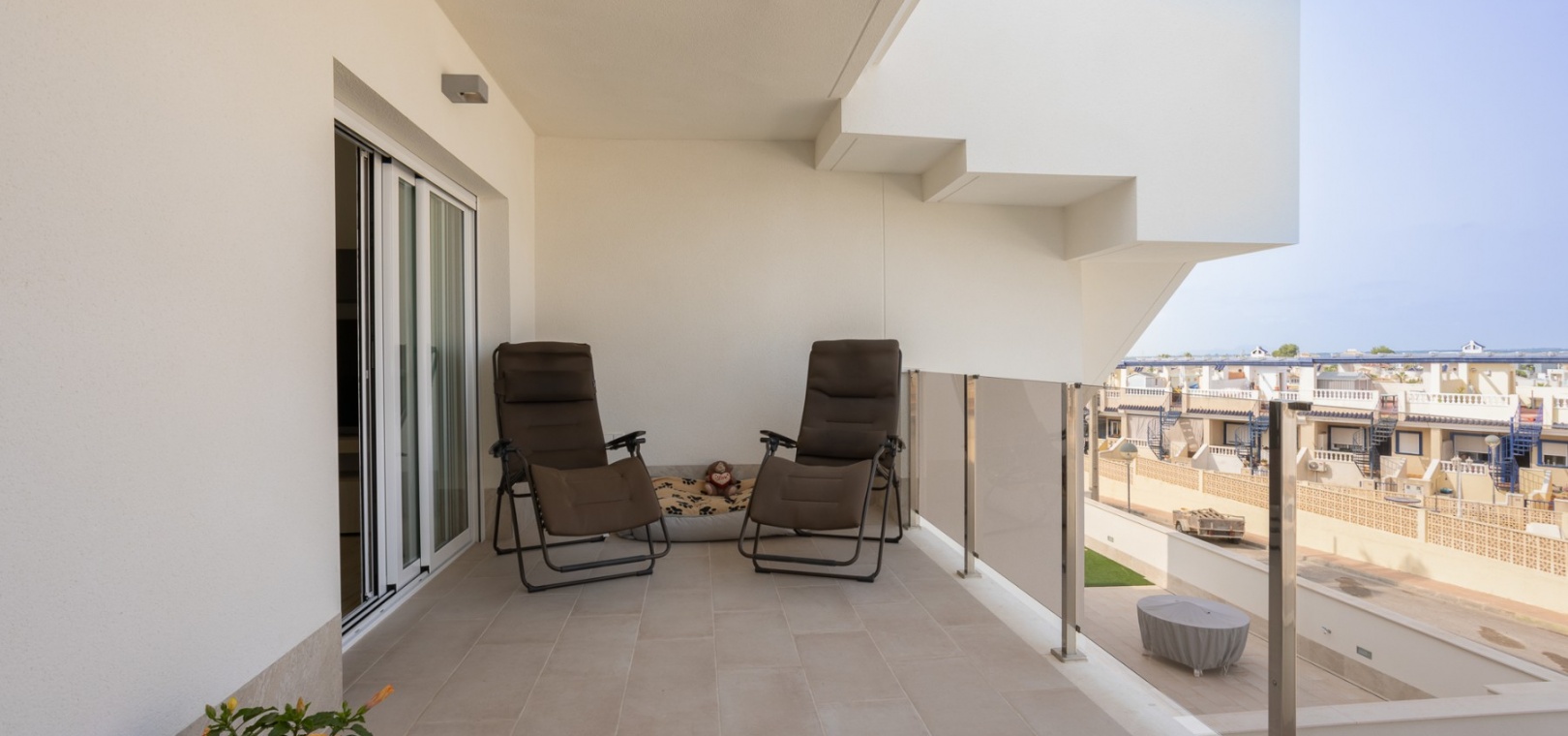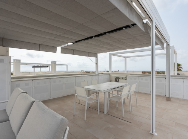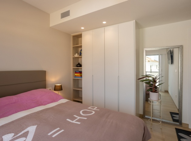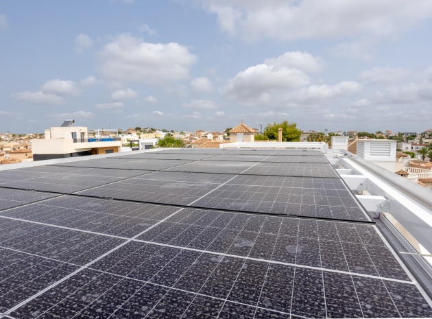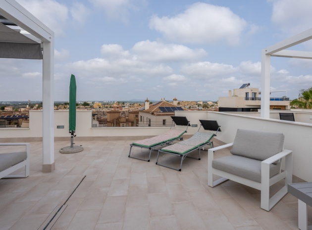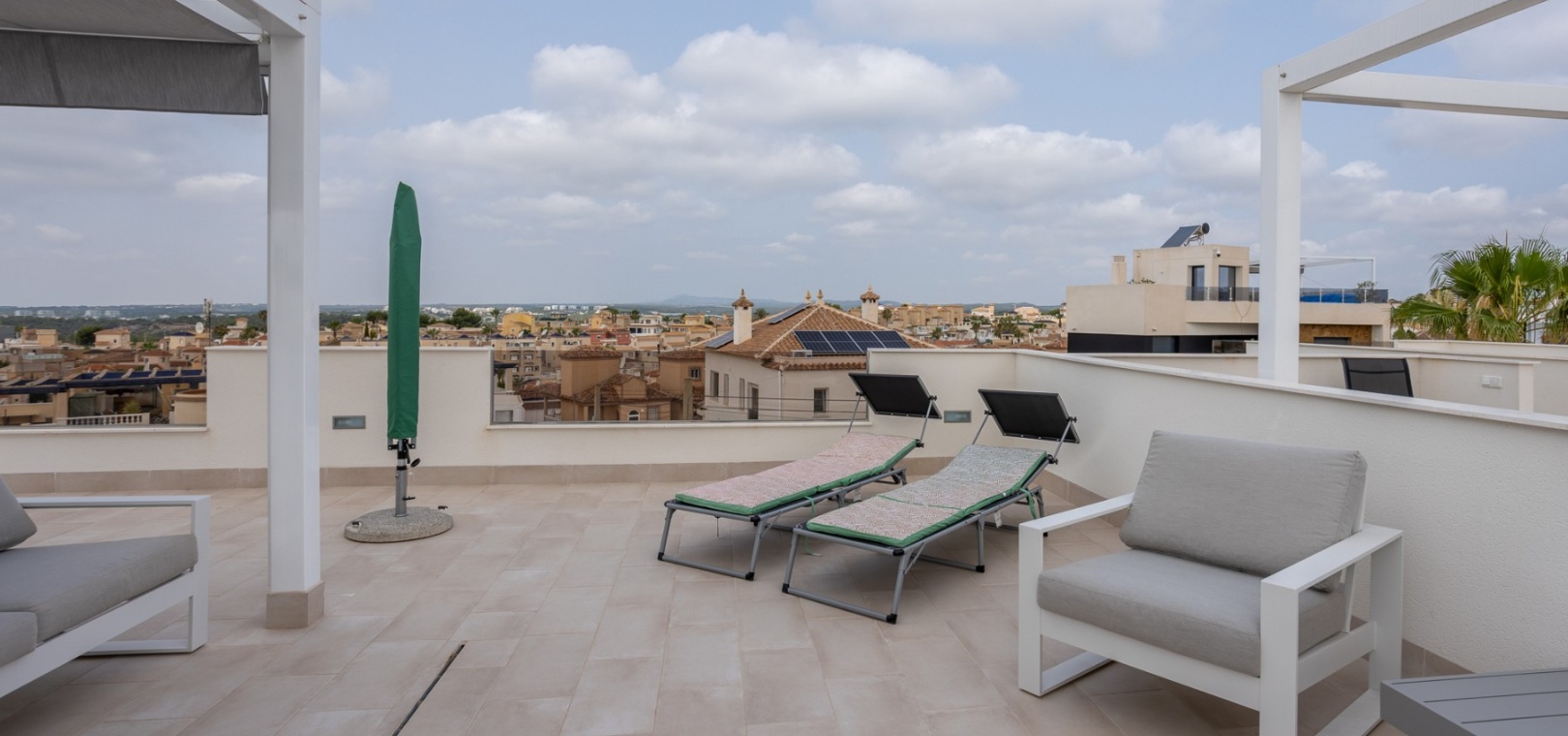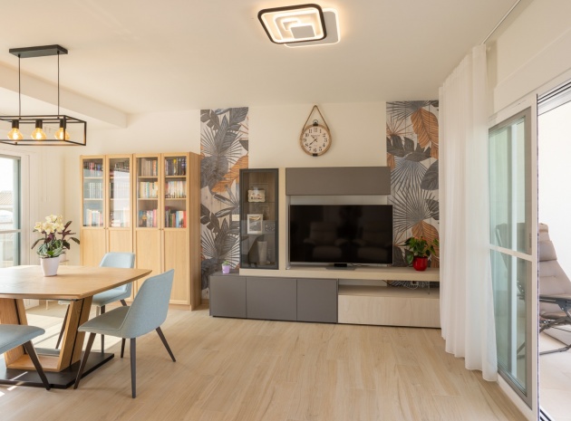 This Modern, Fully Reformed, South Facing, Two Bedroom Townhouse in San Luis is located in the area of Torrevieja, Costa Blanca South. Ideally situated within a 10 minute walk to many local amenities and facilities, a nearby pool bar, supermarkets just a couple of minutes’ drive away, and less than a 10 minute drive to the wide choice of beautiful beaches within Torrevieja centre! This stylishly renovated property comprises two double bedrooms — one on the ground floor enjoying natural light from a small internal courtyard, and the master bedroom on the first floor with fitted wardrobes and access to a sunny solarium boasting open views across the area, to the salt lakes and stunning sunsets. The home features a modern, open plan fully fitted kitchen and a bright, light-filled lounge/dining room with direct access out to the front tiled garden terrace — perfect for relaxing or dining al fresco. Additional features include a sleek walk-in shower room, air conditioning in the living room and master bedroom, off road parking, and a video intercom system for added convenience and security. This beautiful townhouse offers a perfect blend of contemporary living and Mediterranean charm, making it an ideal permanent home or holiday getaway on the Costa Blanca South.