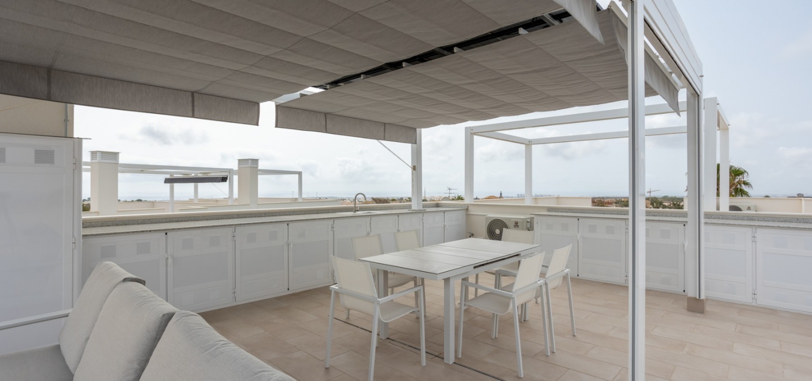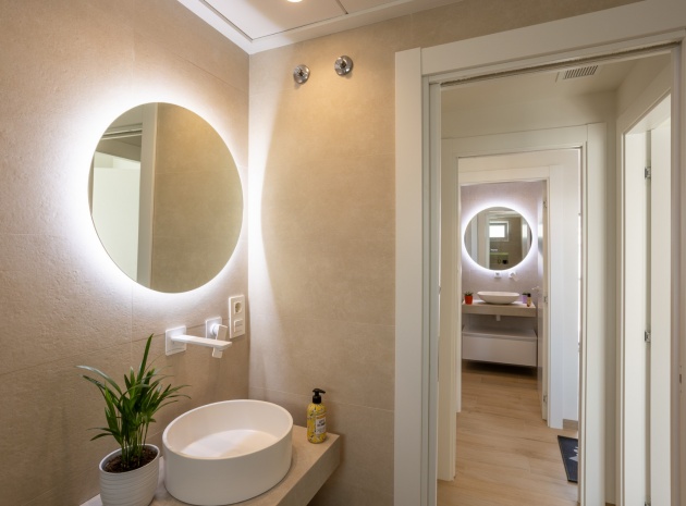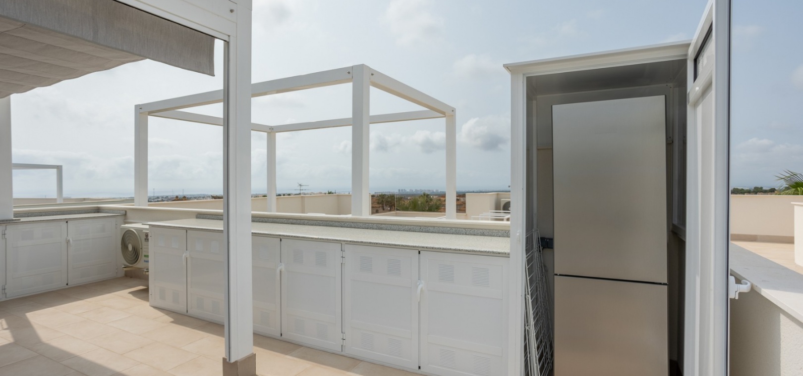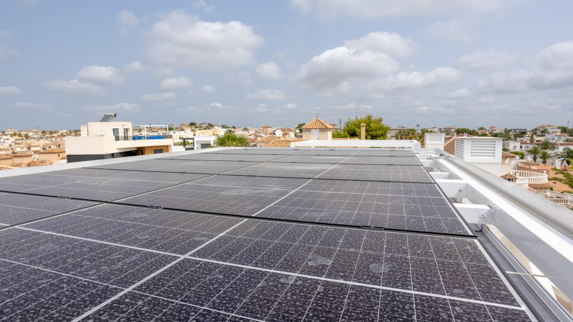 This Modern, Fully Reformed, South Facing, Two Bedroom Townhouse in San Luis is located in the area of Torrevieja, Costa Blanca South. Ideally situated within a 10 minute walk to many local amenities and facilities, a nearby pool bar, supermarkets just a couple of minutes’ drive away, and less than a 10 minute drive to the wide choice of beautiful beaches within Torrevieja centre! This stylishly renovated property comprises two double bedrooms — one on the ground floor enjoying natural light from a small internal courtyard, and the master bedroom on the first floor with fitted wardrobes and access to a sunny solarium boasting open views across the area, to the salt lakes and stunning sunsets. The home features a modern, open plan fully fitted kitchen and a bright, light-filled lounge/dining room with direct access out to the front tiled garden terrace — perfect for relaxing or dining al fresco. Additional features include a sleek walk-in shower room, air conditioning in the living room and master bedroom, off road parking, and a video intercom system for added convenience and security. This beautiful townhouse offers a perfect blend of contemporary living and Mediterranean charm, making it an ideal permanent home or holiday getaway on the Costa Blanca South.