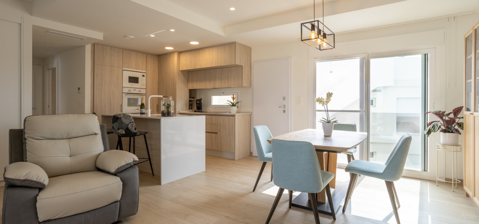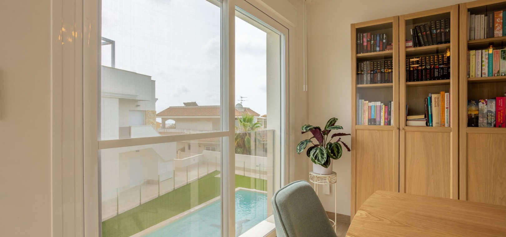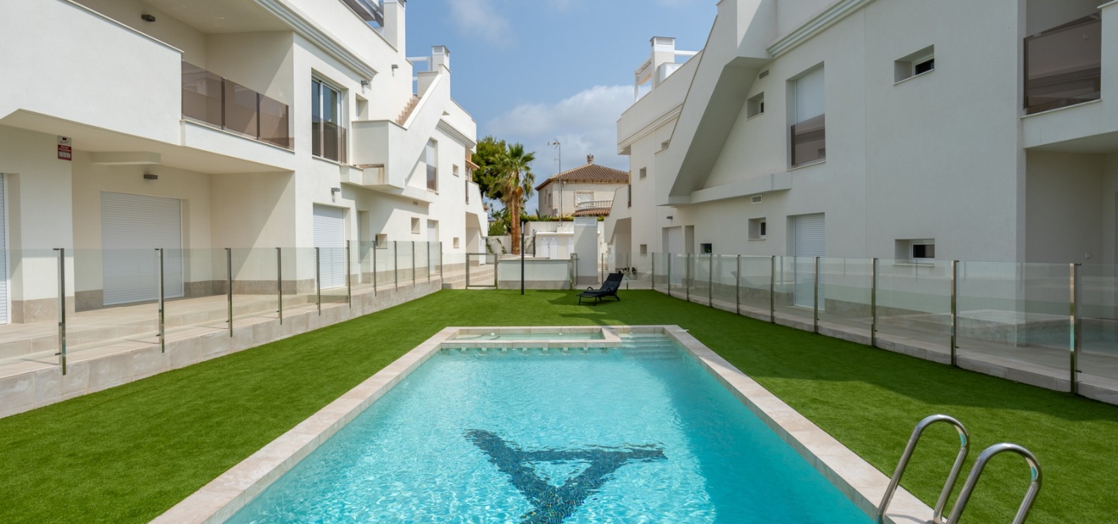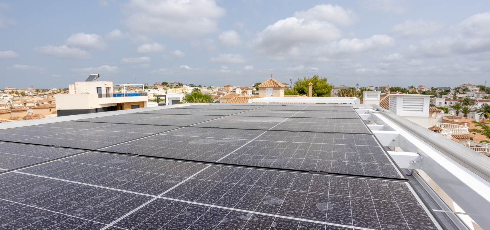 This Modern, Fully Reformed, South Facing, Two Bedroom Townhouse in San Luis is located in the area of Torrevieja, Costa Blanca South. Ideally situated within a 10 minute walk to many local amenities and facilities, a nearby pool bar, supermarkets just a couple of minutes’ drive away, and less than a 10 minute drive to the wide choice of beautiful beaches within Torrevieja centre! This stylishly renovated property comprises two double bedrooms — one on the ground floor enjoying natural light from a small internal courtyard, and the master bedroom on the first floor with fitted wardrobes and access to a sunny solarium boasting open views across the area, to the salt lakes and stunning sunsets. The home features a modern, open plan fully fitted kitchen and a bright, light-filled lounge/dining room with direct access out to the front tiled garden terrace — perfect for relaxing or dining al fresco. Additional features include a sleek walk-in shower room, air conditioning in the living room and master bedroom, off road parking, and a video intercom system for added convenience and security. This beautiful townhouse offers a perfect blend of contemporary living and Mediterranean charm, making it an ideal permanent home or holiday getaway on the Costa Blanca South.