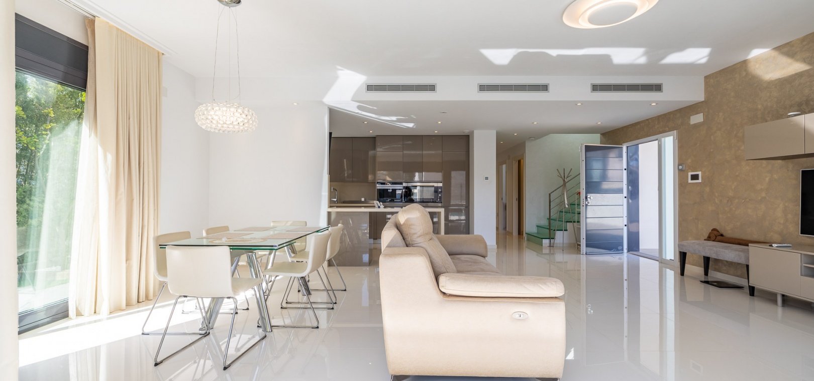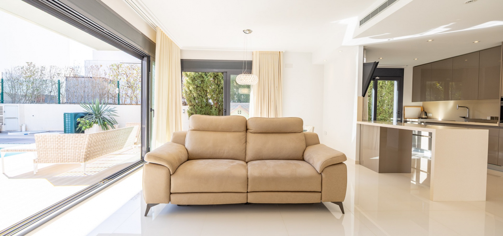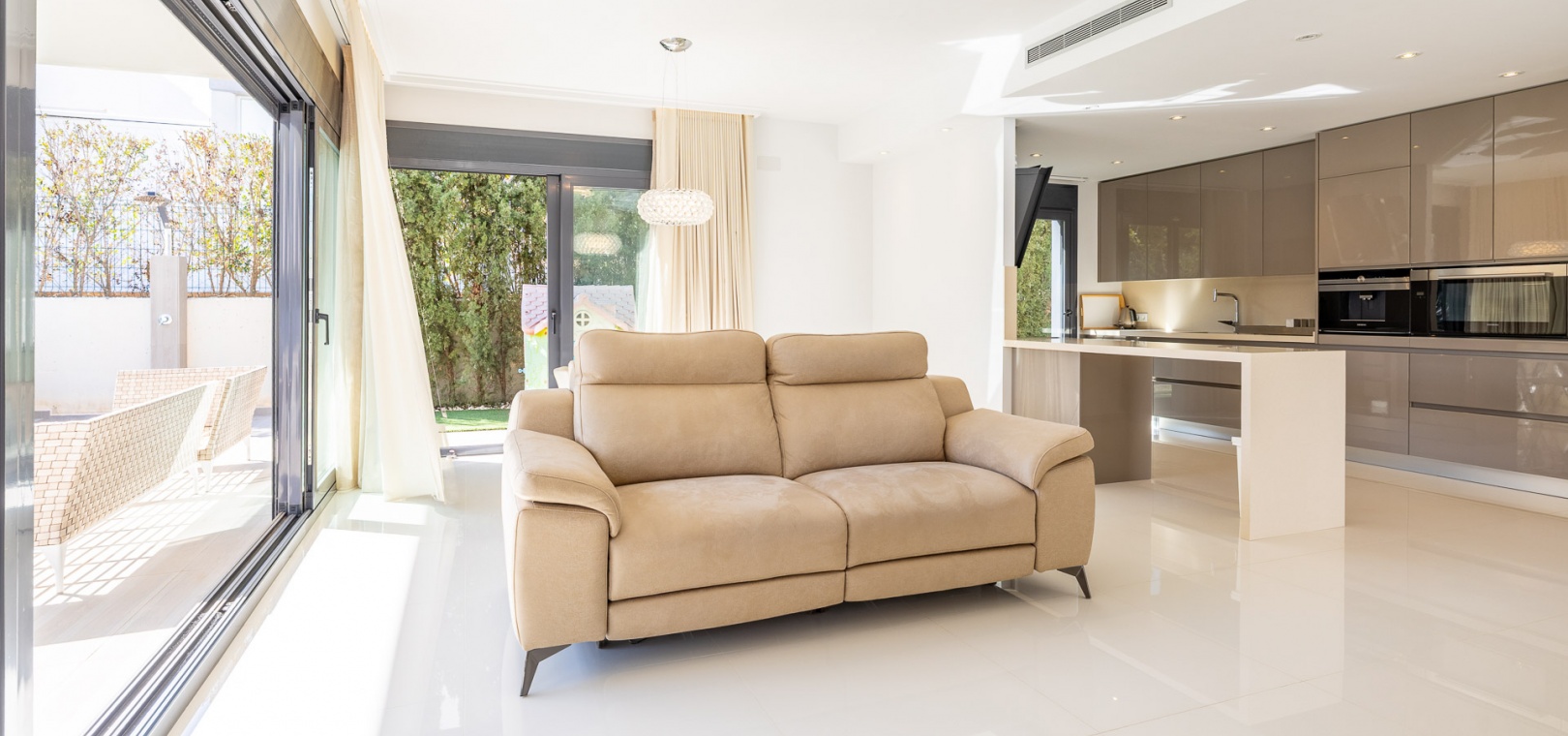 Inside, you will find a bright living room with direct access to the garden, a modern open-plan kitchen designed for food lovers, and an inviting entrance hall that welcomes you into a home filled with light and warmth.
