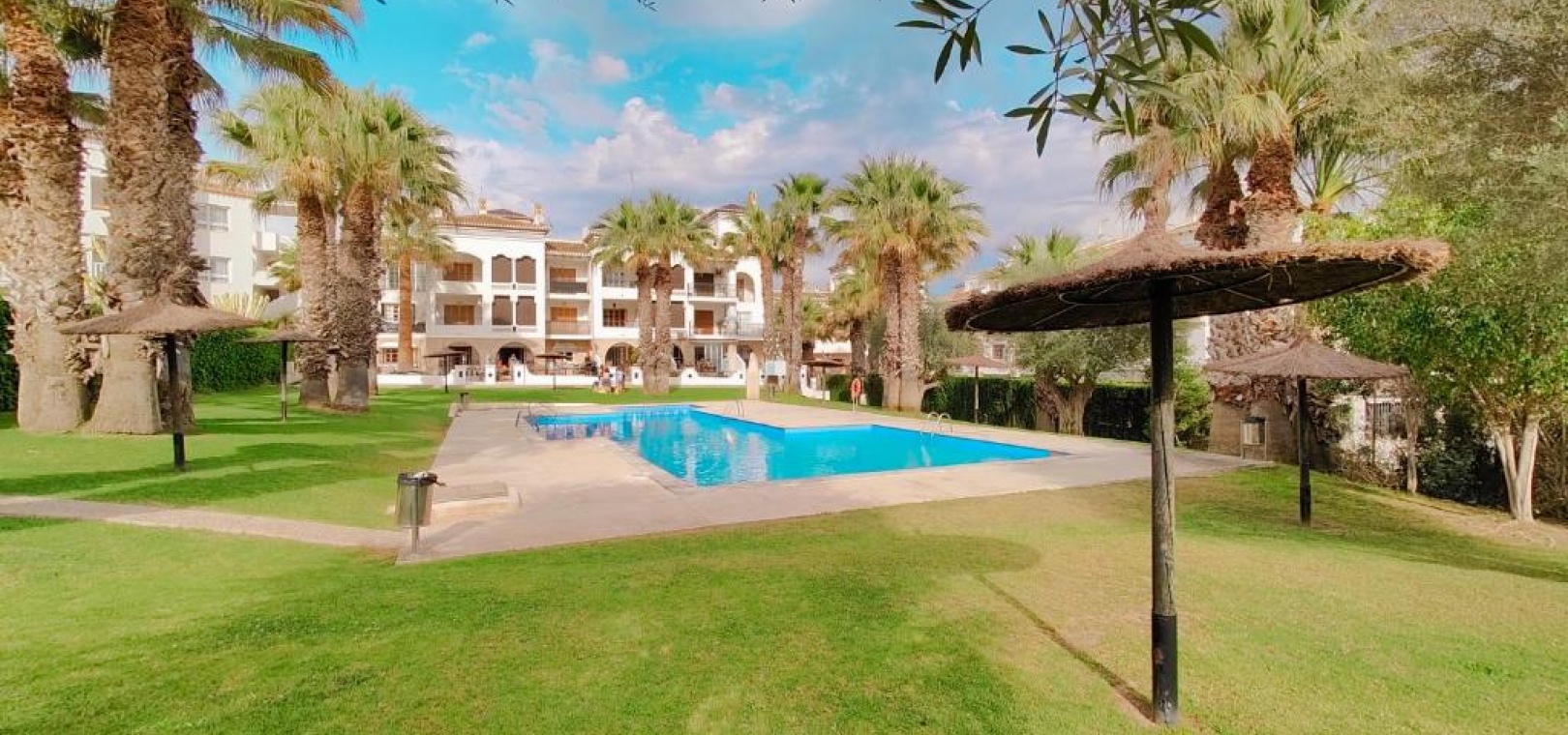 Outside, a well-maintained communal pool awaits, a perfect place to cool off on sunny days or take a refreshing morning swim for a perfect start to the day.
