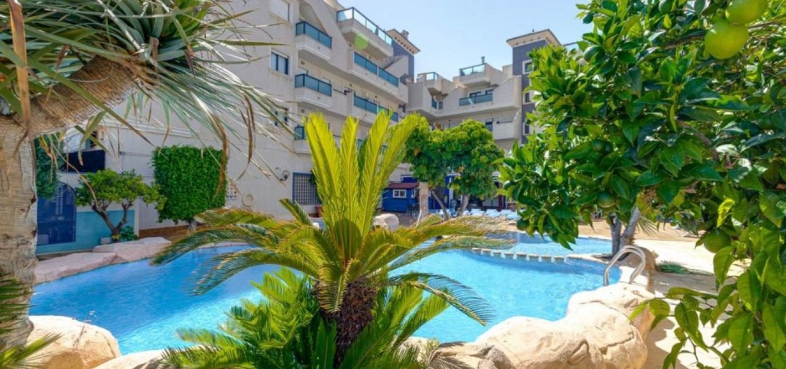 There is an underground parking and an elevator. The property is located in a gated complex with a magnificent garden and a communal swimming pool. Close to the bars, shops and restaurants of Cabo Roig and a few minutes from the beach.