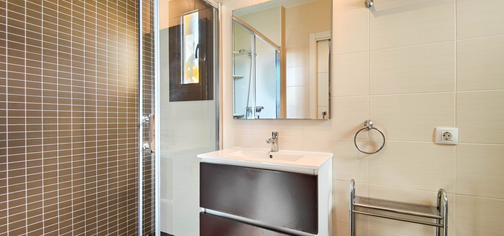 This stunning southeast facing ground floor bungalow has been fully renovated with a modern and functional design. Featuring 2 bedrooms, 2 bathrooms (one en-suite), a spacious living-dining area with an open-plan kitchen, a rear patio and a storage room, this home has been designed for comfort and style.