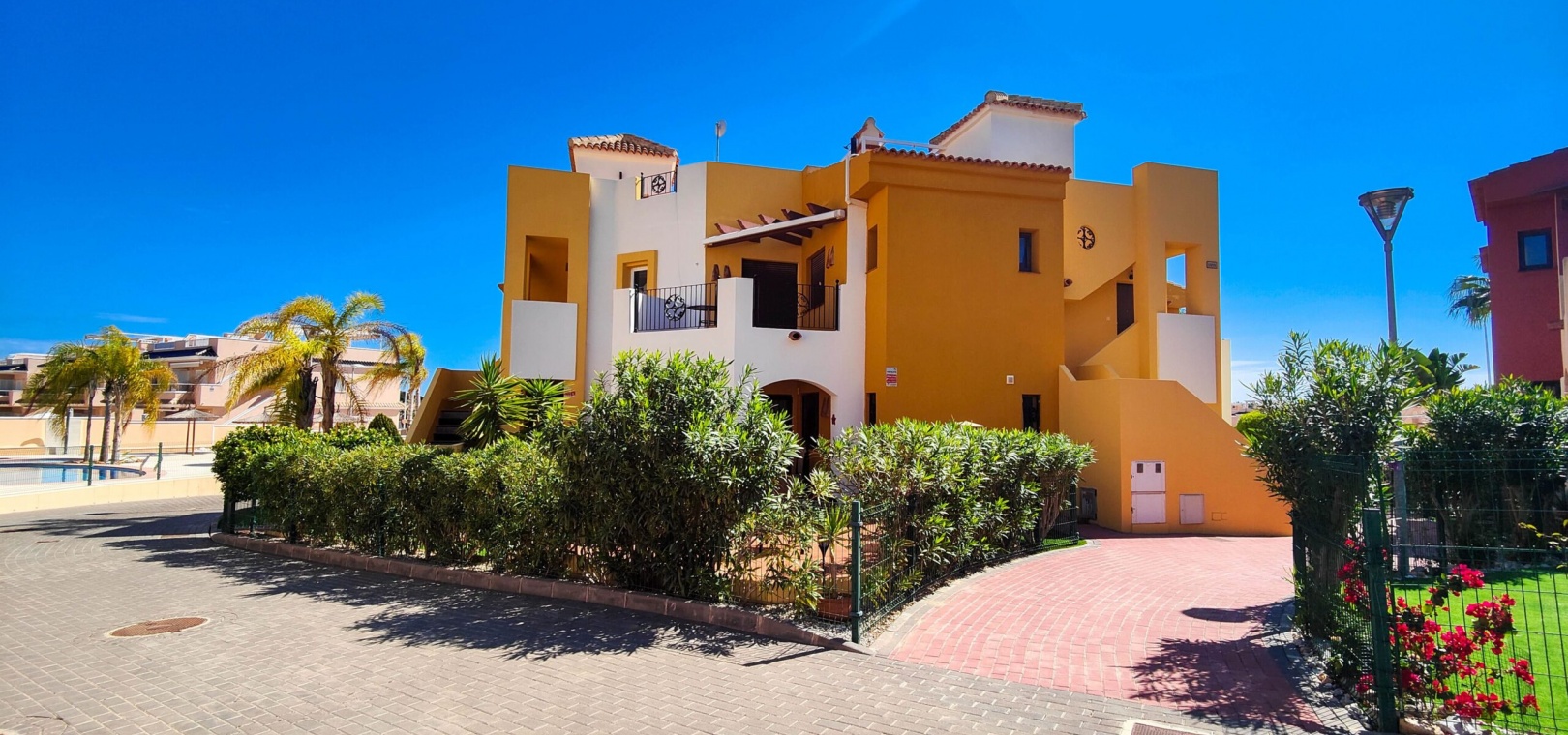 This amazing property offers a good sized covered terrace and a small garden with artificial grass, the perfect spot to relax outdoors. Additionally, you can take advantage of the community amenities, including a swimming pool and parking spaces within the gated complex, ensuring security and peace of mind.