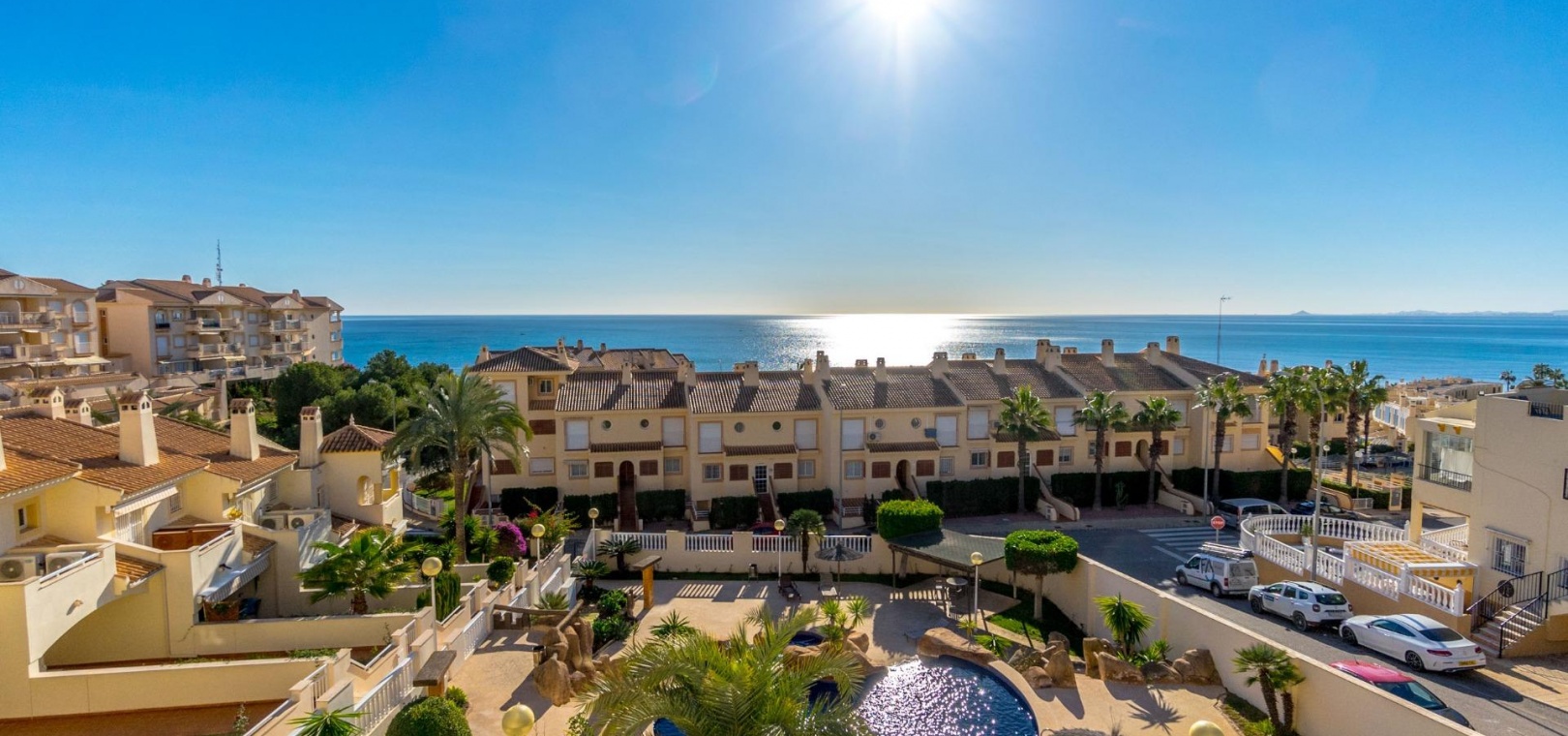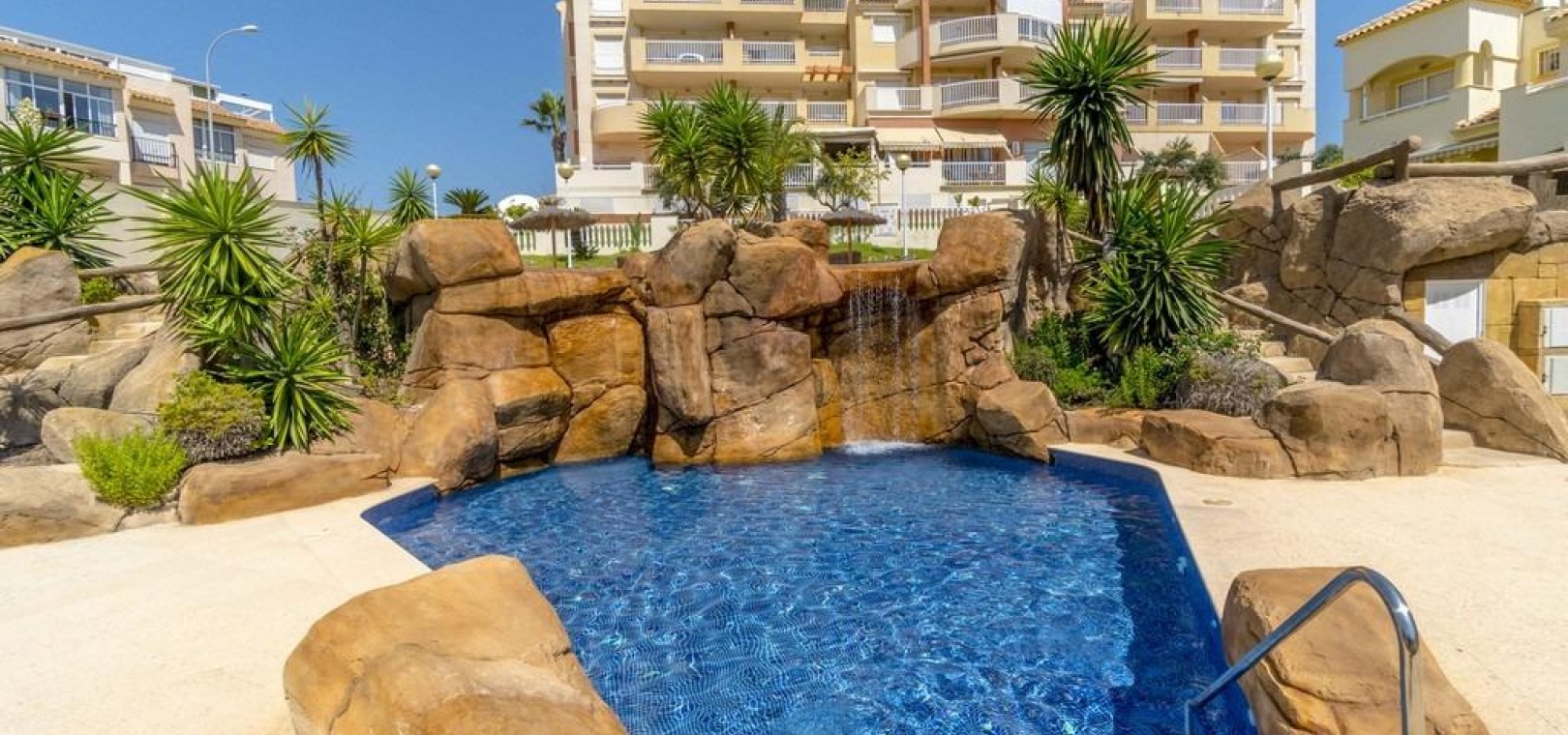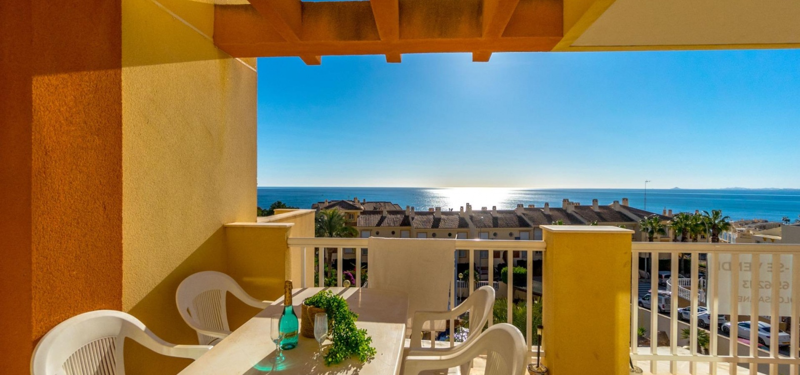 Located in Dehesa de Campoamor, Orihuela Costa, this 2 bedroom apartment is located in one of the most sought after residential complexes on the Costa Blanca, Balcón del Mar. The apartment of about 88m2, has 2 large bedrooms and a bathroom. Spacious and bright living-dining room that opens seamlessly to a large terrace. From here, you can enjoy stunning views of the Mediterranean Sea. It has a separate, fully equipped kitchen and a laundry room. A private parking space in the underground garage and a storage room of 3.75 square meters are included in the price. The community offers two communal swimming pools, including a children's pool, with a waterfall, a surrounding garden area for relaxation with sunbads and a barbecue area. The area offers a wide variety of amenities: a nearby supermarket, a health center, a pharmacy, bars, restaurants and cafes. The popular Zenia Boulevard shopping center is just a few minutes away and the beach is 200m away.~~