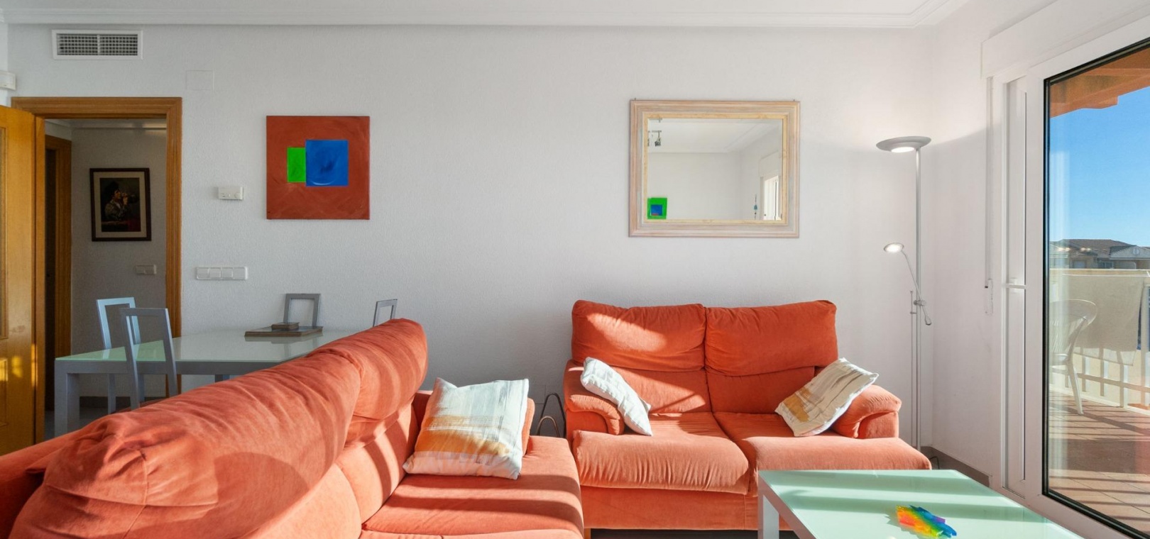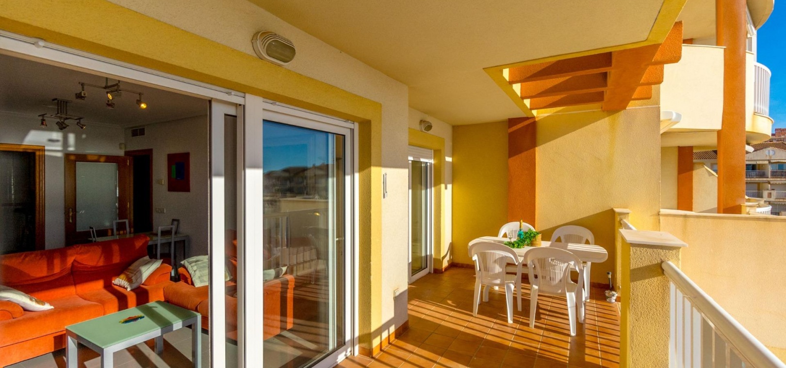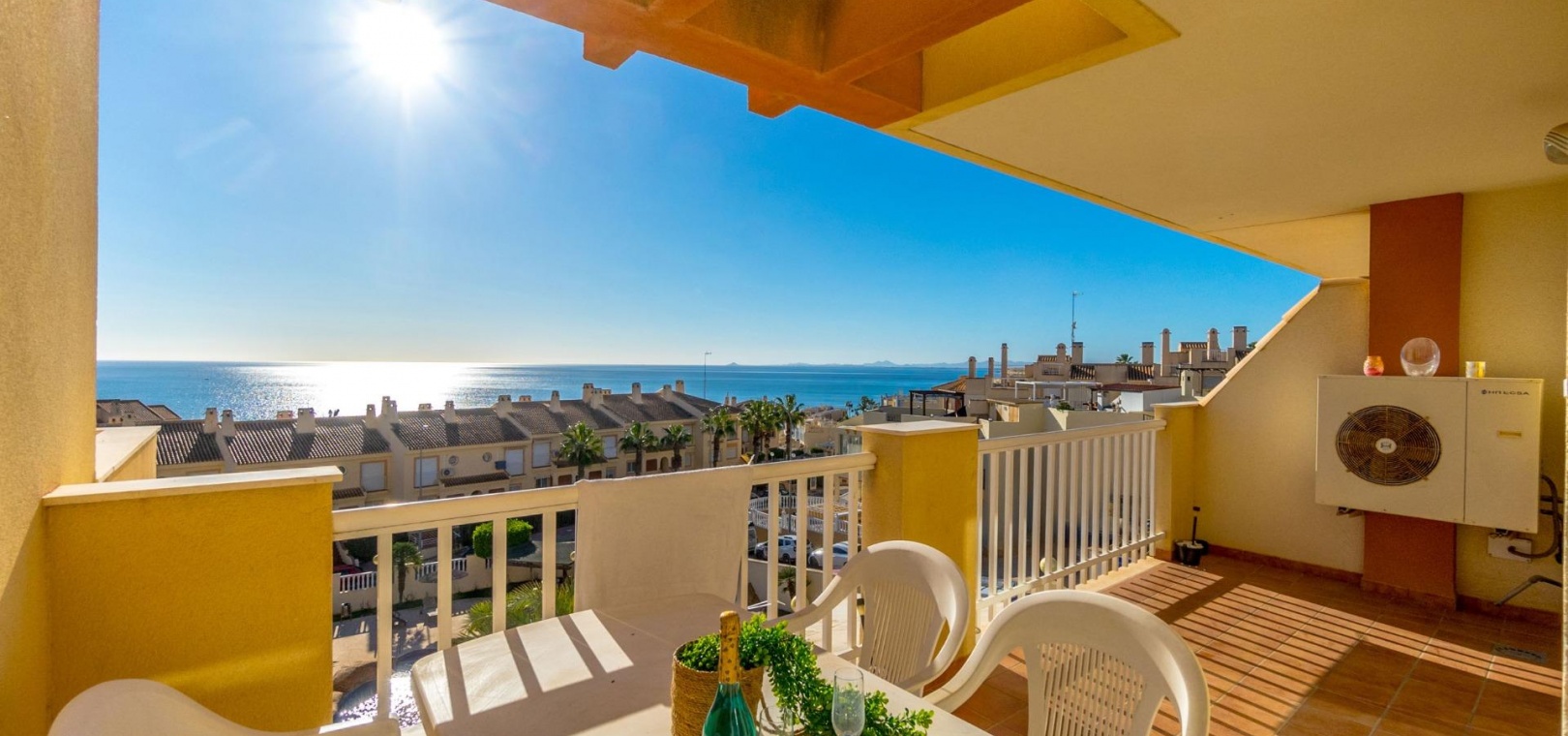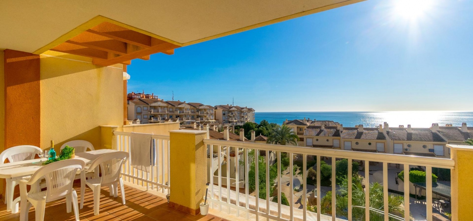 Located in Dehesa de Campoamor, Orihuela Costa, this 2 bedroom apartment is located in one of the most sought after residential complexes on the Costa Blanca, Balcón del Mar. The apartment of about 88m2, has 2 large bedrooms and a bathroom. Spacious and bright living-dining room that opens seamlessly to a large terrace. From here, you can enjoy stunning views of the Mediterranean Sea. It has a separate, fully equipped kitchen and a laundry room. A private parking space in the underground garage and a storage room of 3.75 square meters are included in the price. The community offers two communal swimming pools, including a children's pool, with a waterfall, a surrounding garden area for relaxation with sunbads and a barbecue area. The area offers a wide variety of amenities: a nearby supermarket, a health center, a pharmacy, bars, restaurants and cafes. The popular Zenia Boulevard shopping center is just a few minutes away and the beach is 200m away.~~