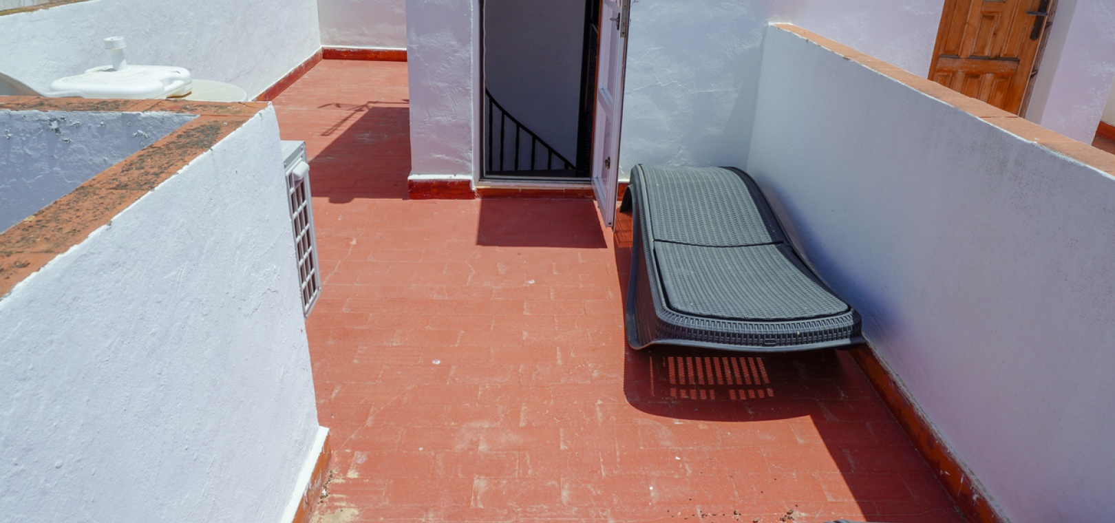 Spiral staircase leading to a private rooftop solarium—ideal for sunbathing or relaxing