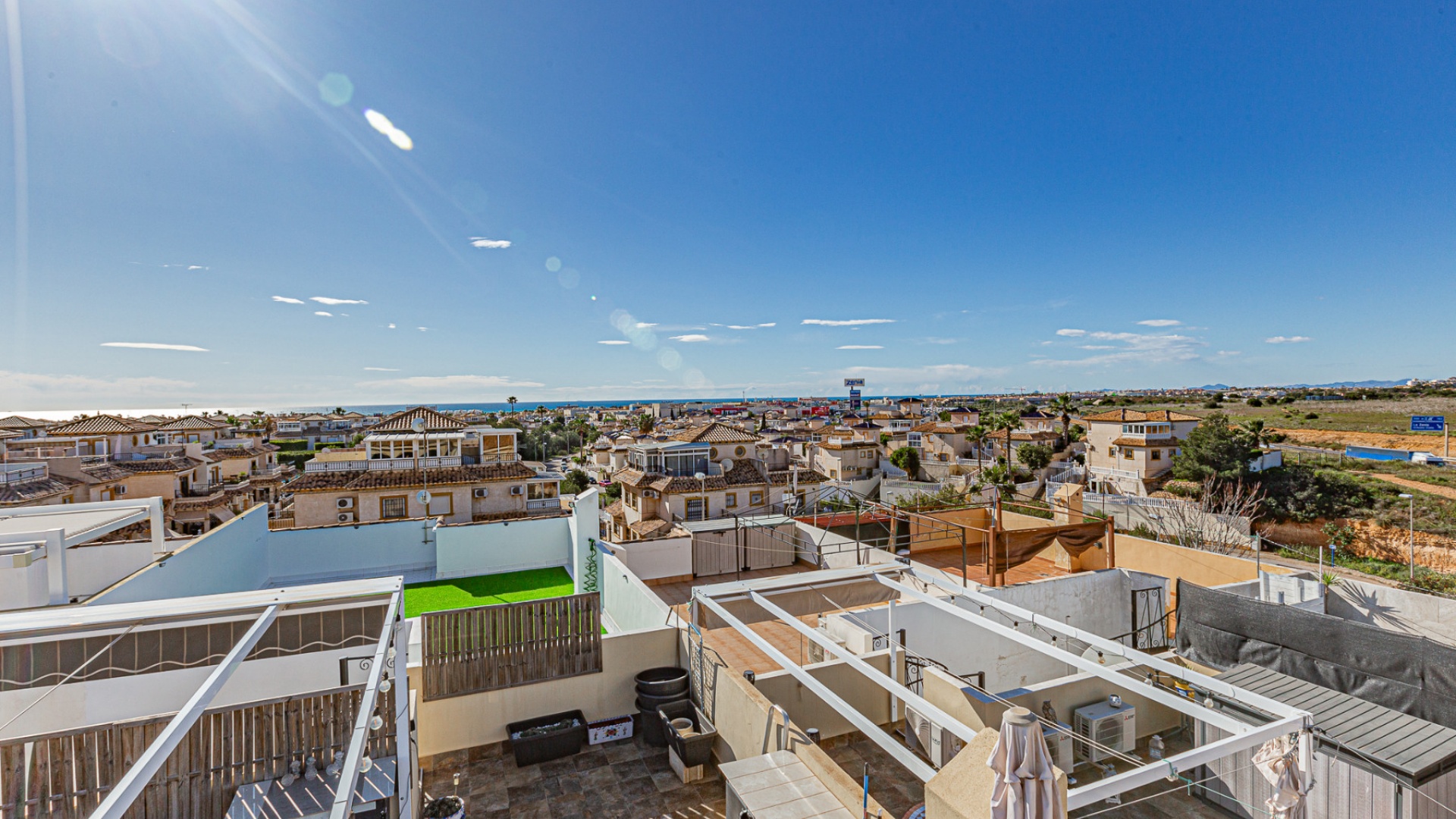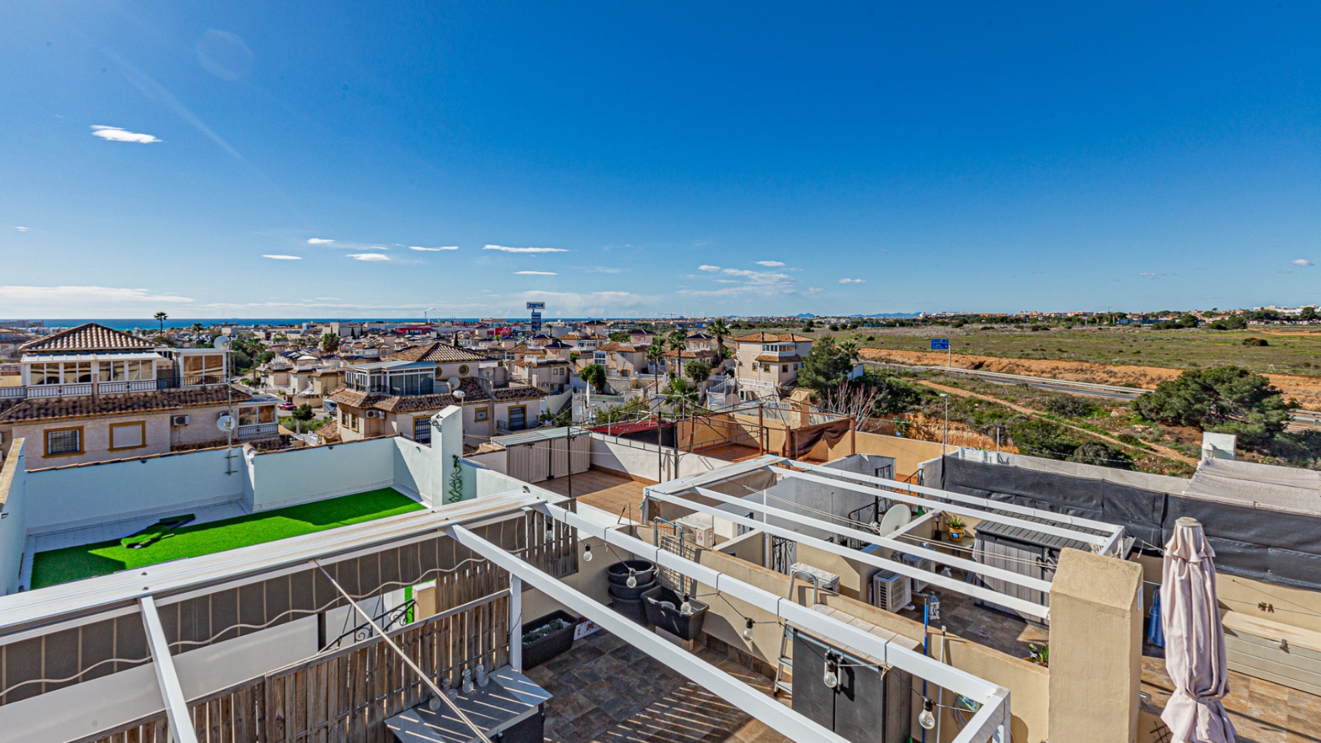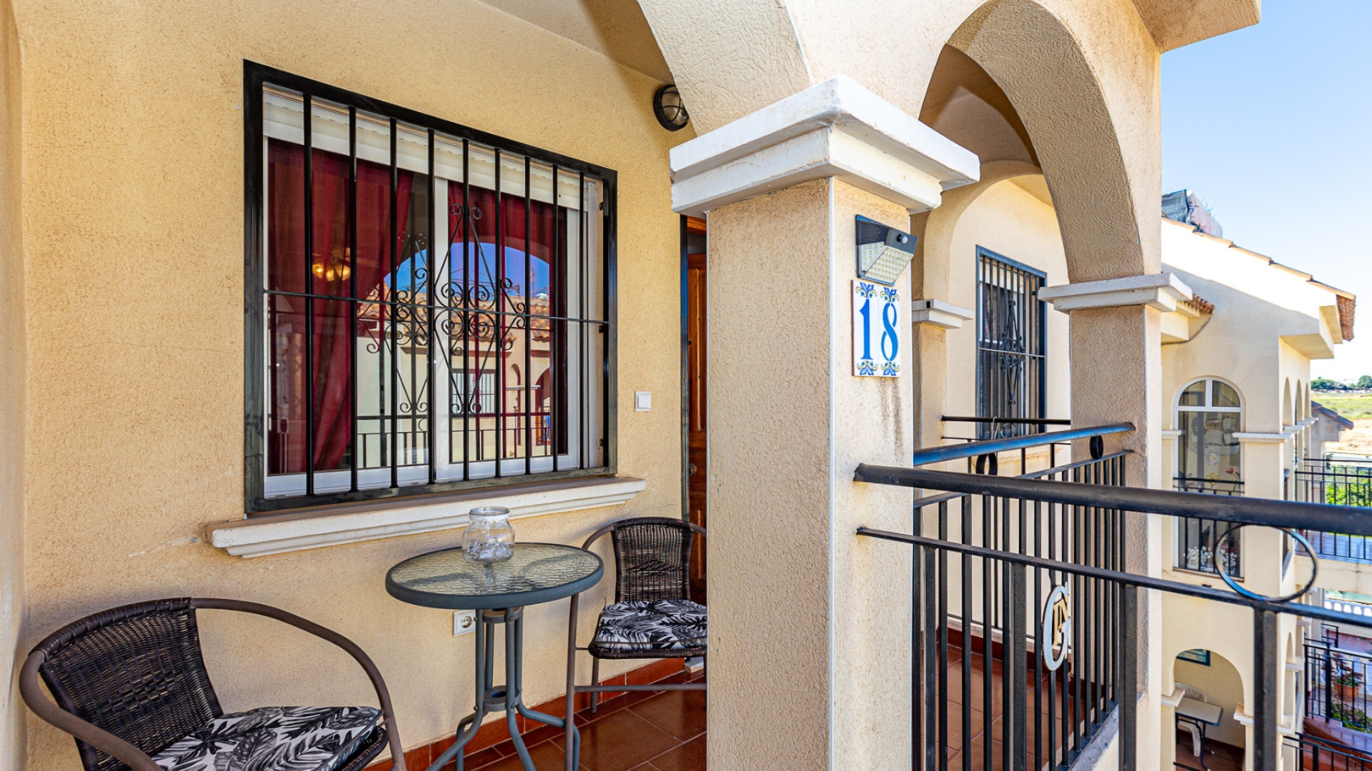 This outdoor space is ideal for enjoying the Mediterranean climate – whether for sunbathing, barbecues, or relaxing with family and friends. The gated community also includes a communal pool, perfect for cooling off on warm days.