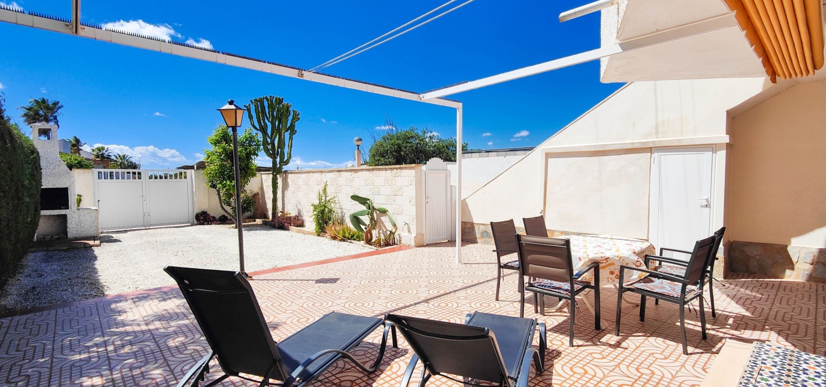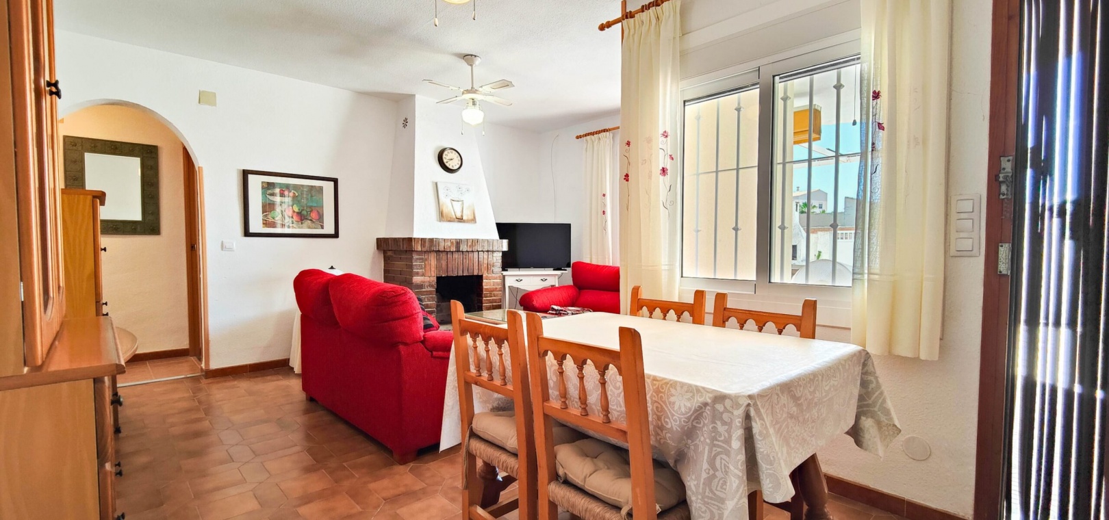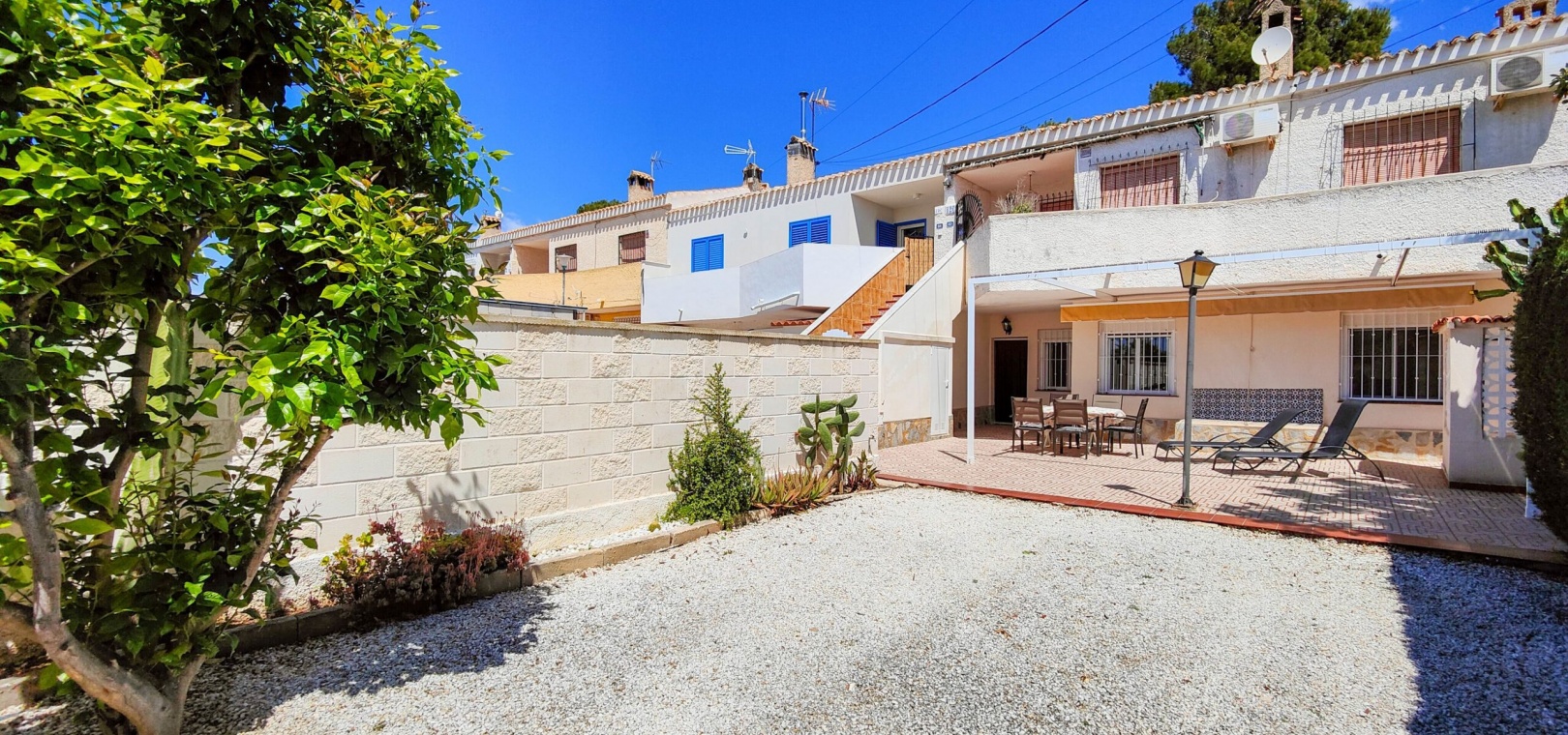 Stunning renovated south facing ground floor bungalow for sale in one of the most sought-after areas of Orihuela Costa: La Regia. Boasting a 135 m² south-facing private garden, it's the perfect spot to enjoy the Mediterranean lifestyle all year round.The property features 3 bedrooms with built-in wardrobes, a fully equipped bathroom with shower, an independent kitchen, and a spacious living-dining area with a fireplace, creating a warm and welcoming atmosphere.Recent improvements include new interior carpentry and aluminum double-glazed windows, offering better thermal and acoustic insulation.It is sold furnished, ready to move into.Additional features include a storage room in the garden, off road parking and a generous outdoor space perfect for dining, relaxing, or even installing a pool.Located in a quiet residential area yet close to all amenities, beaches, shopping centers, and golf courses, this is an excellent opportunity for a permanent residence, holiday home, or investment.Do not miss the chance to buy this amazing 3 bedroom south facing ground floor bungalow in La Regia - Orihuela Costa.