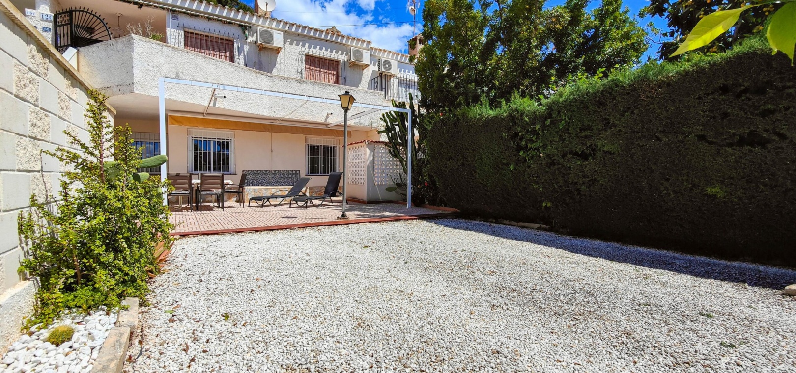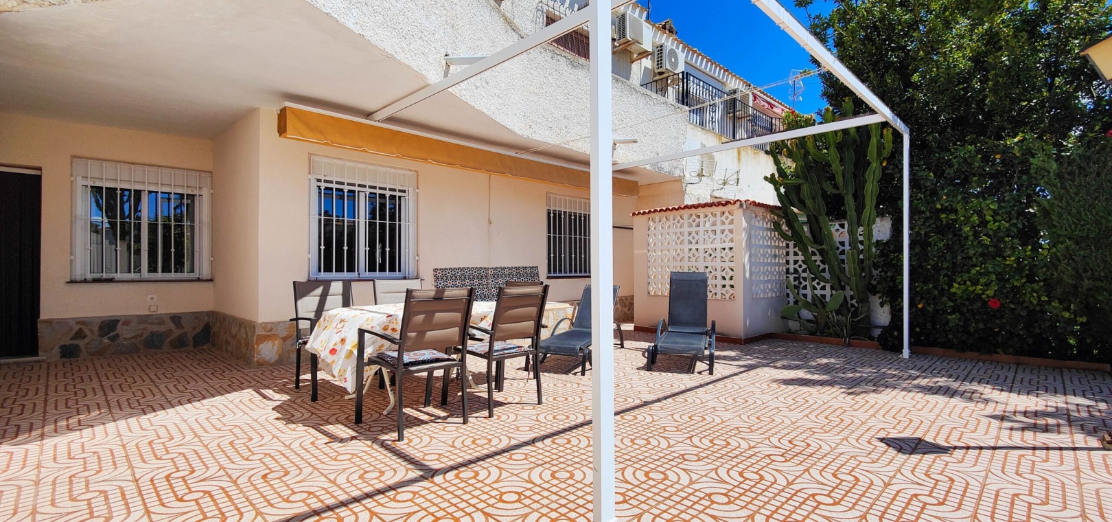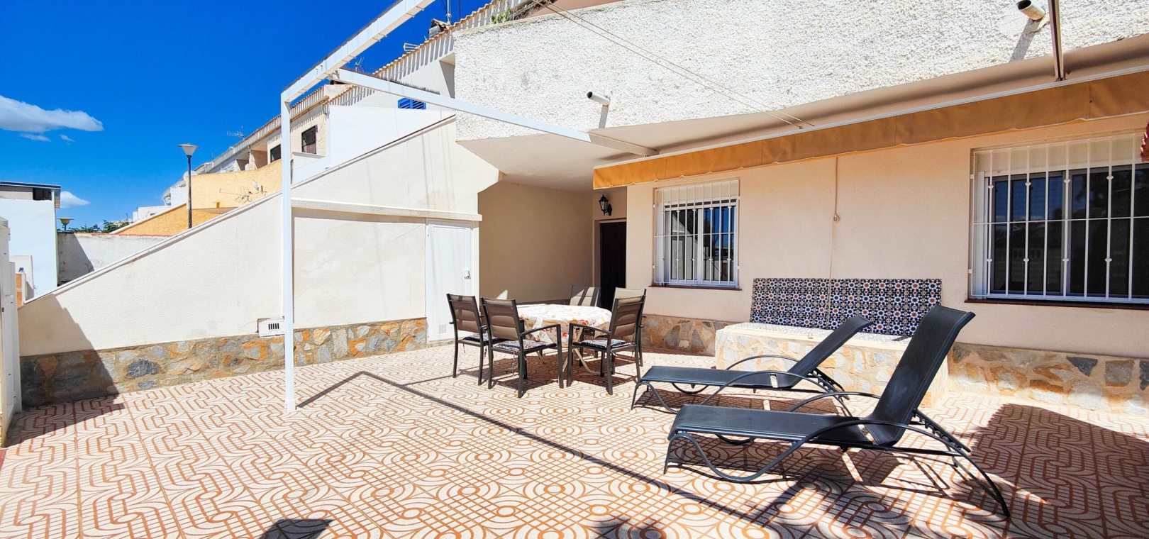 Stunning renovated south facing ground floor bungalow for sale in one of the most sought-after areas of Orihuela Costa: La Regia. Boasting a 135 m² south-facing private garden, it's the perfect spot to enjoy the Mediterranean lifestyle all year round.The property features 3 bedrooms with built-in wardrobes, a fully equipped bathroom with shower, an independent kitchen, and a spacious living-dining area with a fireplace, creating a warm and welcoming atmosphere.Recent improvements include new interior carpentry and aluminum double-glazed windows, offering better thermal and acoustic insulation.It is sold furnished, ready to move into.Additional features include a storage room in the garden, off road parking and a generous outdoor space perfect for dining, relaxing, or even installing a pool.Located in a quiet residential area yet close to all amenities, beaches, shopping centers, and golf courses, this is an excellent opportunity for a permanent residence, holiday home, or investment.Do not miss the chance to buy this amazing 3 bedroom south facing ground floor bungalow in La Regia - Orihuela Costa.