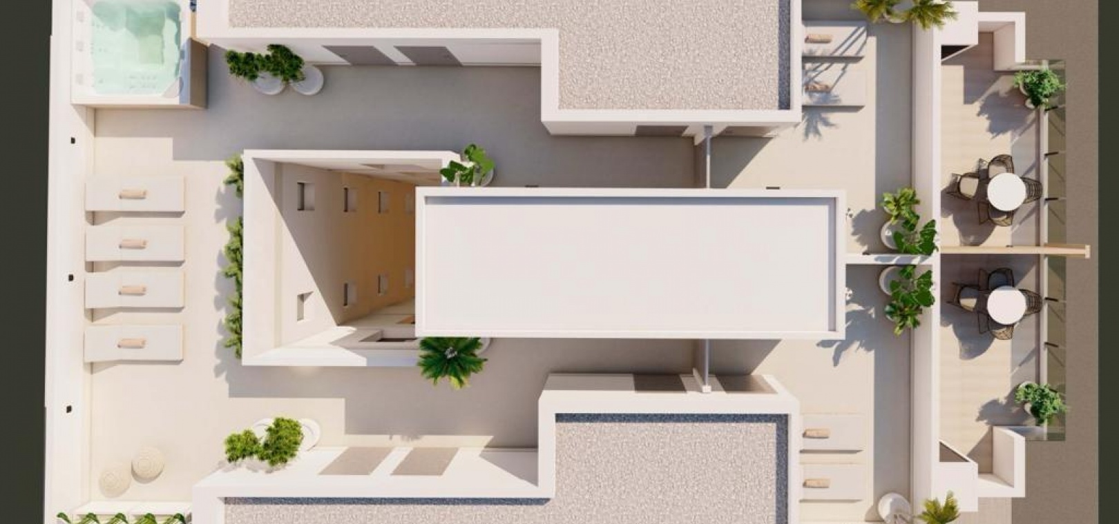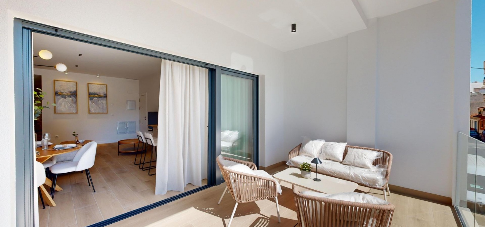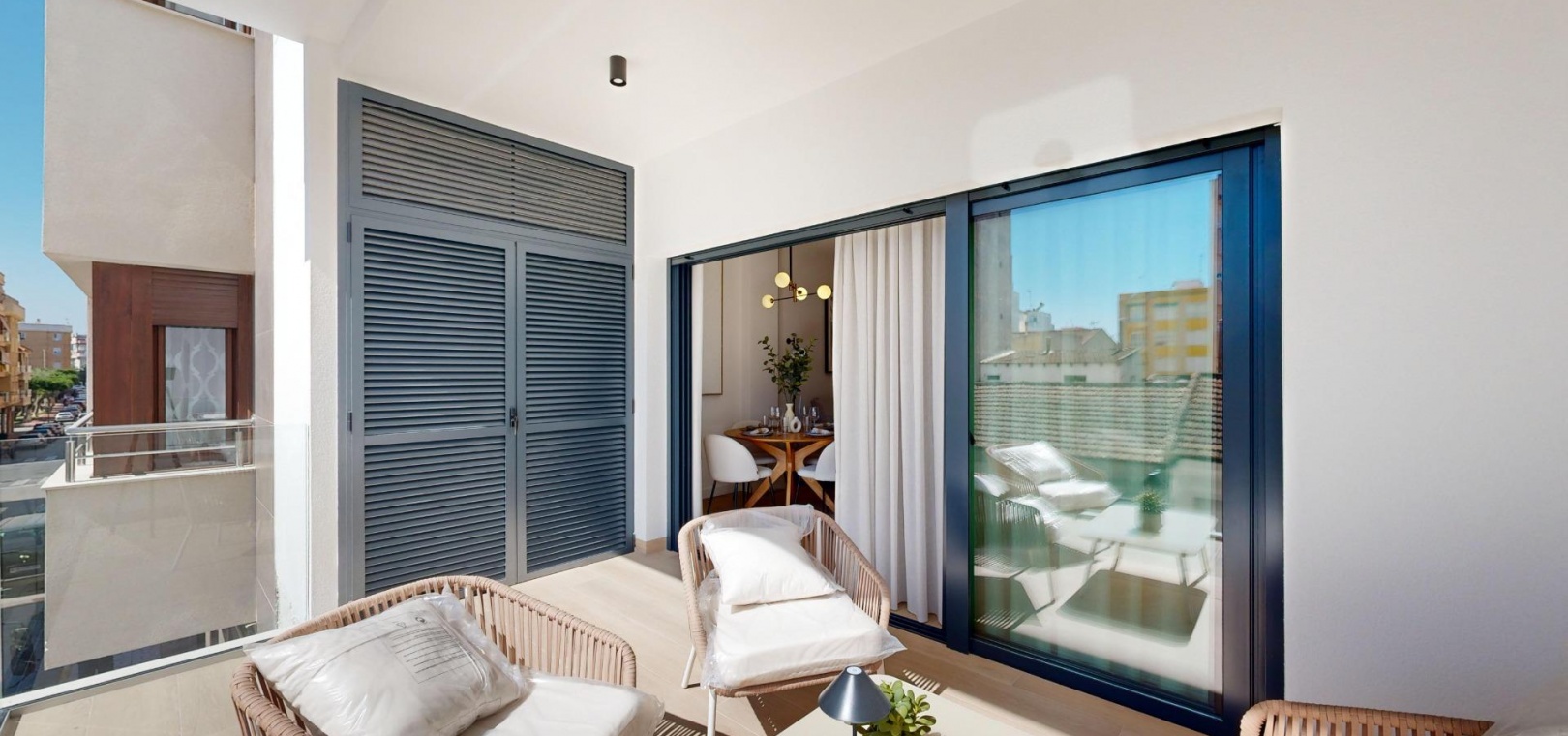 10 modern and exclusive apartments with 3 bedrooms and 2 bathrooms, open plan kitchen with the lounge area, fitted wardrobes and a large terrace.