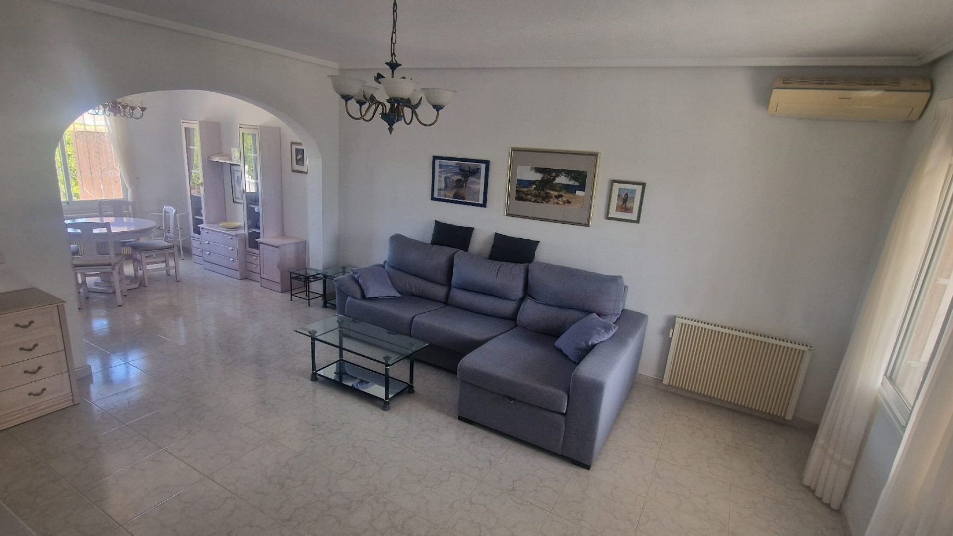 We are delighted to present this beautifully maintained 2-bedroom, 2-bathroom Lola-style townhouse located in the prestigious area of Doña Pepa, Ciudad Quesada. Positioned to offer picturesque views over the communal swimming pool, this home combines comfort, style, and an unbeatable location. The bright and spacious living area flows effortlessly into a fully equipped kitchen and dining space, ideal for entertaining or relaxing with family. Both bedrooms offer generous storage and natural light.