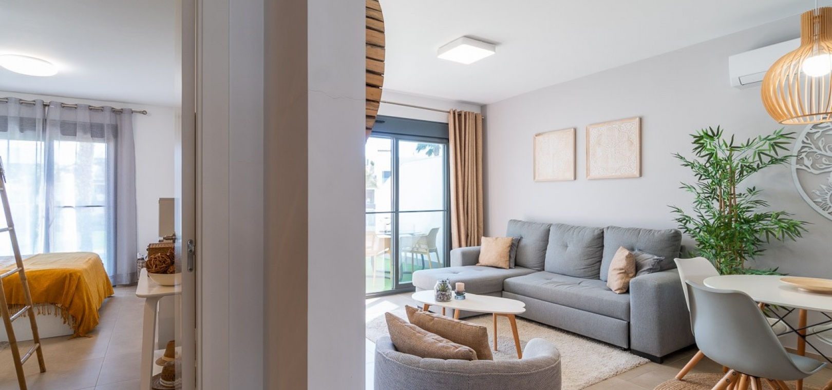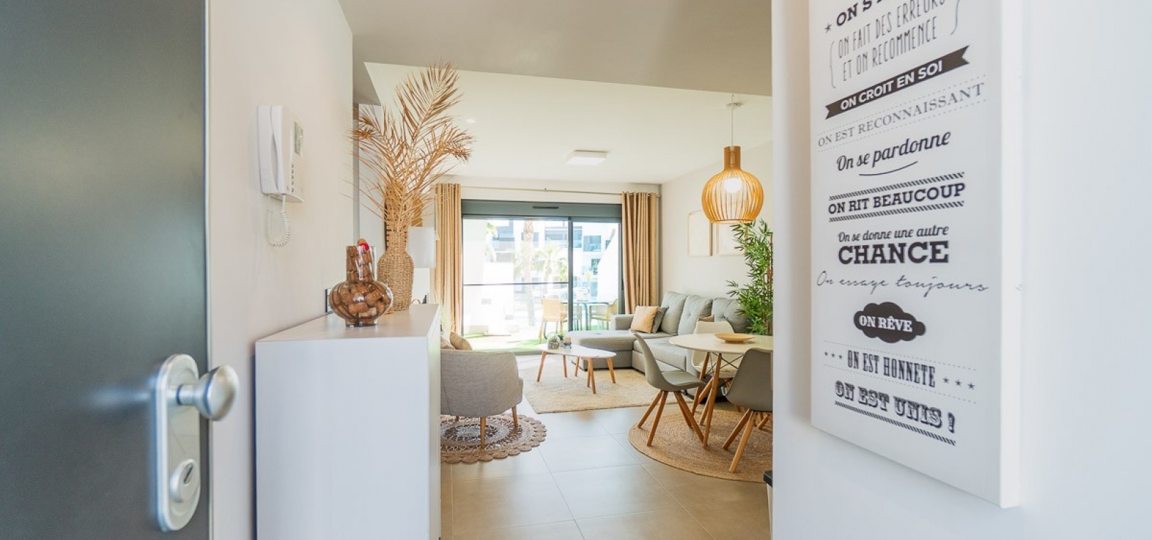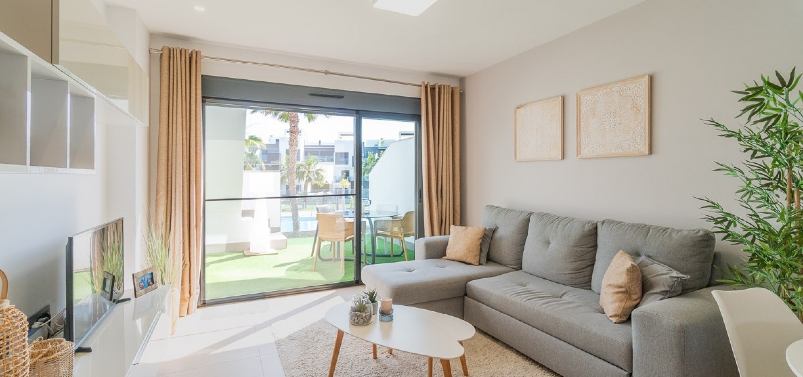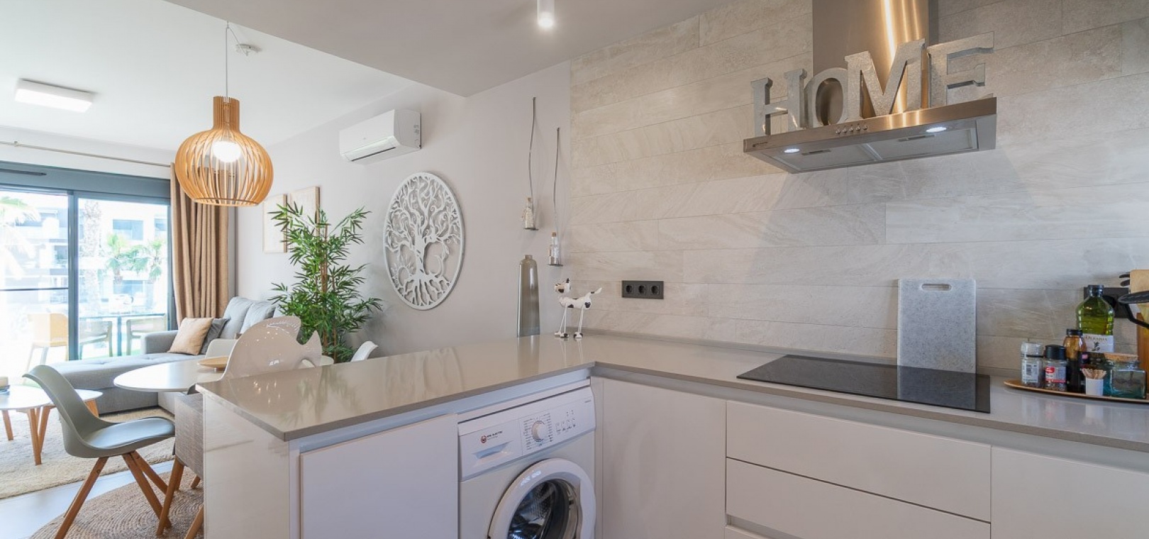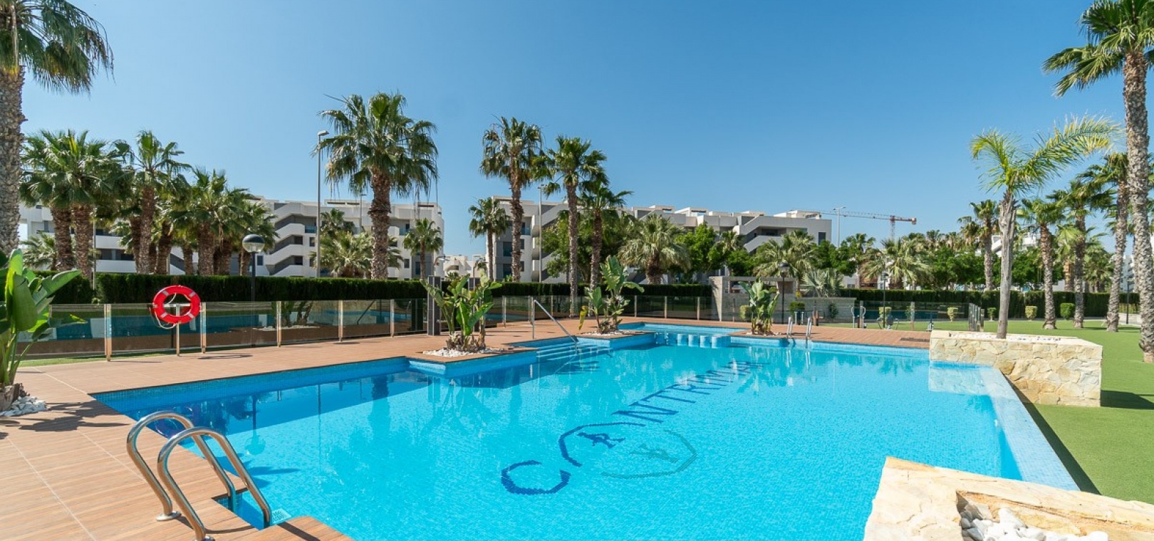This modern flat is located on the 1st floor of a modern building in the beautiful Oasis Beach residence in Guardamar (El Raso).