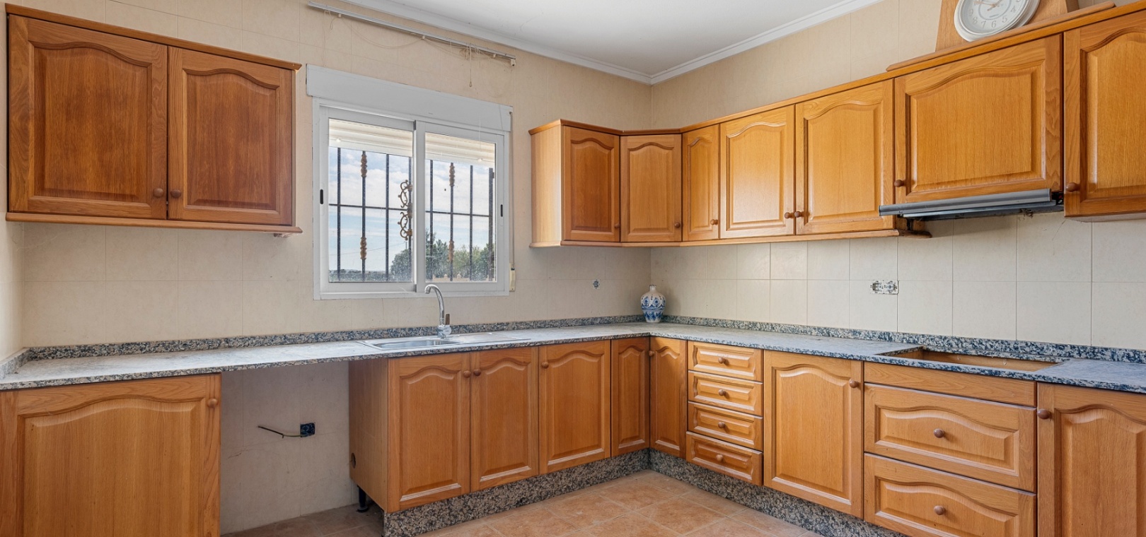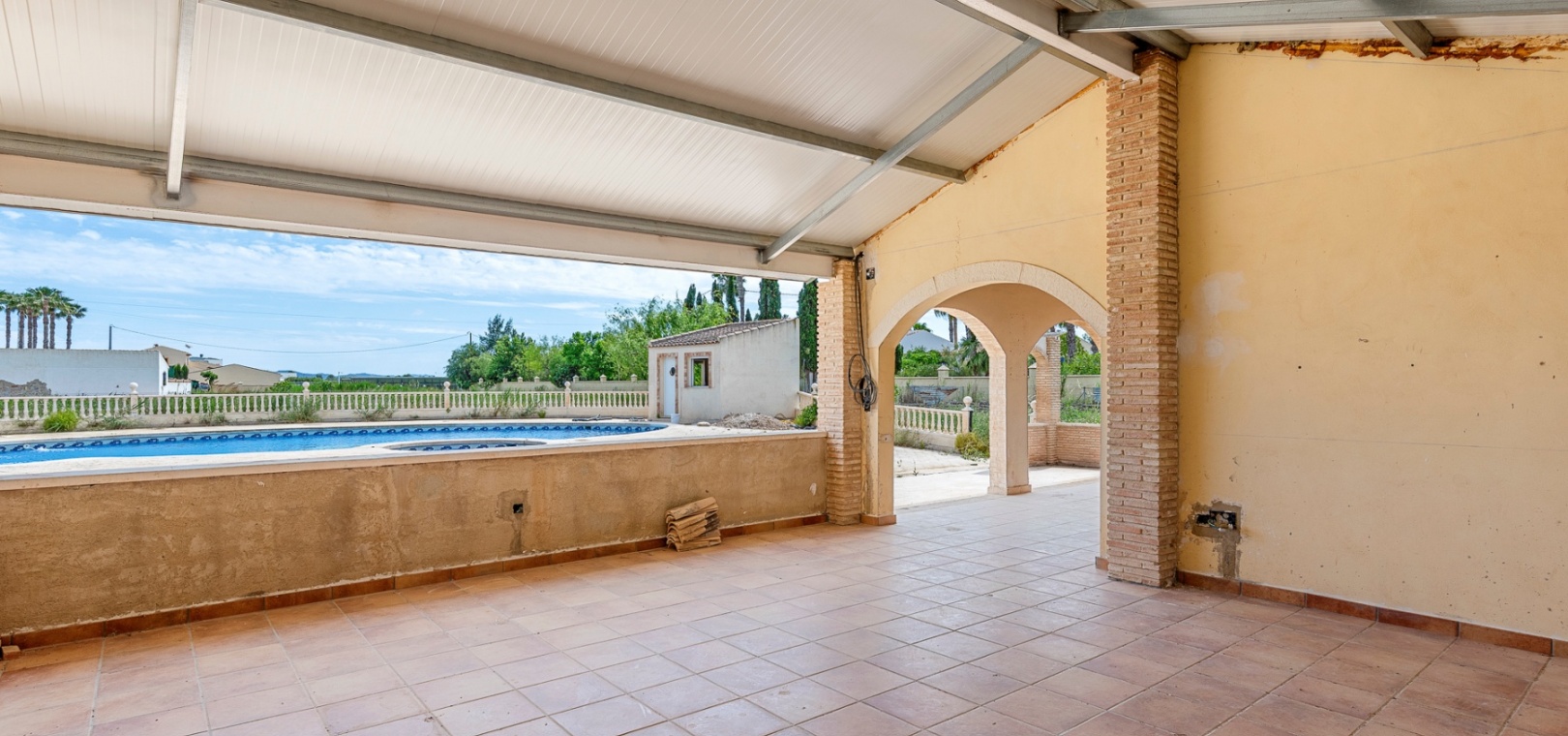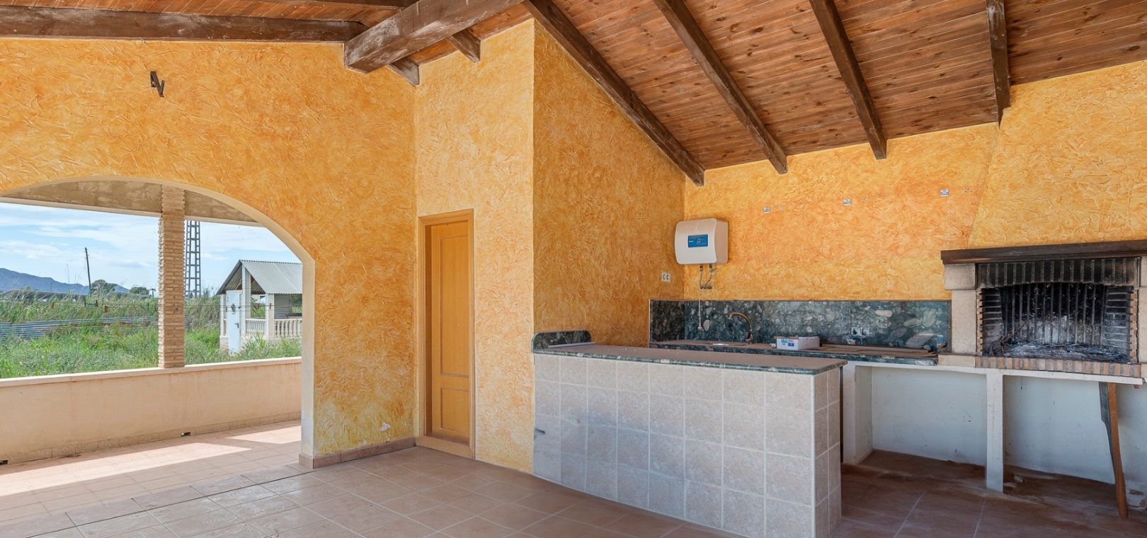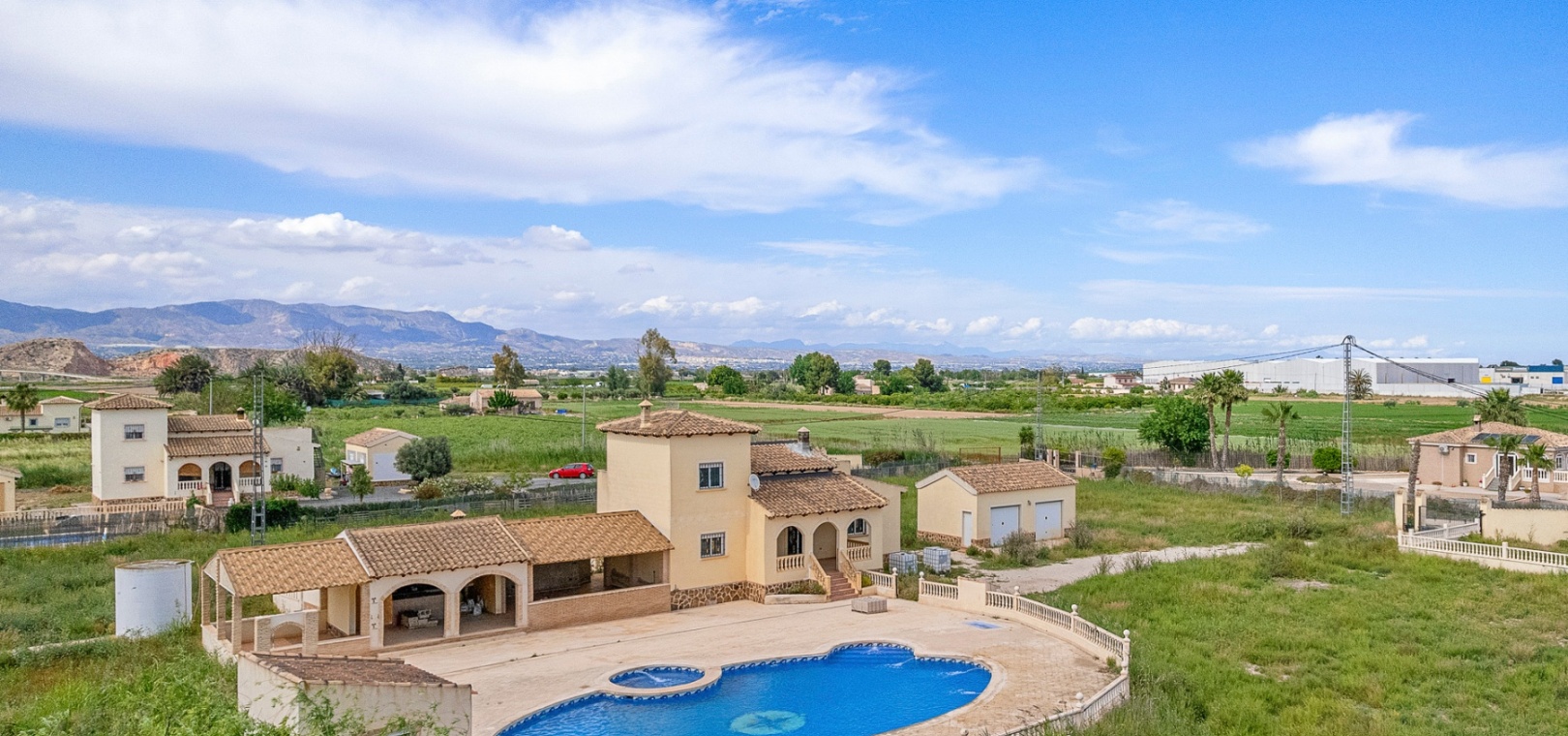 This detached property, set on a spacious 10,014 m² plot in the municipality of Callosa de Segura, offers approximately 225 m² of built area with a layout designed for comfort and outdoor living. The main house includes five bedrooms and four bathrooms, distributed between the ground floor and an upper level. The upstairs features a bedroom with an en-suite bathroom and access to a private solarium terrace with open views.