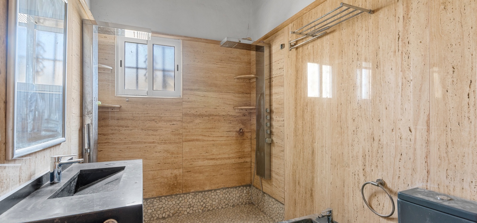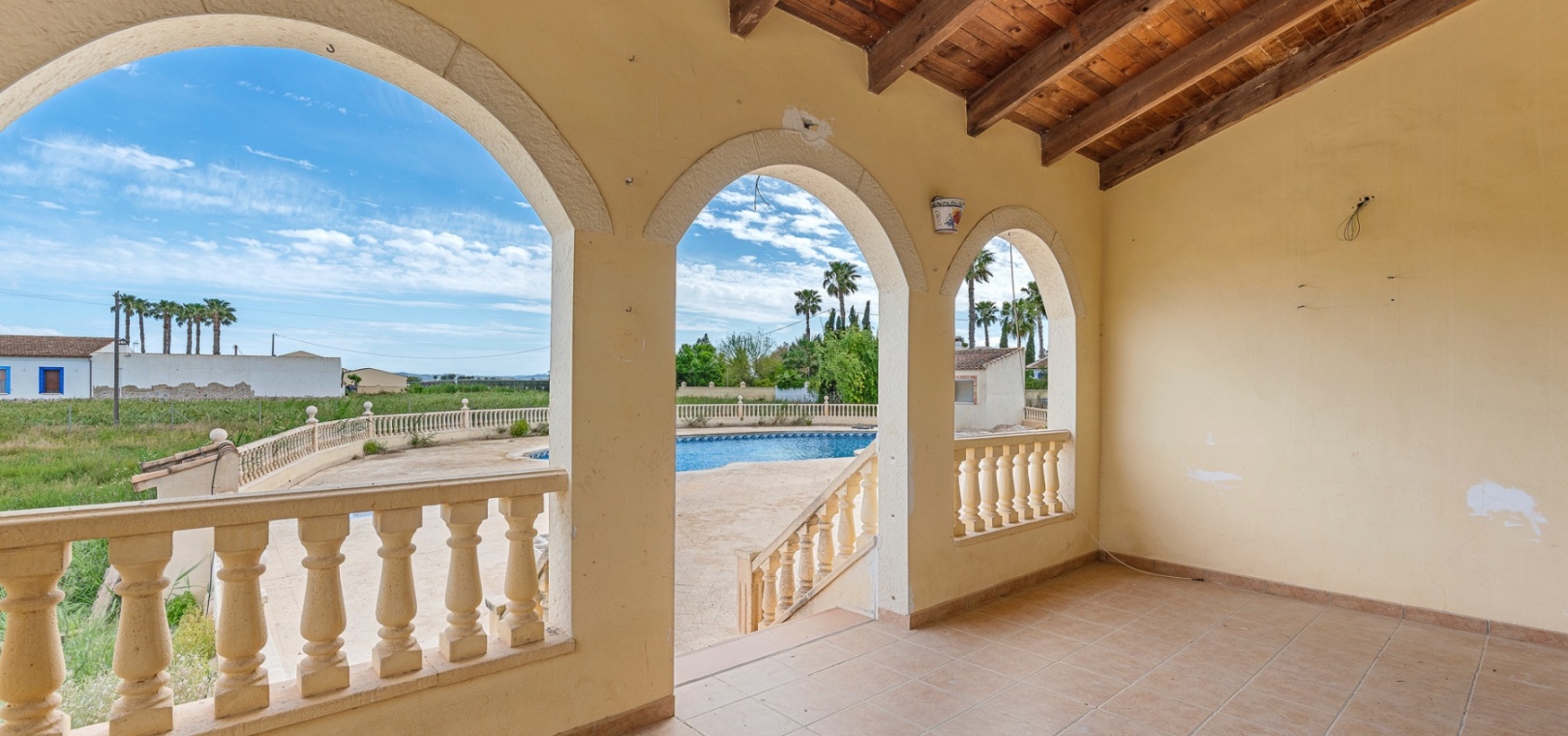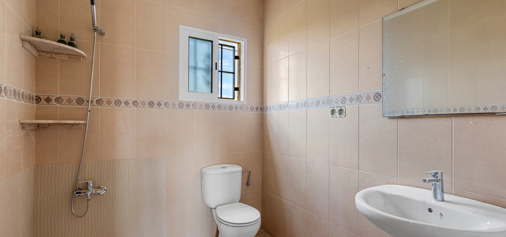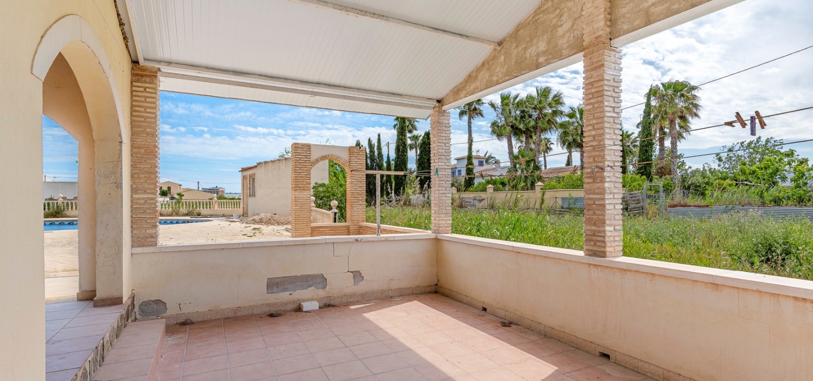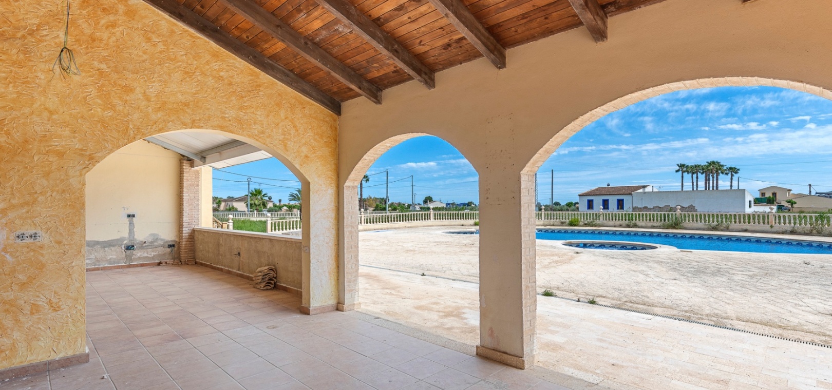 This detached property, set on a spacious 10,014 m² plot in the municipality of Callosa de Segura, offers approximately 225 m² of built area with a layout designed for comfort and outdoor living. The main house includes five bedrooms and four bathrooms, distributed between the ground floor and an upper level. The upstairs features a bedroom with an en-suite bathroom and access to a private solarium terrace with open views.