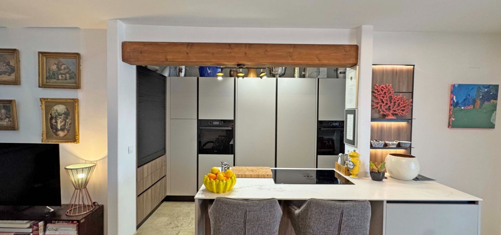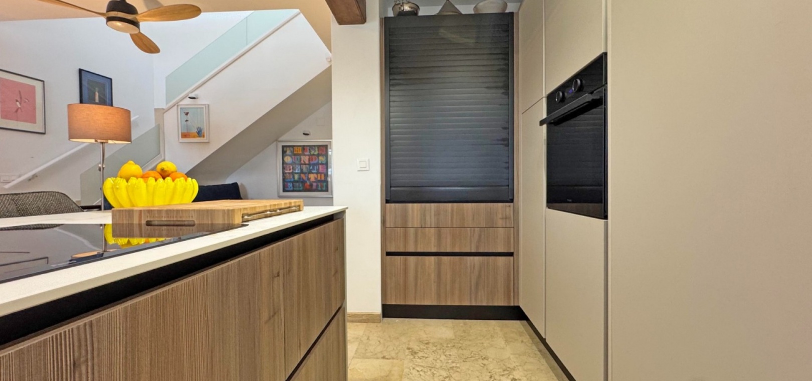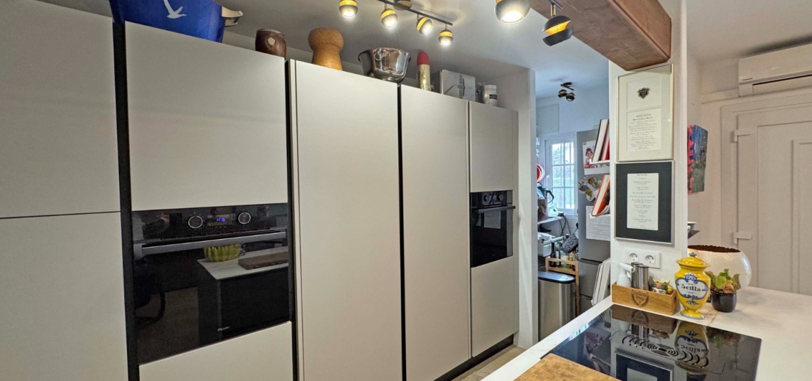 Spread over two levels, this elegant home boasts 3 spacious bedrooms and 2 modern bathrooms. On the ground floor, you’re welcomed by a bright and airy living area, two bedrooms, a sleek bathroom, and a truly high-end designer kitchen. This culinary space is a standout feature, equipped with double ovens, a new induction hob with integrated fan, hidden sink, and extensive custom cabinetry providing exceptional storage solutions — a dream for any home chef.