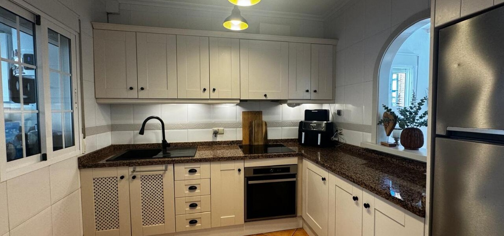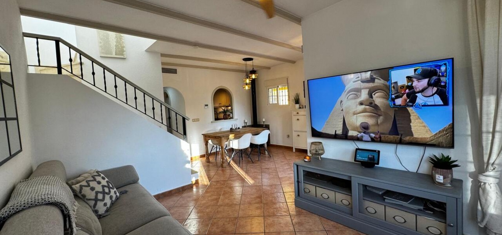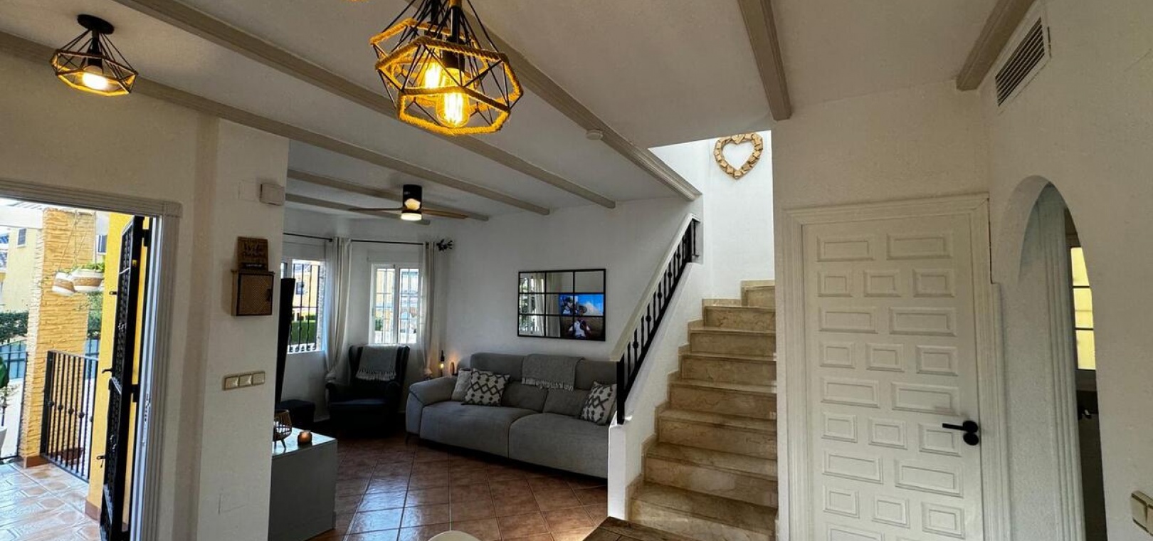 We are pleased to present to you this stunning detached villa situated in the highly desired Urbanisation of Lo Crispin, part of the Costa Blanca South Region. A very popular area due to its many amenities at such proximity such as a newly renovated commercial centre, the local Zoco market, Quesada, La Finca Golf Resort, the motorway for various different destinations...This property benefits with a large wrap-around garden, and a lovely tiled section at the back with a BBQ and chill out seating area. As you enter the property from the front porch, you are welcomed with the large lounge and dining area, benefiting with ducted A/C with both hot and cold settings to enjoy all year round. The separate fully fitted kitchen has a separate utility room equipped with essential appliances including a dishwasher and washing machine. This utility room conveniently leads to a large back terrace.On the ground floor, you’ll also find a double bedroom with its own shower room, featuring air conditioning and a fitted wardrobe.On the first floor there are two additional double bedrooms, each boasting private terraces, air conditioning, and fitted wardrobes, and sharing a stylish bathroom.The underbuild of the property is currently utilised as a salon, which can easily be used a large second living room, for the further two supplementary bedrooms, one single room, and one generously sized double bedroom with air conditioning, ceiling fan and fitted wardrobes with an additional shower room.You also have access to the beautiful, well maintained communal pool just around the corner.The furniture is negotiable. This property is less than a 5-minute drive to the 5-star La Finca Golf Course Resort, and only a 15-minute drive to some of the award-winning beaches in the area. You have Alicante airport, just a 35-minute drive.