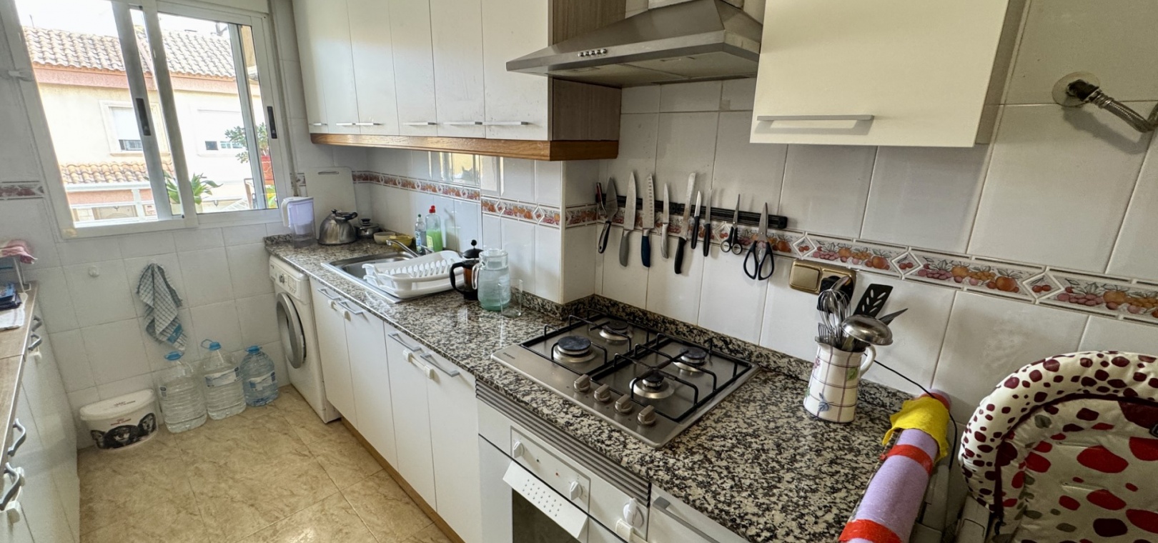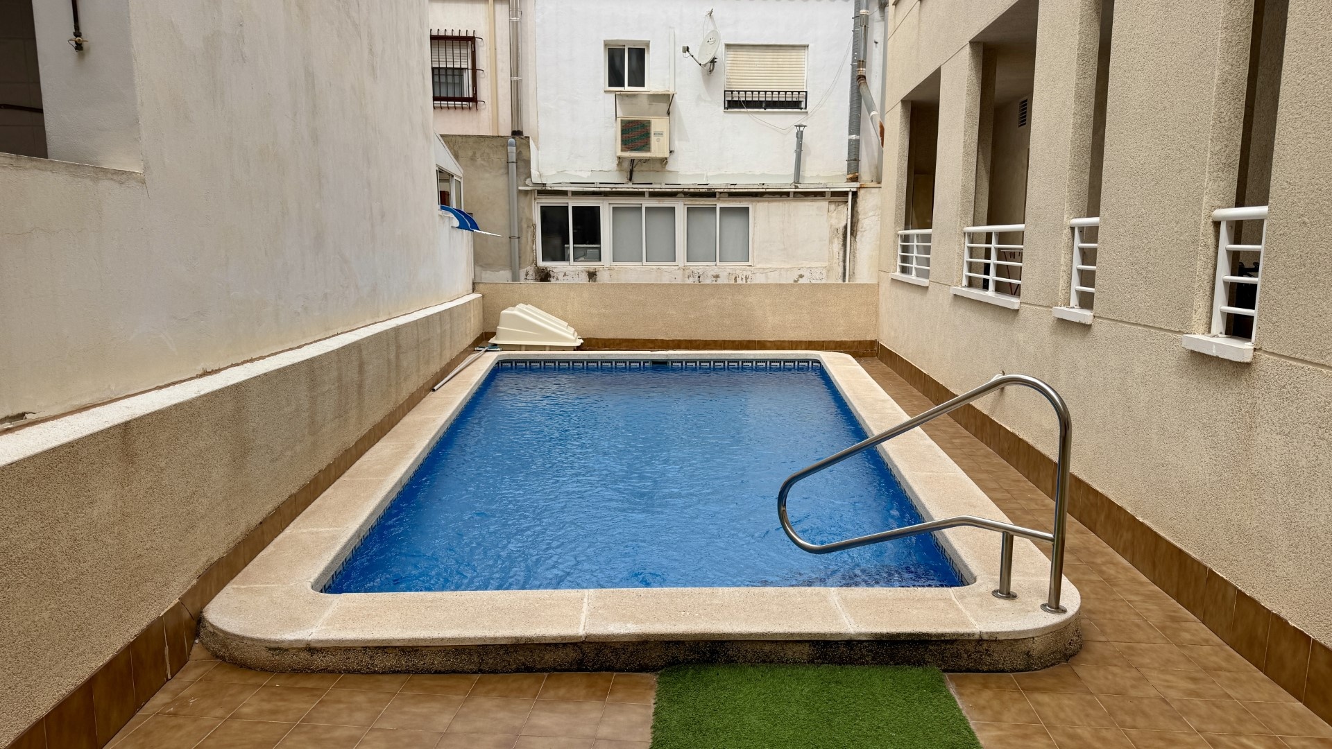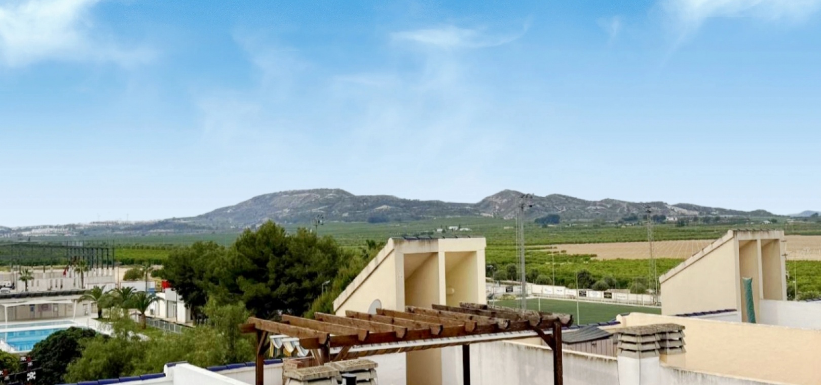 This two bedroom apartment is located on the first floor of a popular block close to the centre of Algorfa. The block is well looked after with lift access to all floors and a communal pool for residents to enjoy.Entering the apartment there are two double bedrooms, both with fitted wardrobes along with a full family bathroom. Along the corridor is a large living/dining area with window to the front, door onto a terrace. There's a separate dining kitchen with a range of wall and base units, built in oven, gas hob and extractor. Spaces for a dishwasher and fridge freezer. On the roof there is a communal solarium, with plenty of space to relax, sunbathe and take in the views!Within a few minutes walk of the apartment there are many bars, restaurants and smaller independent shops along with the main square with play park. The larger towns of Almoradi, Benijofar and Ciudad Quesada are around a ten minute drive away where there are a vast range of day to day amenities, large supermarkets, bars and restaurants.The nearest beaches can be found at Guardamar del Segura, a 15 minute drive away or use the river cycle track where it takes 40 minutes. Alicante airport and the city can be reached in around 40 minutes.