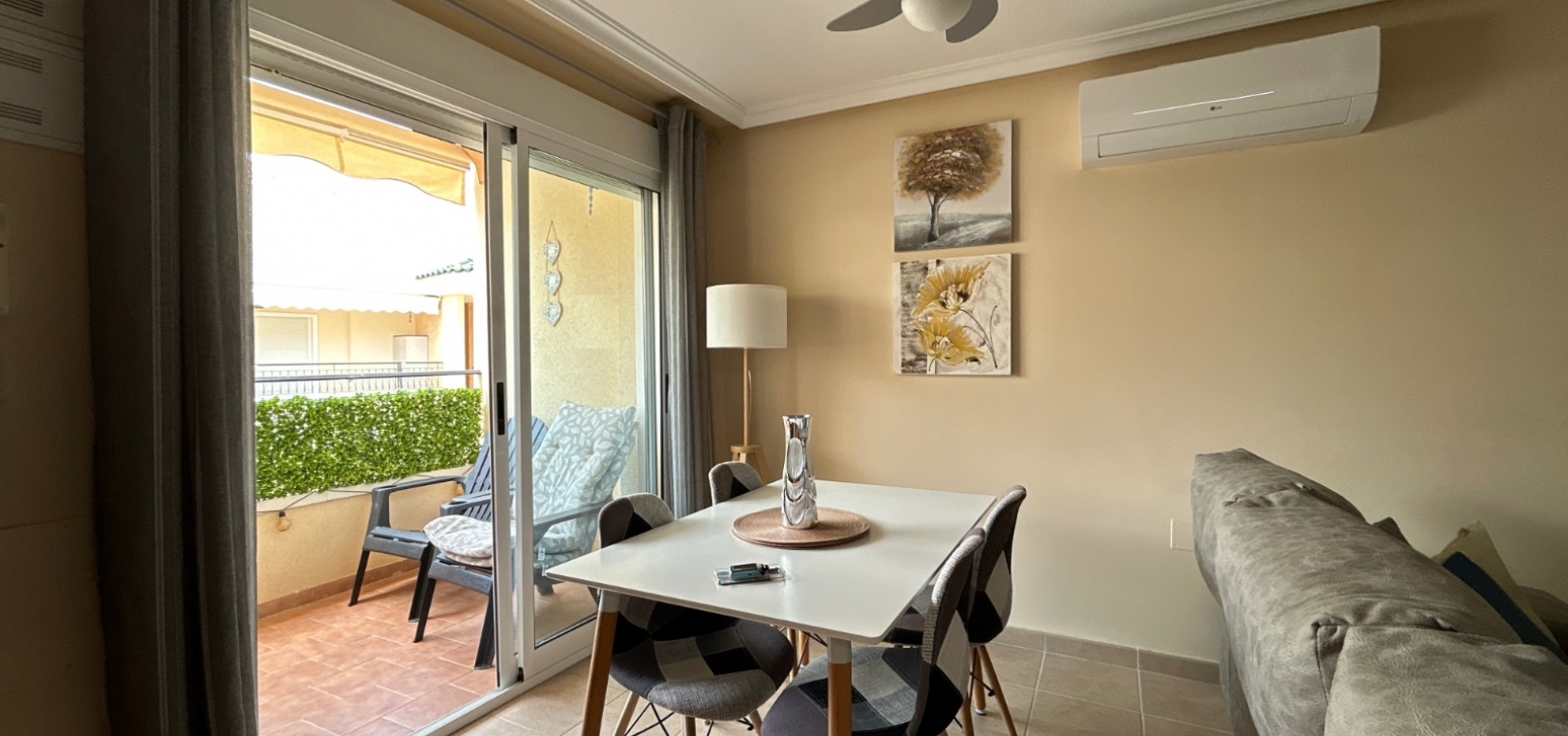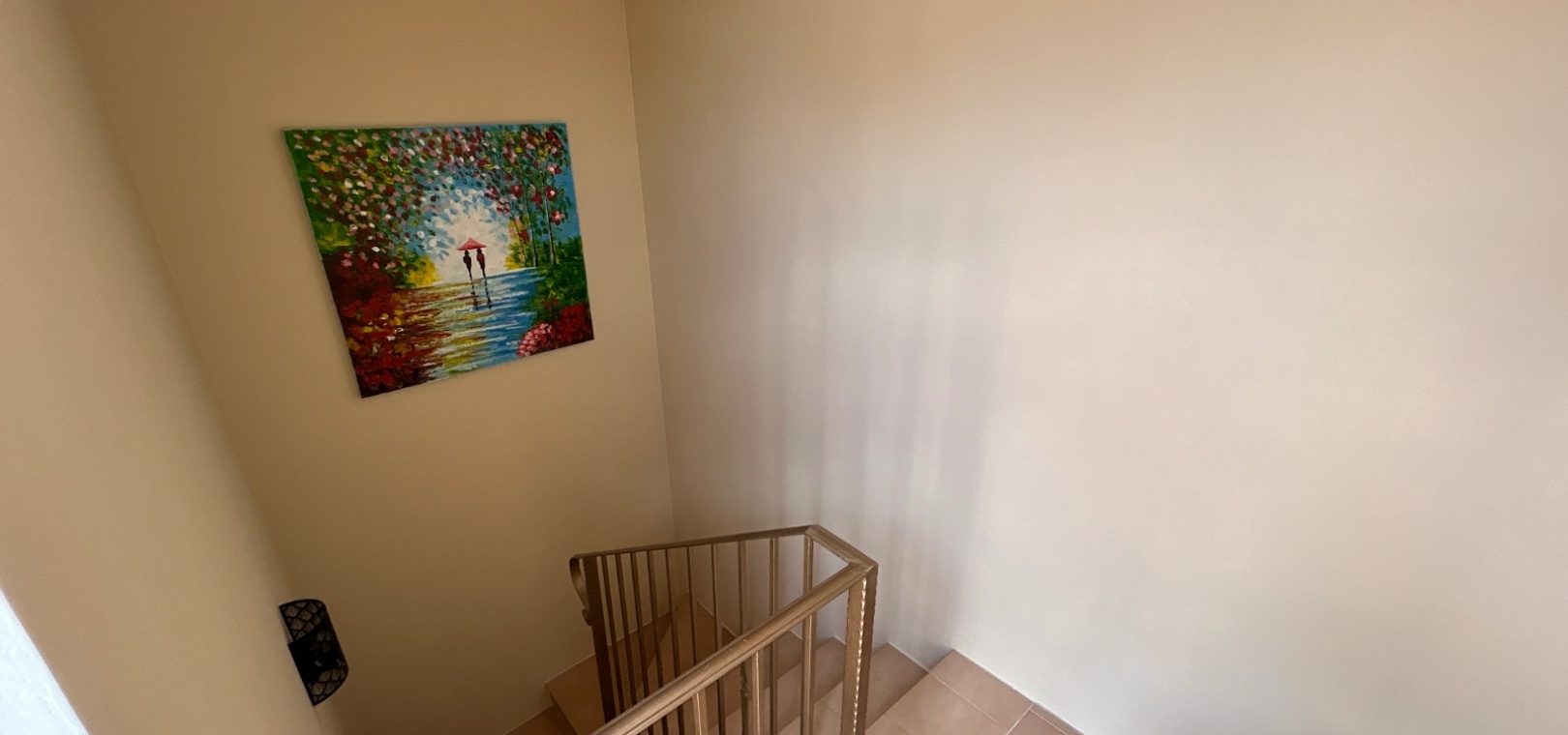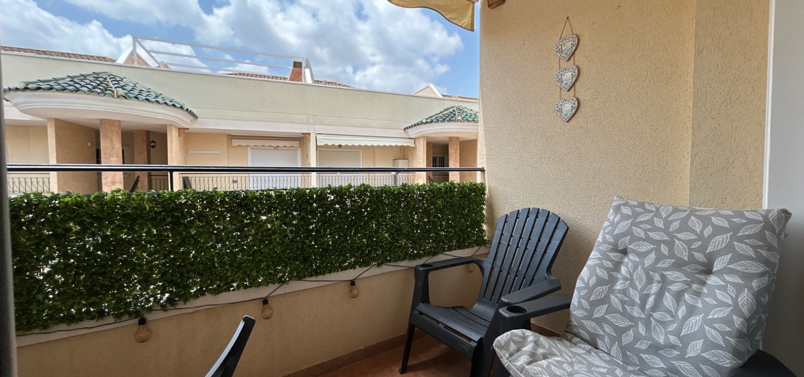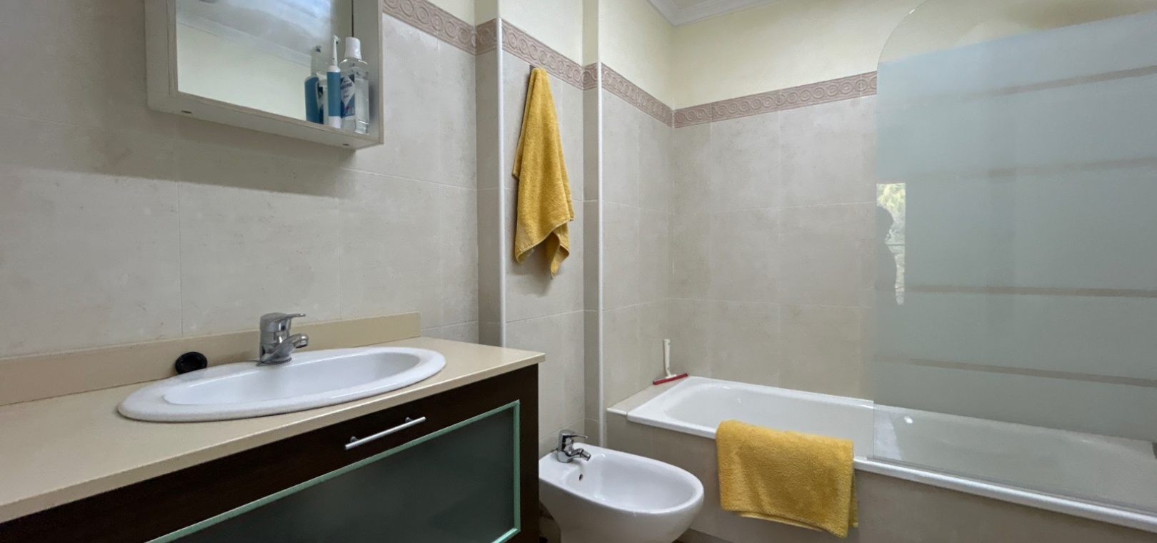 The master bedroom features built-in wardrobes, an en-suite bathroom, and its own small balcony. The second bedroom is a simple and comfortable guest room, and there’s an additional bathroom for guests.