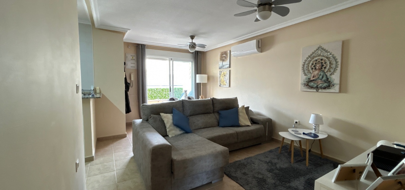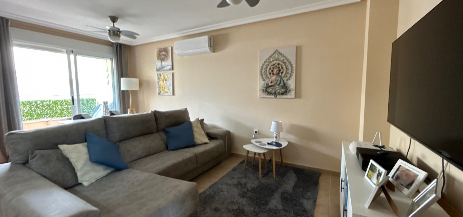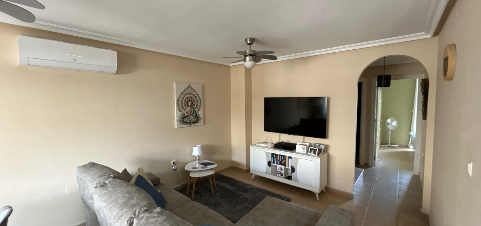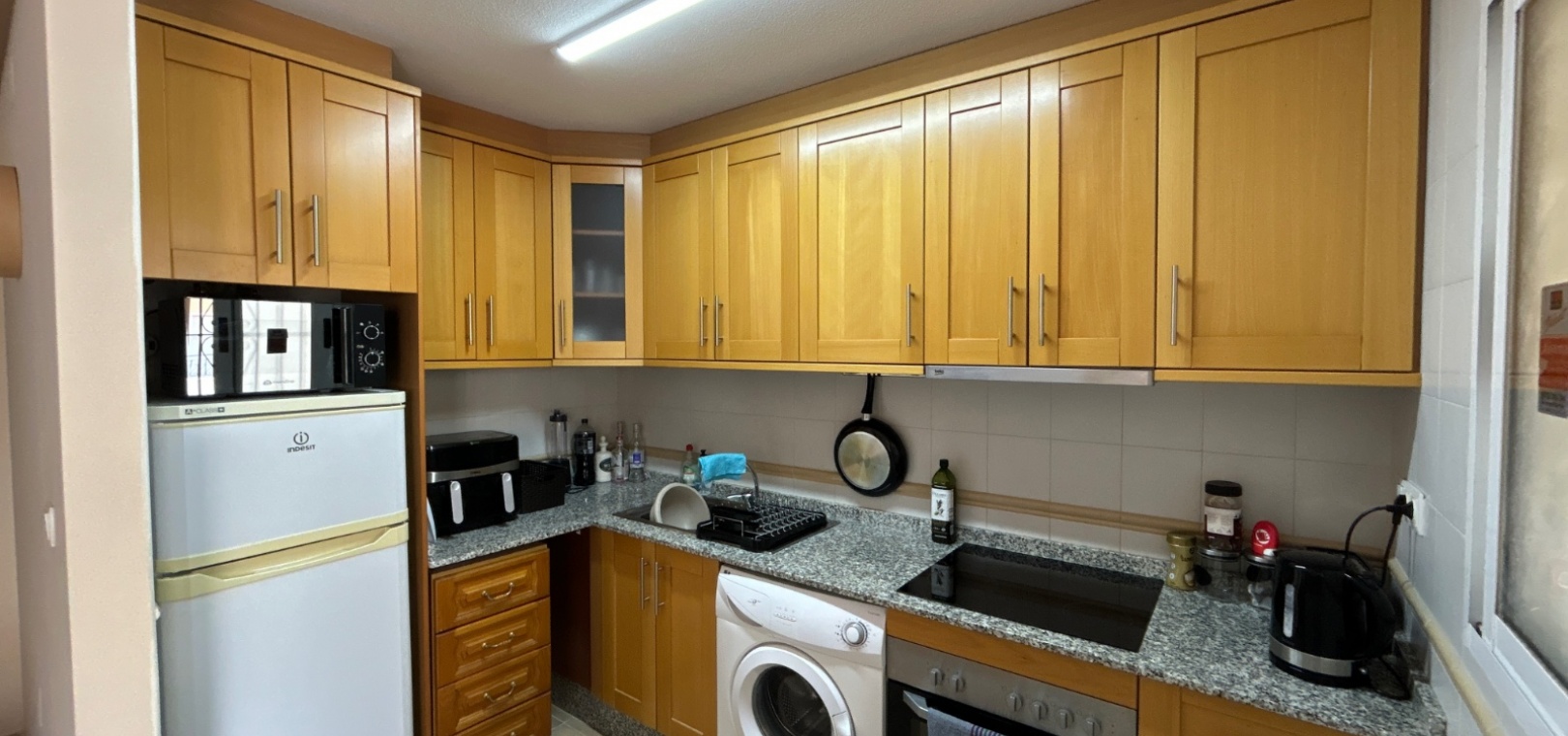 The master bedroom features built-in wardrobes, an en-suite bathroom, and its own small balcony. The second bedroom is a simple and comfortable guest room, and there’s an additional bathroom for guests.