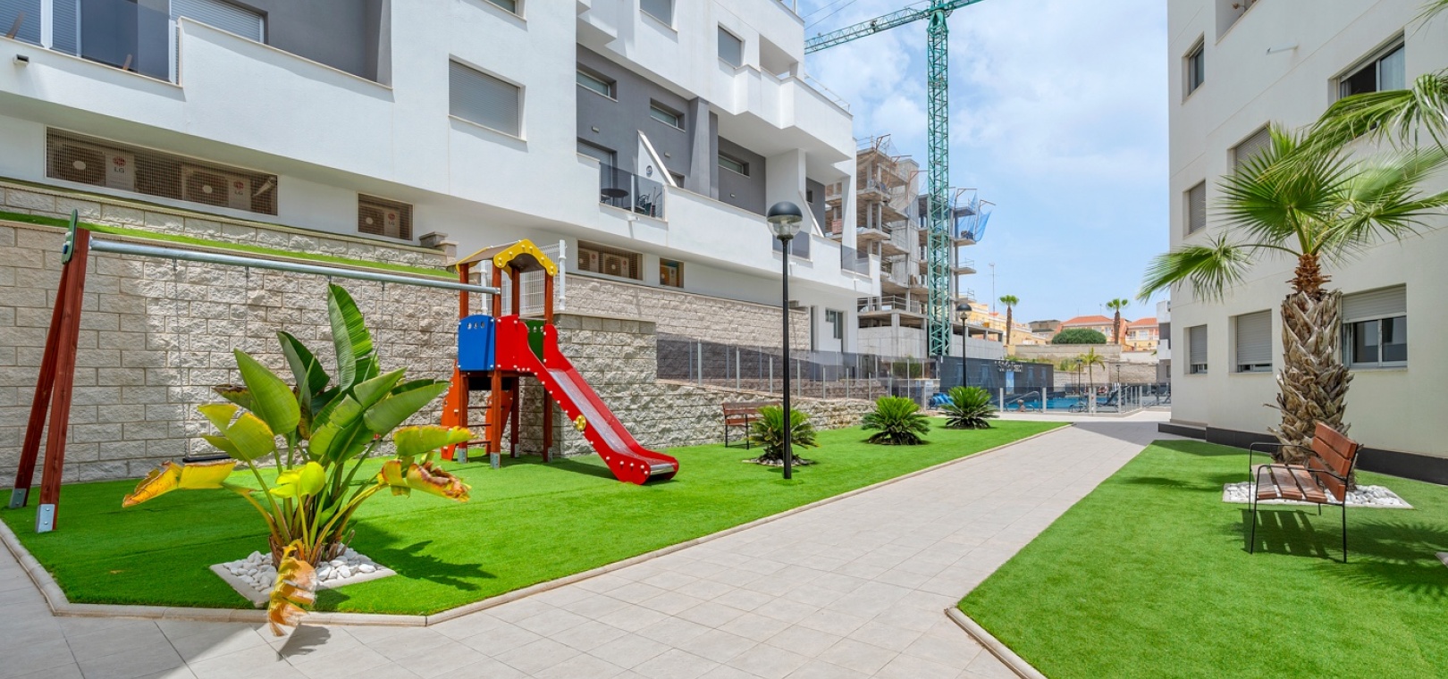 The residence offers excellent facilities, including a beautifully landscaped communal swimming pool with jacuzzi, a playground, green areas, and a modern co-working space. Here you can enjoy comfort, relaxation, and practical amenities — an ideal and affordable holiday home.