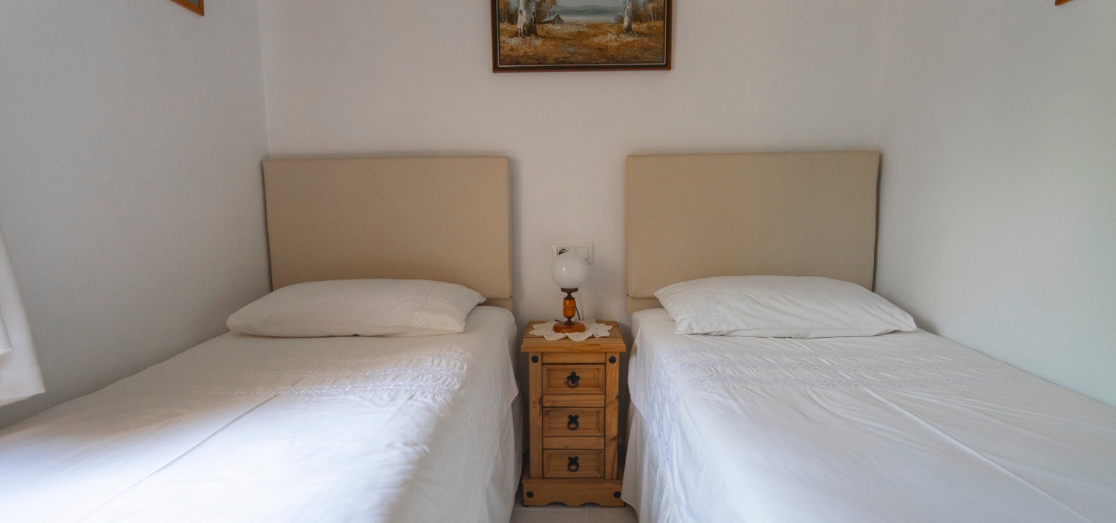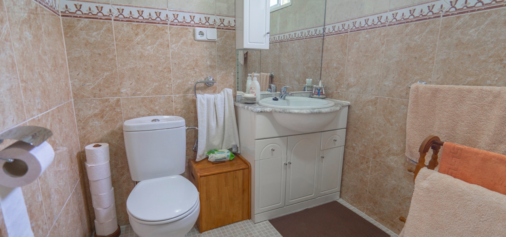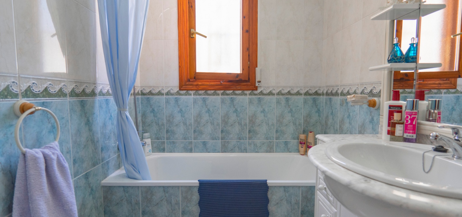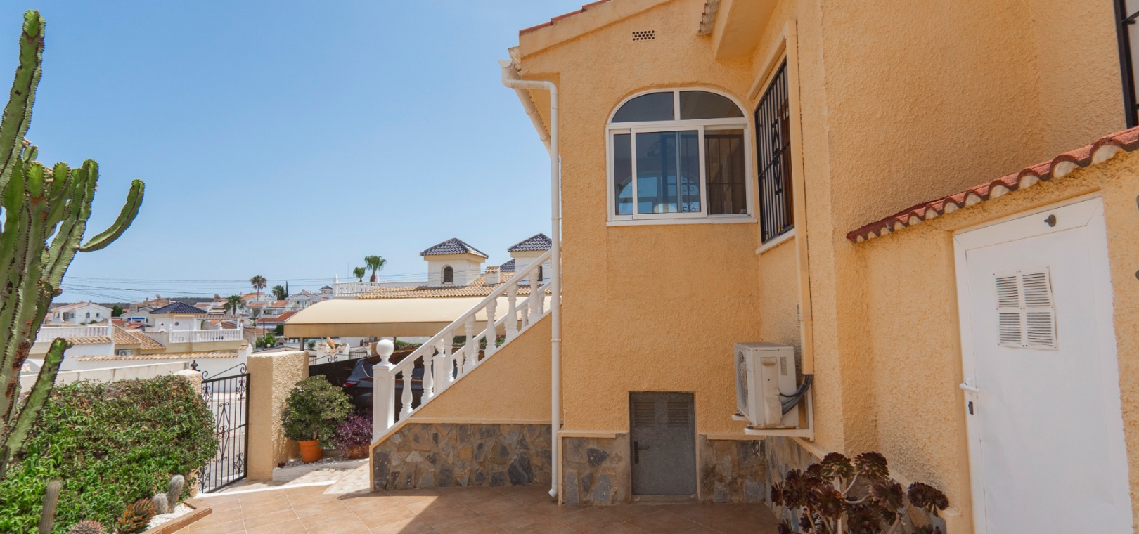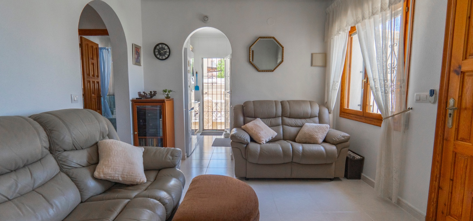 Here we have a beautiful detached Villa boasting 2 bright double bedrooms and 2 family bathrooms one of which is en-suite to the master bedroom. There is a good size bright lounge/ diner plus a glazed in terrace, and a galley kitchen with its own door to access the garden area. There is a spacious garden are with plenty of room to relax or entertain freiends and family. There are two storage areas and a covered driveway to keep your car cool and out of the Sun. You will also find a small roof solarium. The large communual pool is a very short walk away and amenities the golf course and water park are also a short distance away. The blue flag beaches of Guardamar are only a 15 minute drive away. This type of property does not come on the market very often so an early viewing is highly reccomended.