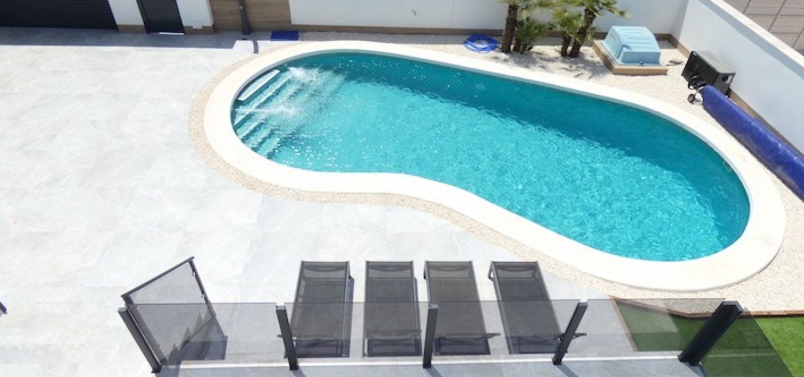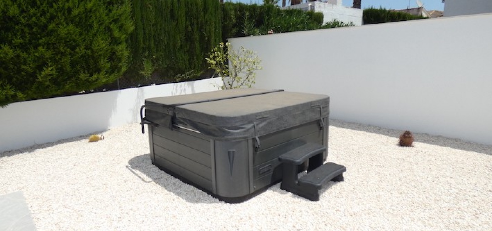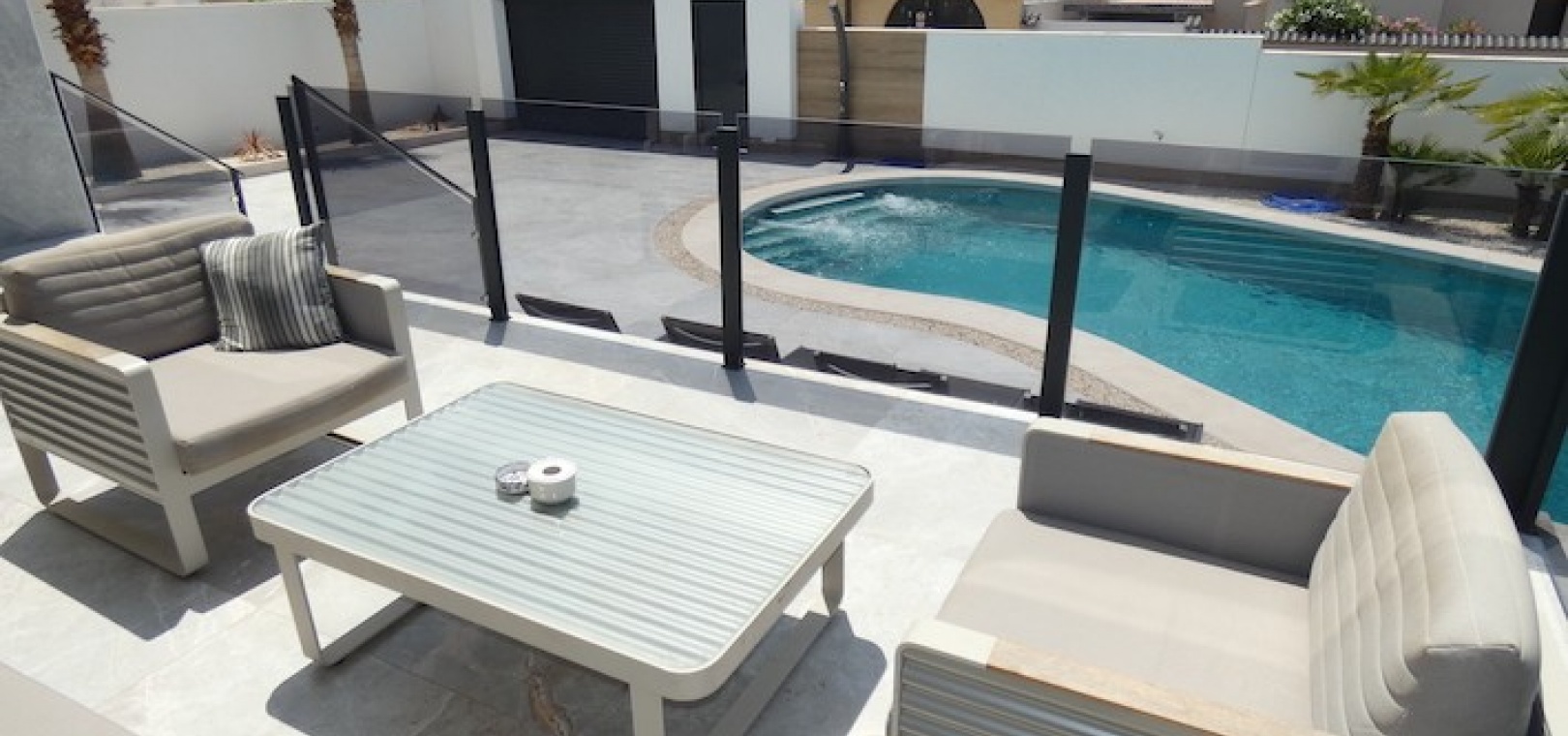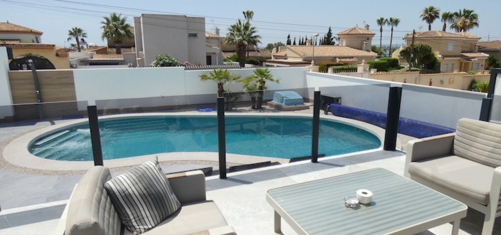 Outside, there is room for off-road parking, if required, numerous seating area´s, artificial grass, storage, a jacuzzi and also the large swimming pool.