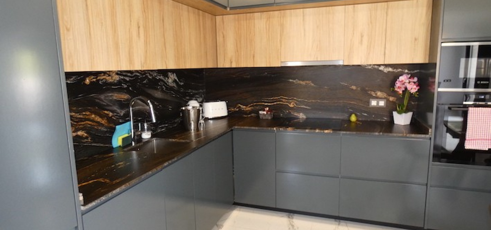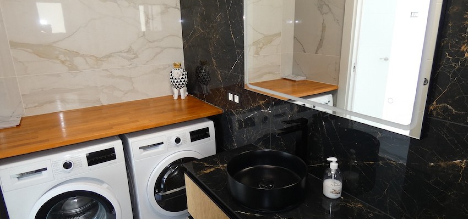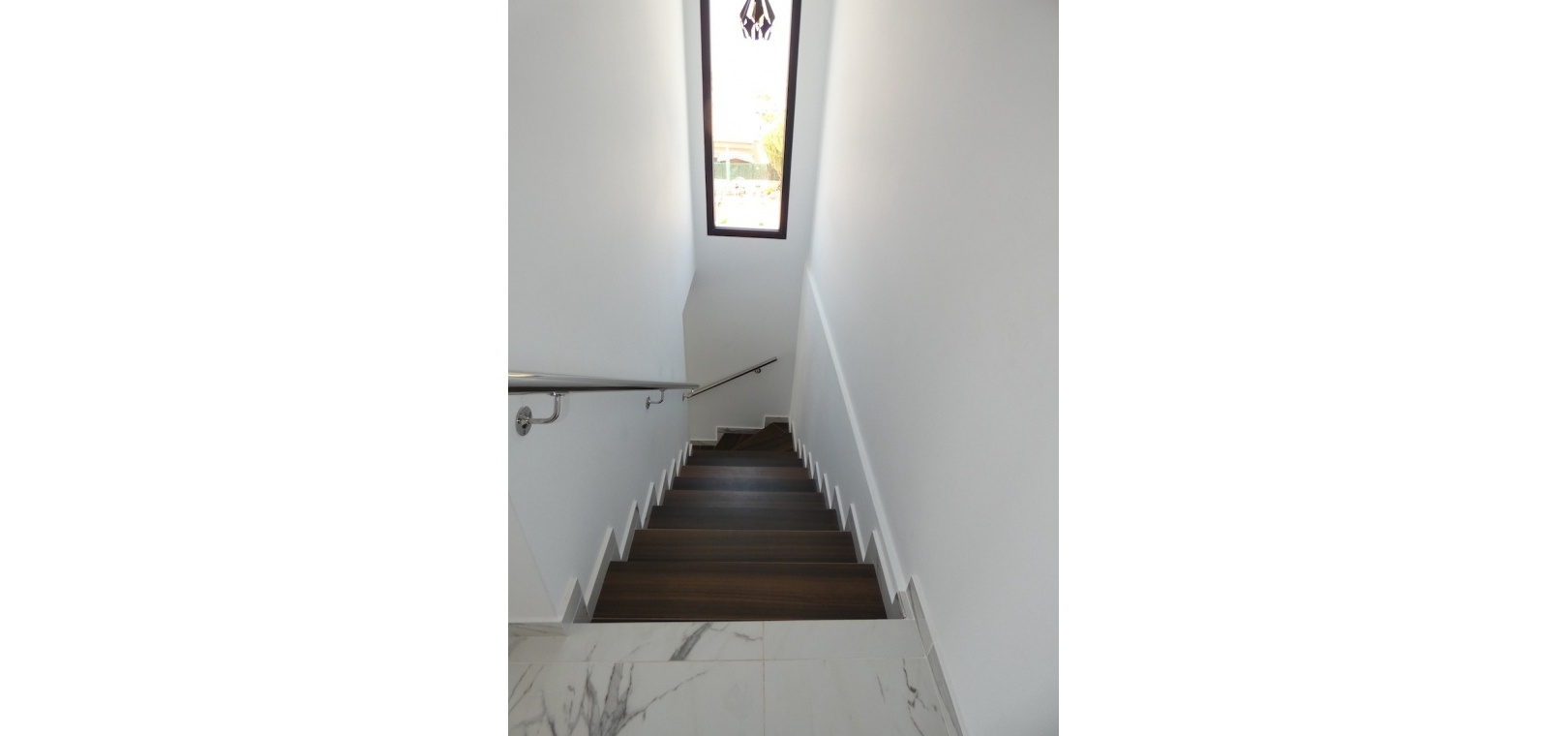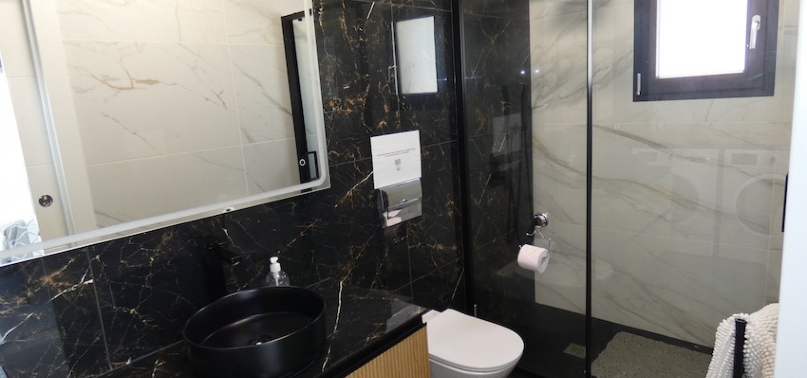 Sitting on a large plot of 510m2, the villa, which is spread over two floors has a good sized front terrace which leads into the property. On the ground floor is the living area, american style open plan kitchen and dining area, two bedrooms and two bathrooms (one of which is en-suite. Upstairs, there are a further two bedrooms and a family bathroom. Both bedrooms have access to another large terrace, which overlooks the swimming pool. There is air-conditioning in all the rooms and has been finished to an extremely high standard throughout.