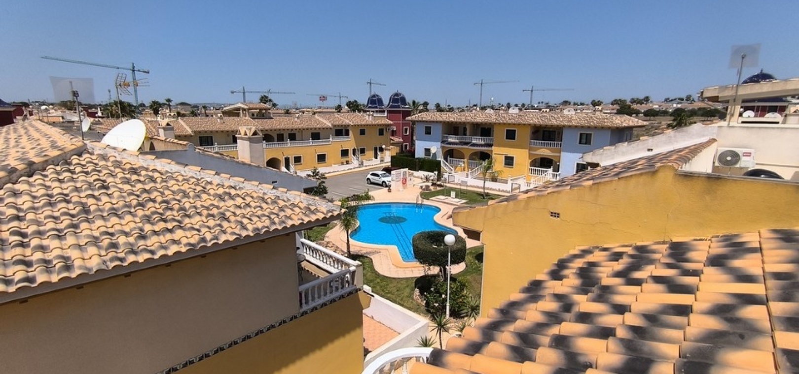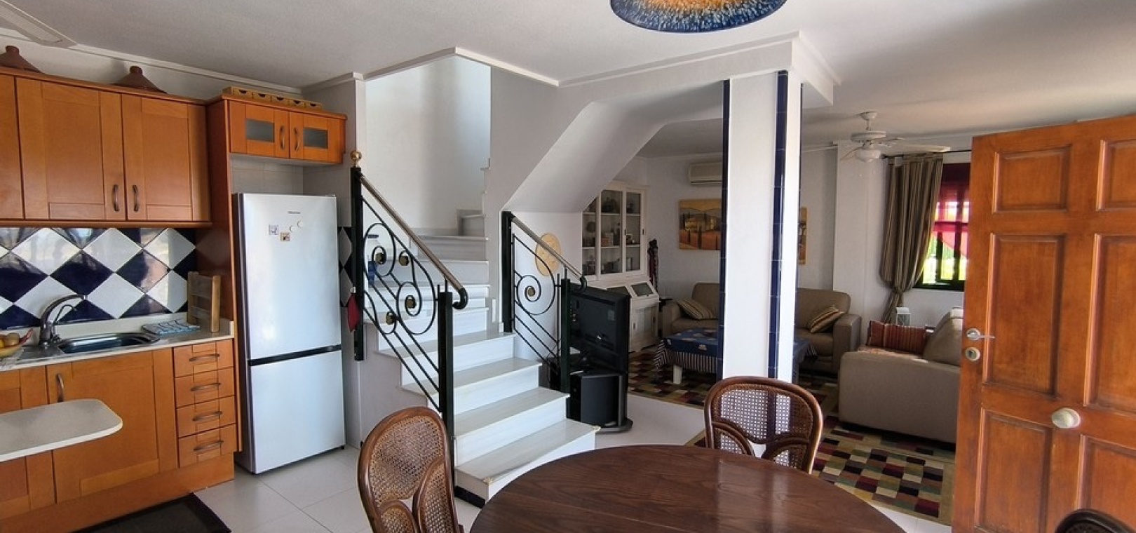 Introducing a very distinctive 3 bedroom, 2 bathroom end townhouse in the highly sought-after area of Doña Pepa, Ciudad Quesada. South-facing and in excellent condition, this charming home offers a unique layout and plenty of space, inside and out.