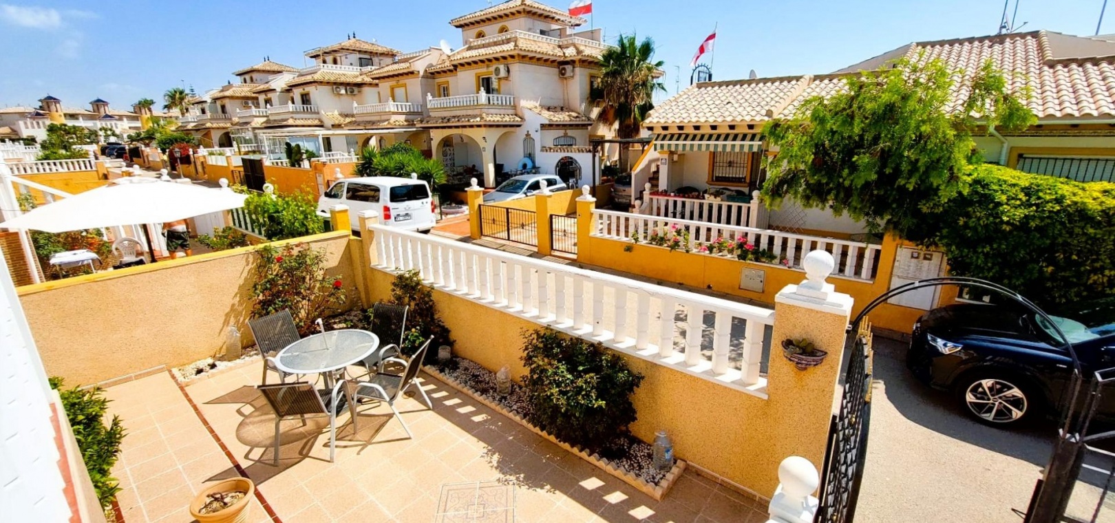 Large patio with parking on the same plot