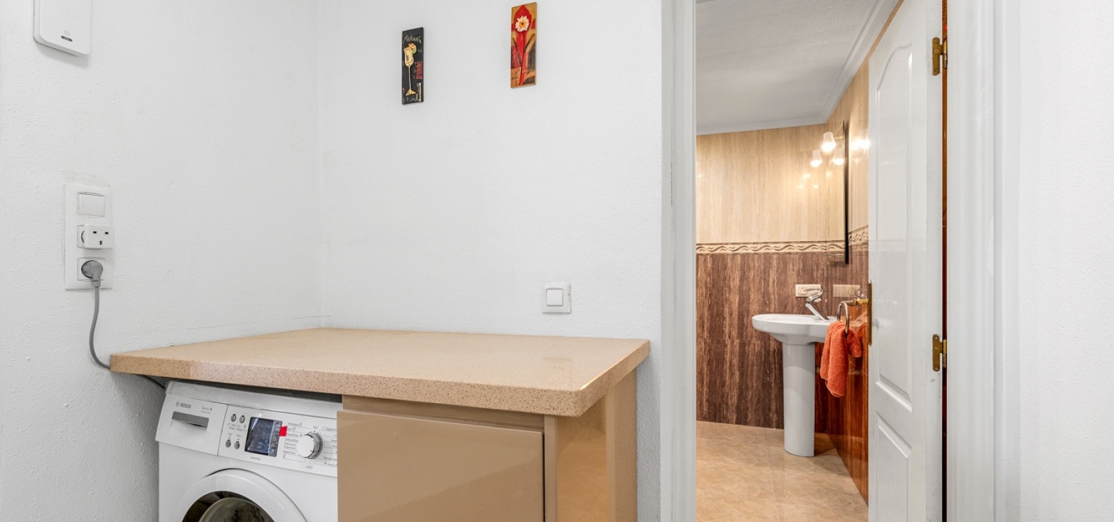 Semi-independent with three bedrooms, two bathrooms, kitchen, living-dining area, laundry room, and covered terrace