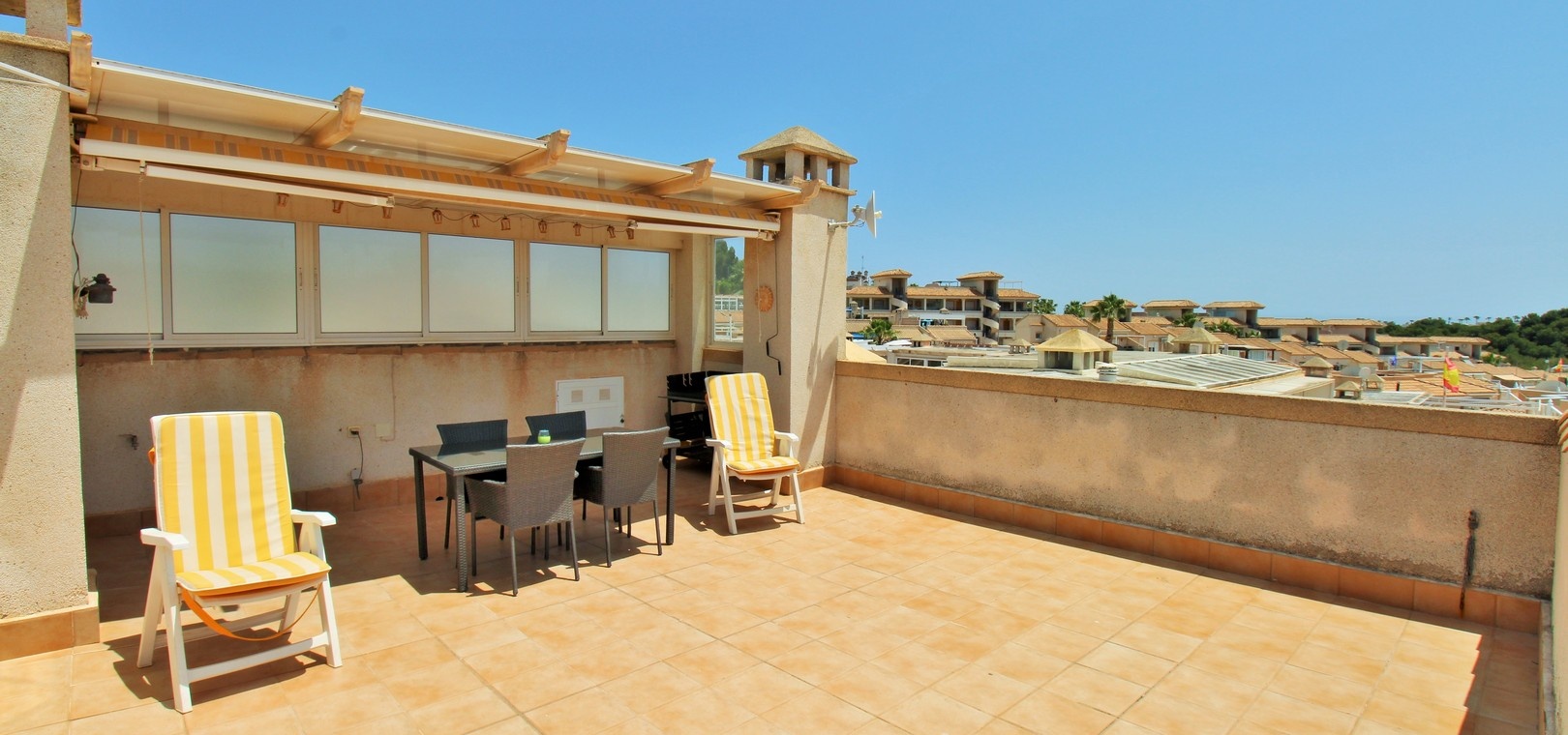 Perfect for sun lovers, the fully tiled front garden is low-maintenance and south-west facing, while a generous 46m² private roof solarium—accessed via an external staircase—offers open views over the surrounding area, ideal for relaxing or entertaining.