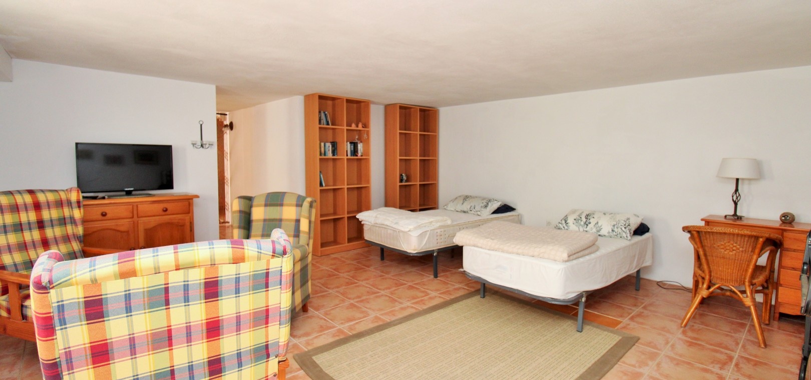 Adding versatility, the property also features a substantial underbuild including a walk-in shower room, storage area, and a spacious multi-purpose room currently used as a third guest bedroom.
