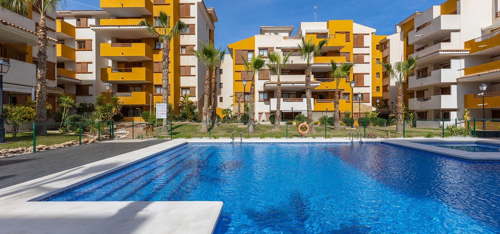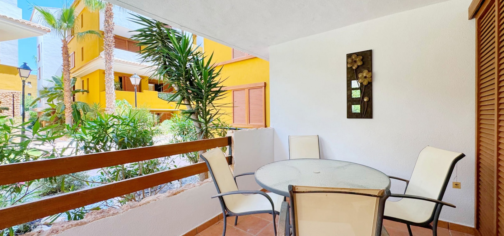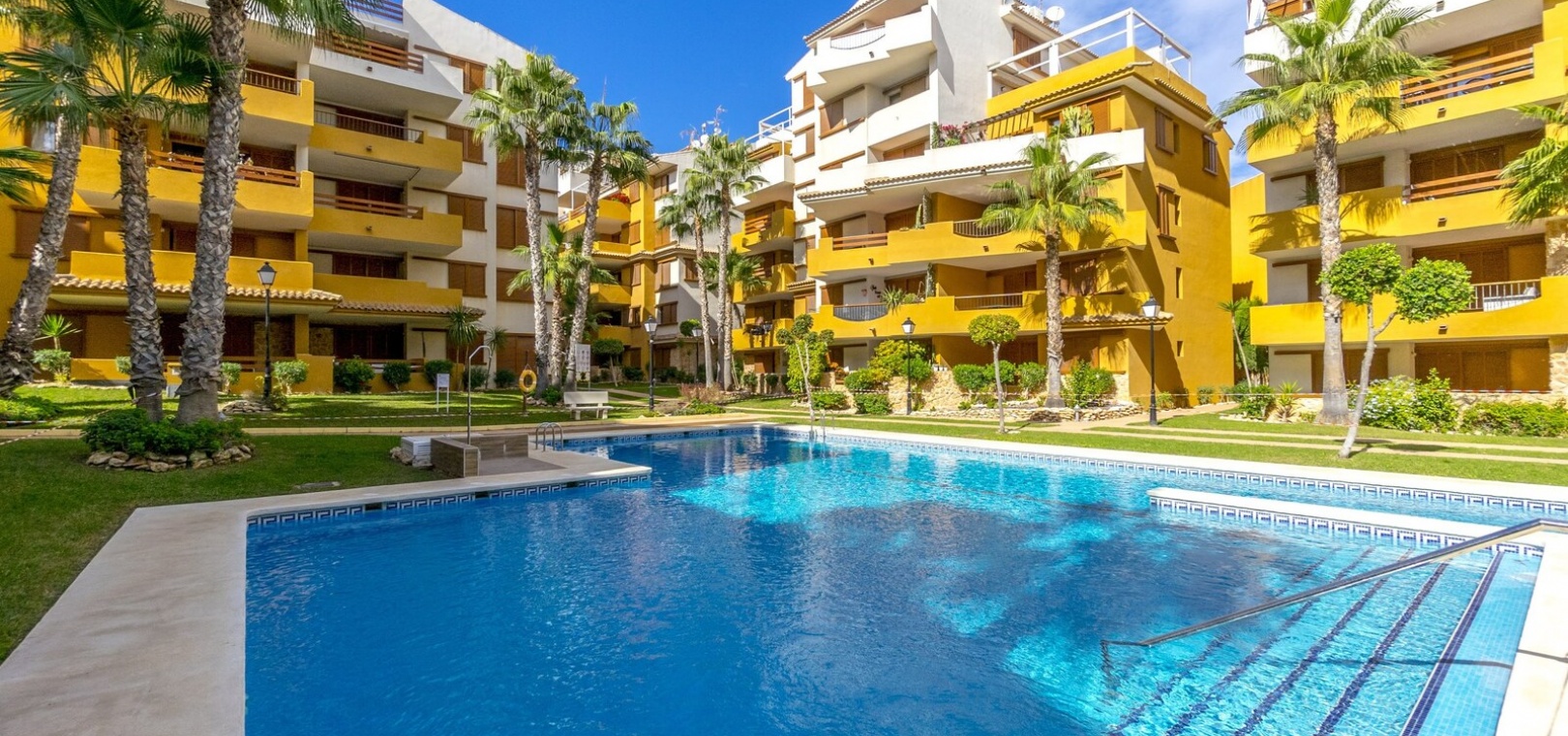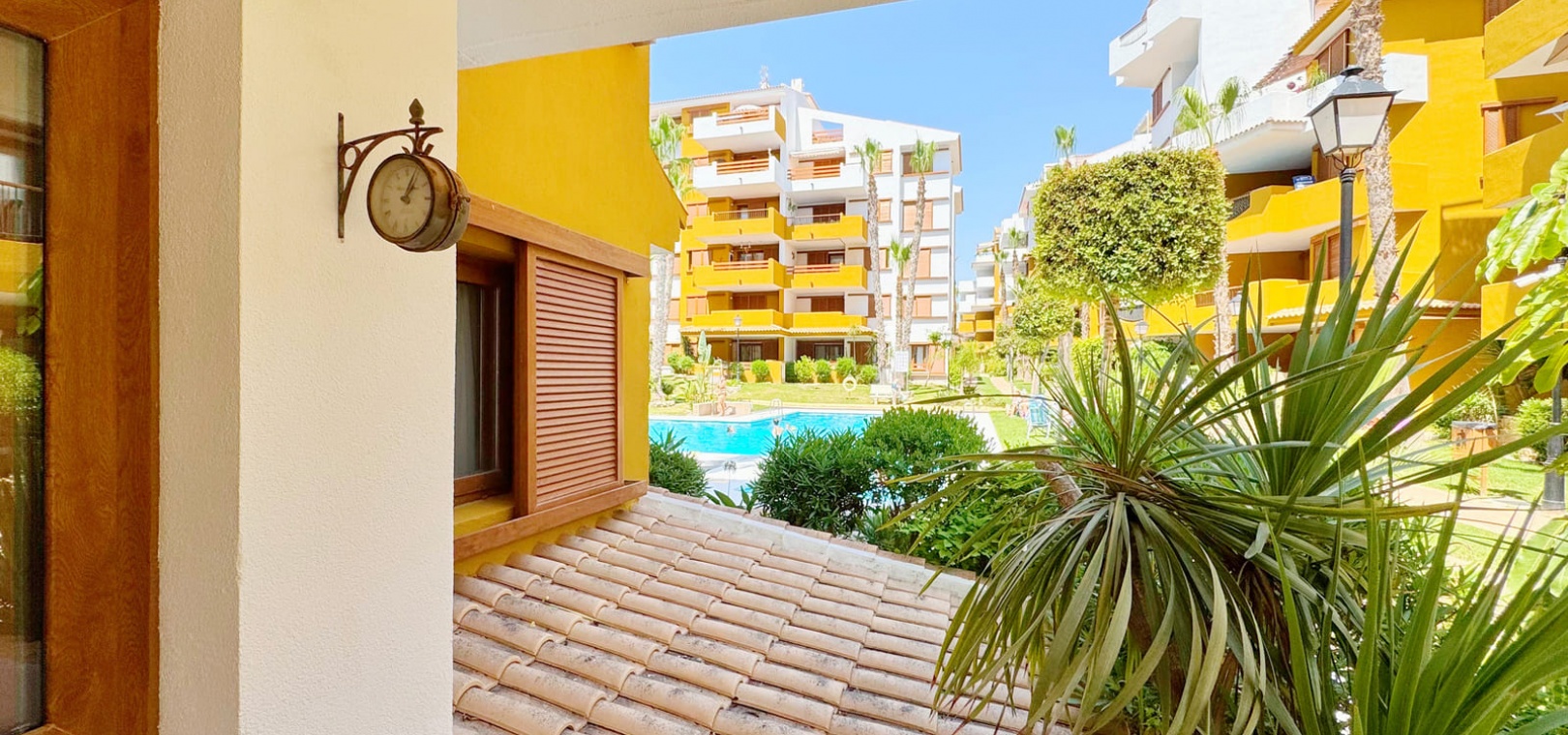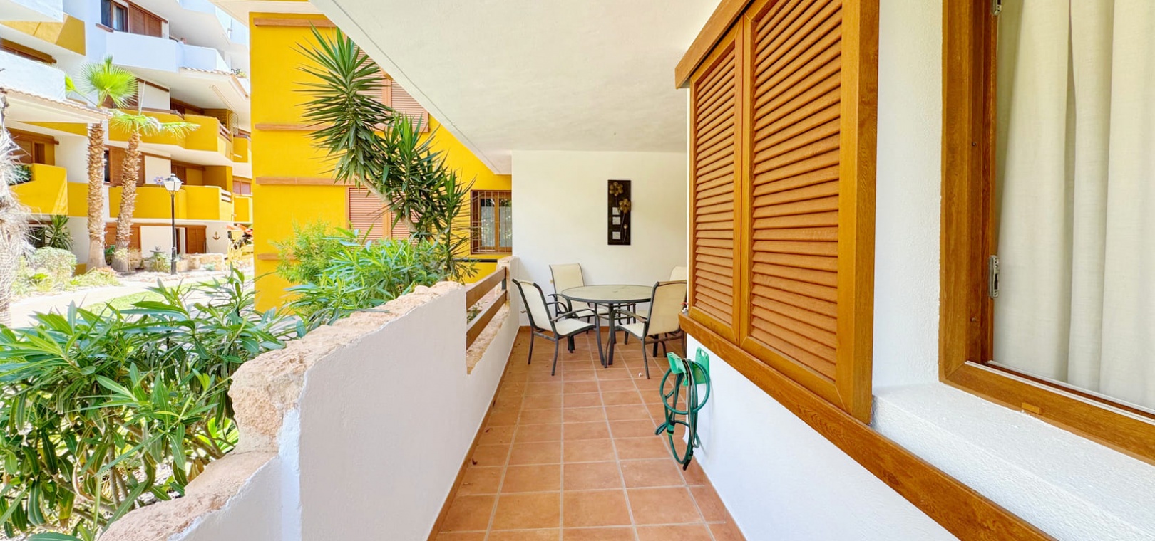 A well-presented 2-bedroom, 2-bathroom ground floor apartment located in the sought-after La Recoleta residential complex in Punta Prima, just 300 meters from the sea.