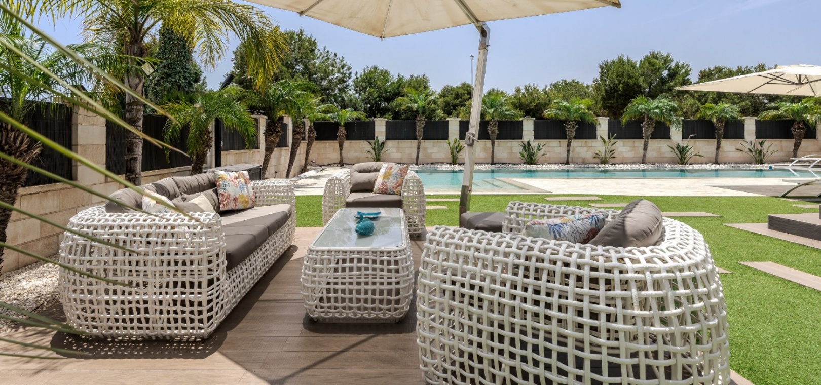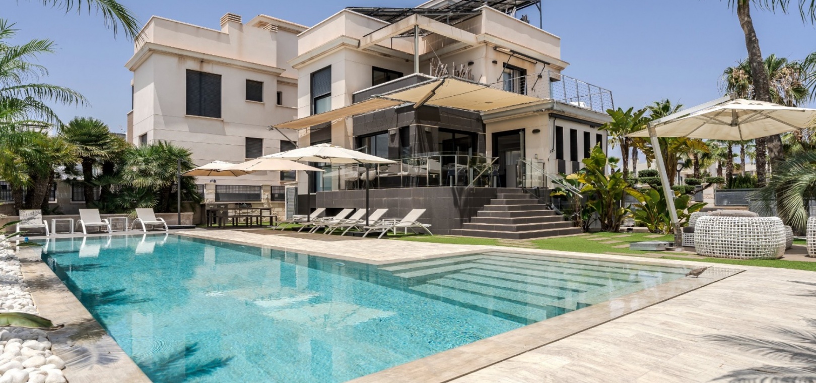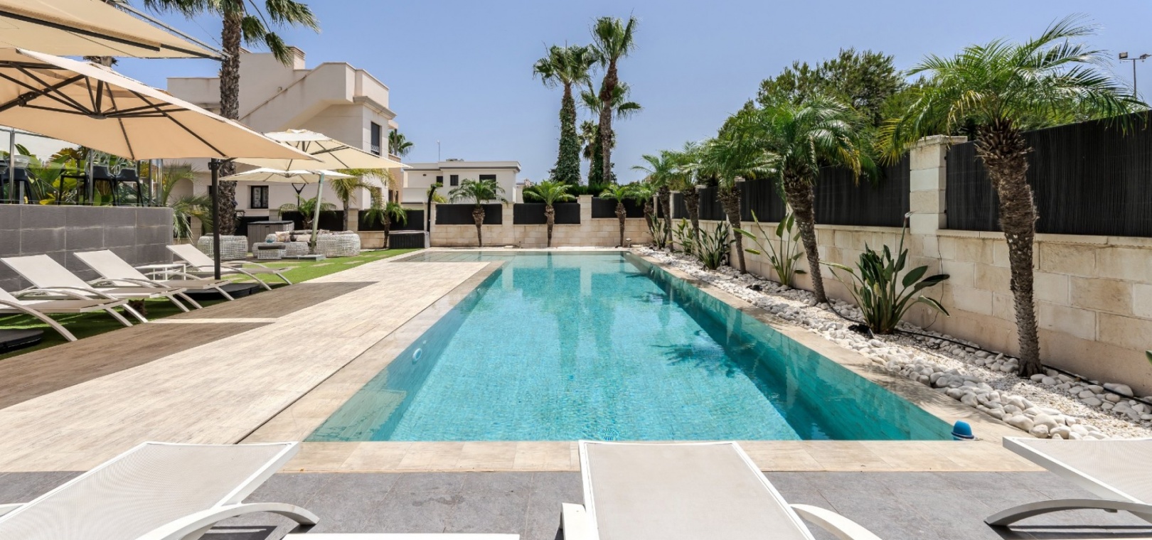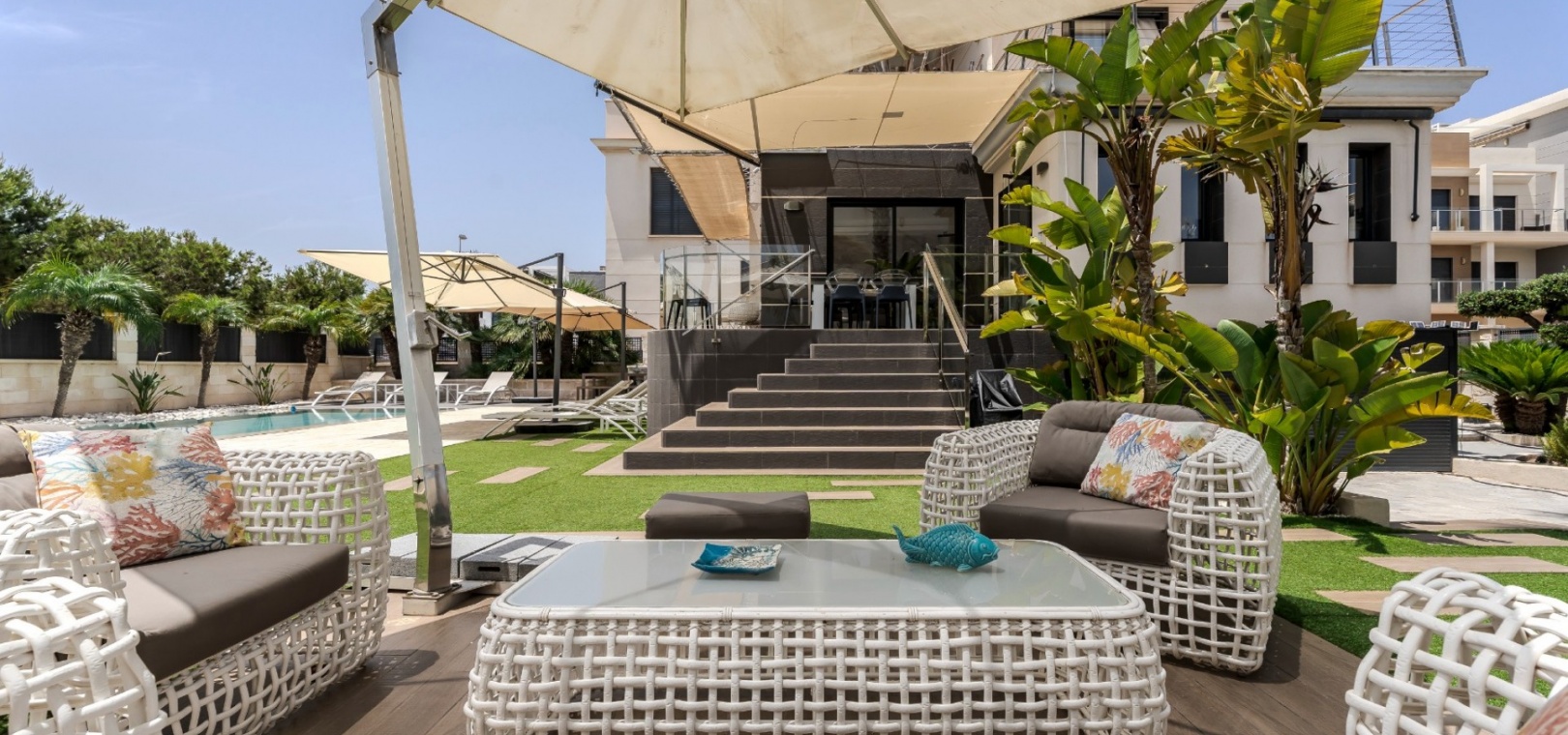 Experience elevated Mediterranean living in this exceptional, fully furnished villa in La Zenia. Blending privacy, comfort, and refined design, this home is an oasis just steps from top amenities, beaches, and golf courses.