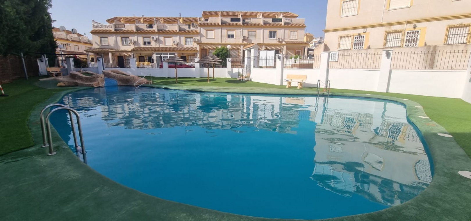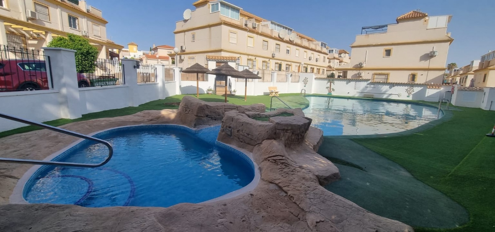We are delighted to present this fantastic property on the highly sought-after urbanization of Montemar, Algorfa. Set on a large corner plot, the home boasts a wrap-around garden with off-road parking. The current owners have secured planning permission for a private pool, and there is also access to a beautiful communal pool.